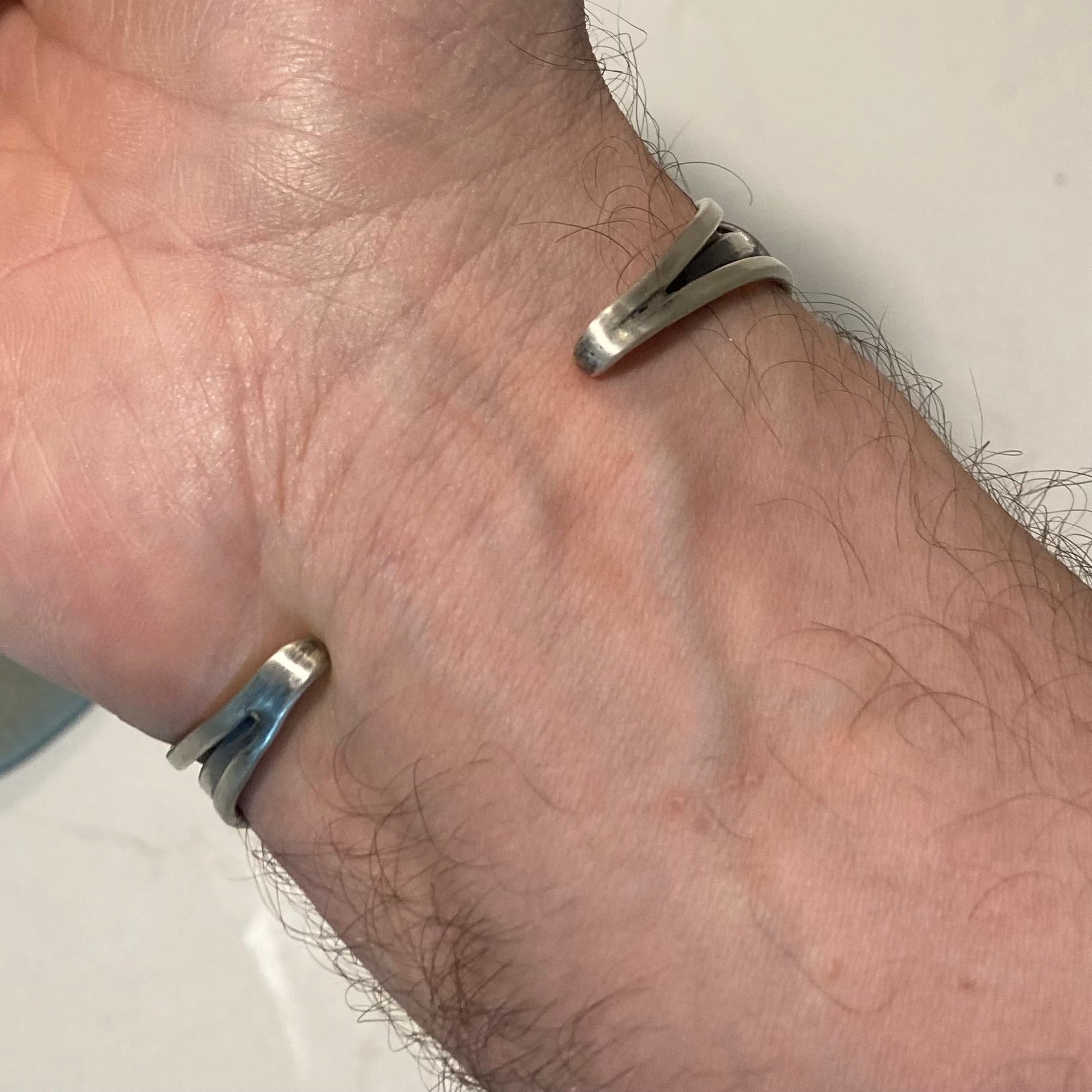 Because of the flexibility of sterling silver wire, this cuff can fit most small to average sized women or men, with the exception of particularly large wrists. It fits my wrist easily with a slight adjustment. Note that you should not regularly adjust sterling as it can become brittle over time and it will break; adjust once to fit perfectly, then leave it be.