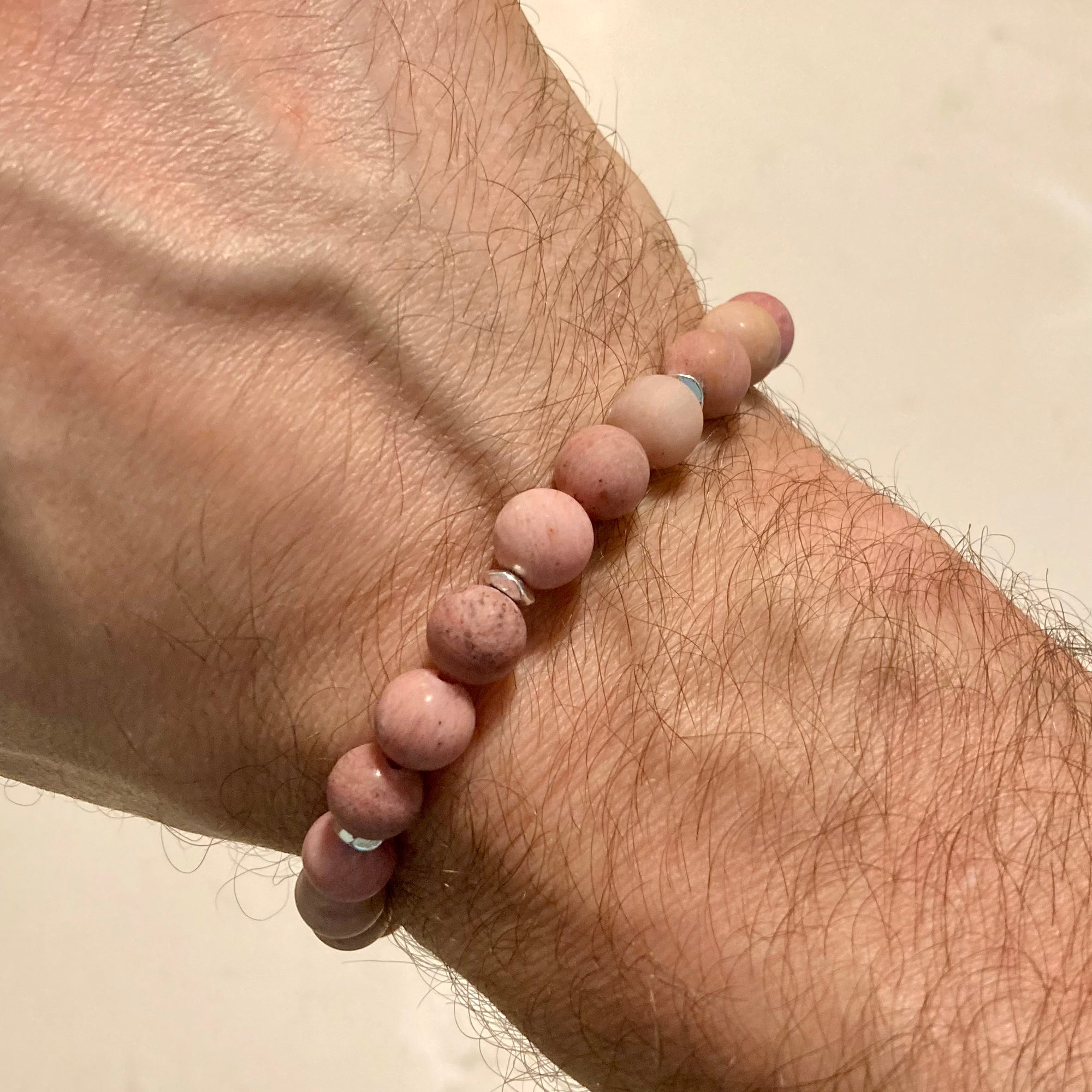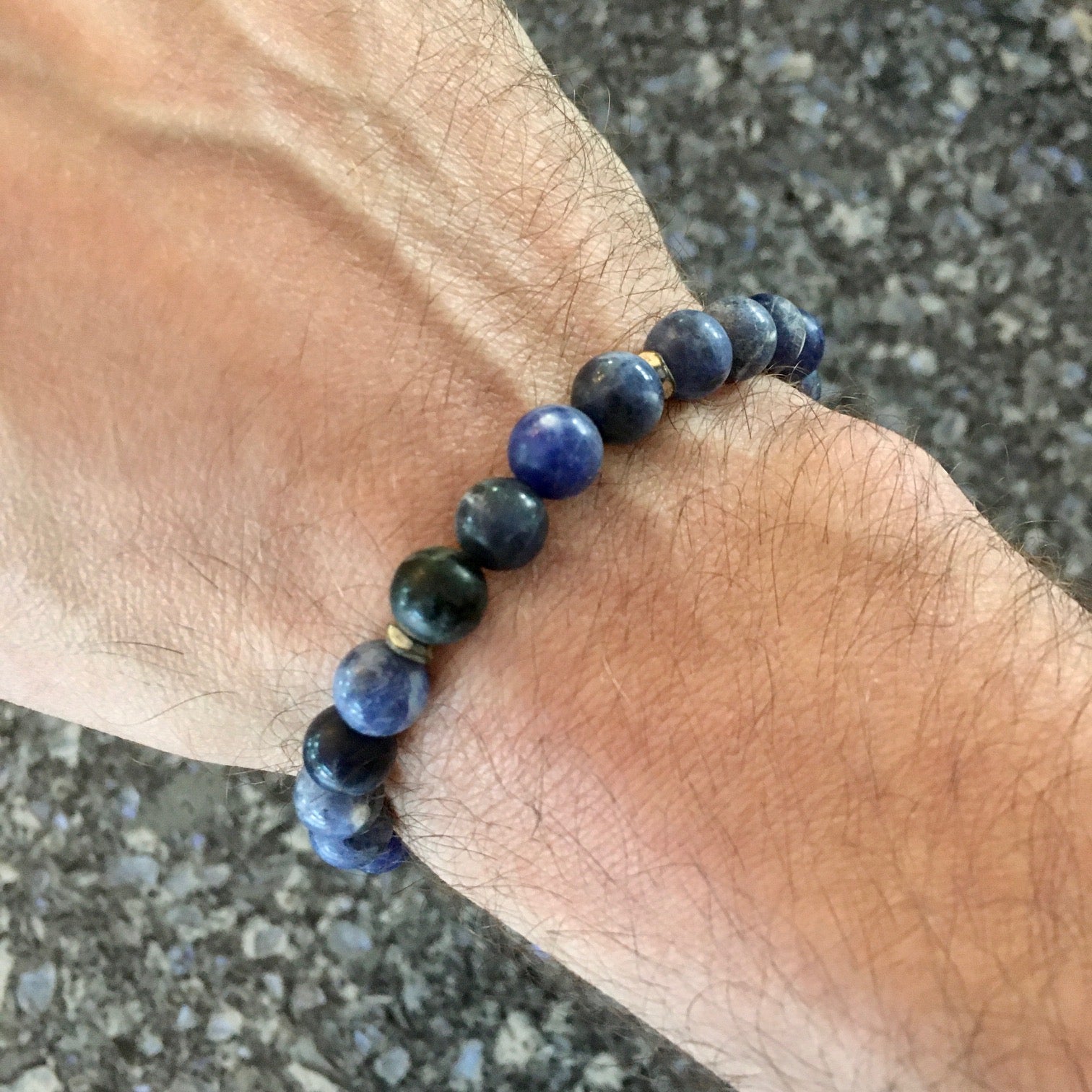 Available in four sizes; 7", 7.5", 8' and 8.5" in eight different color options, all of which look great together. Stones are a matte finish but will develop a shine over years of wear. The metal spacer beads are non-reactive 100% nickel free brass. You can even shower and swim in these, no trouble at all.