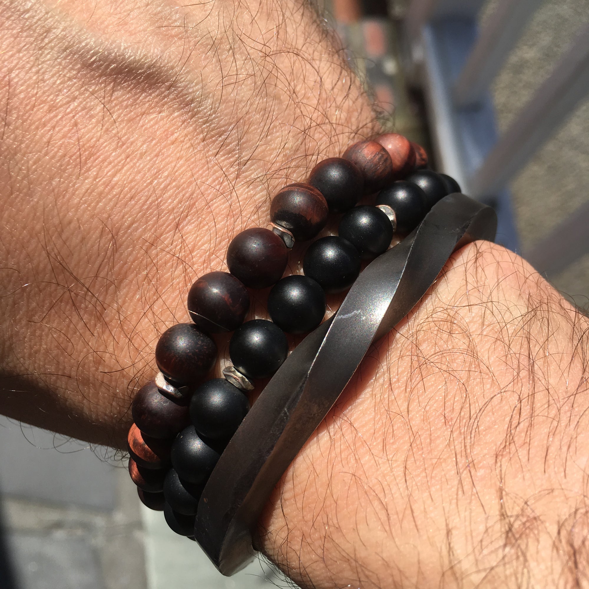 I routinely wear three 8" pieces together or two paired with the 8" Fair Trade Sandalwood Bracelet that I make myself, available both in store and online. Note that the bracelets shown are my own, some of which are now 3 years old and worn daily including in the gym and in the shower (so that's hundreds of showers by now).