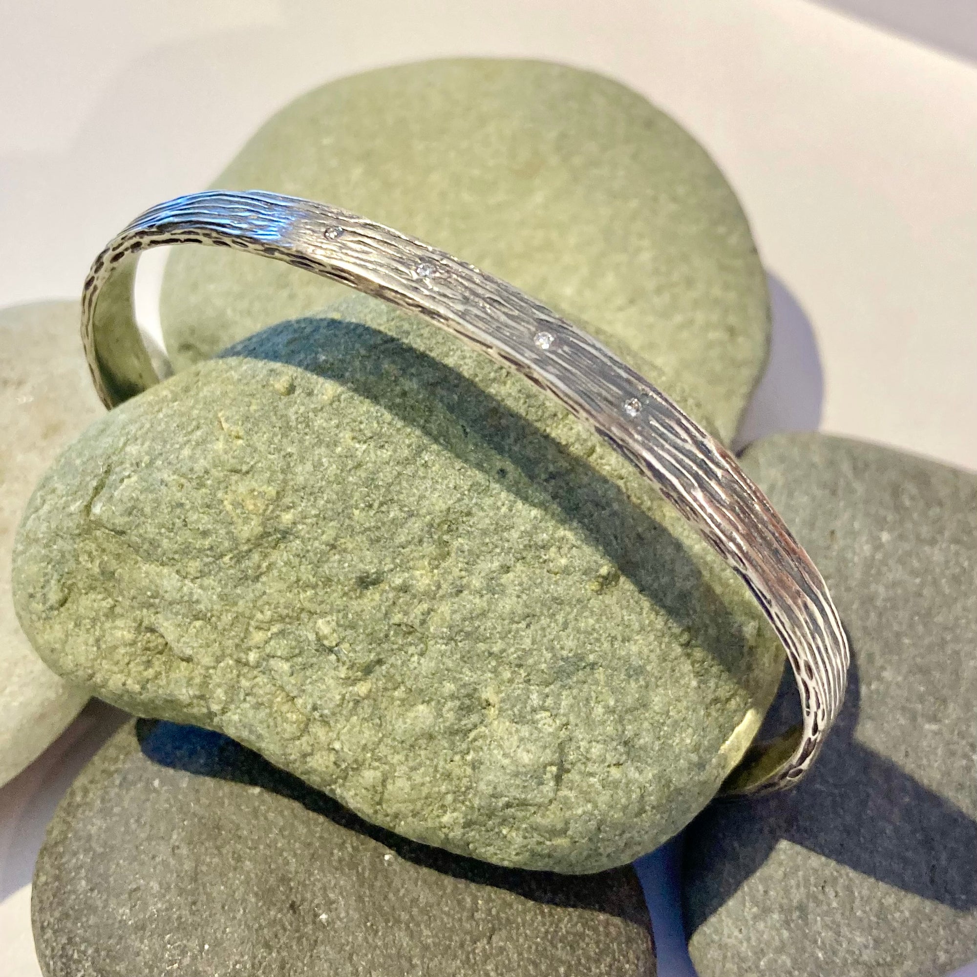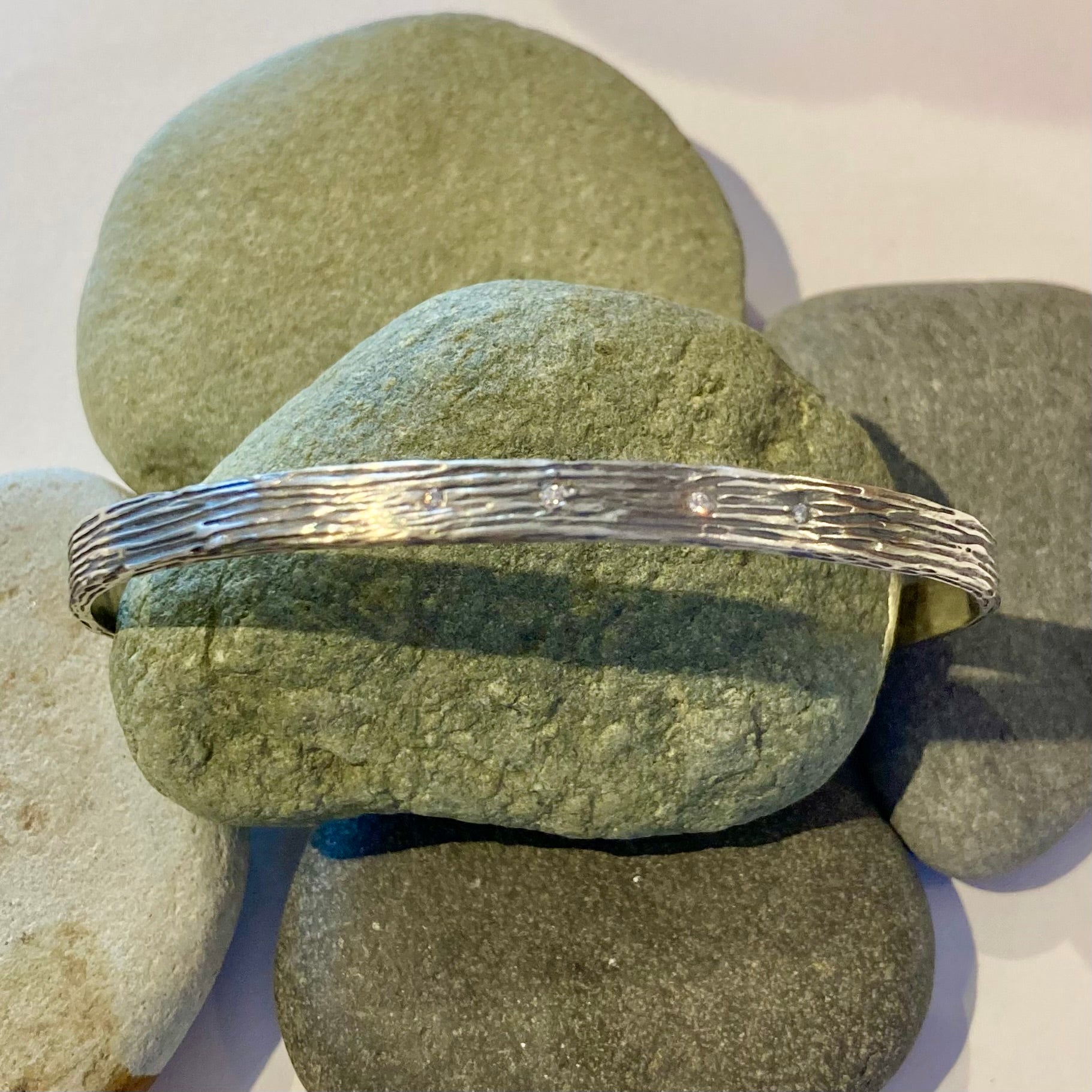 • Tree Bark Sterling Silver and Diamonds Cuff