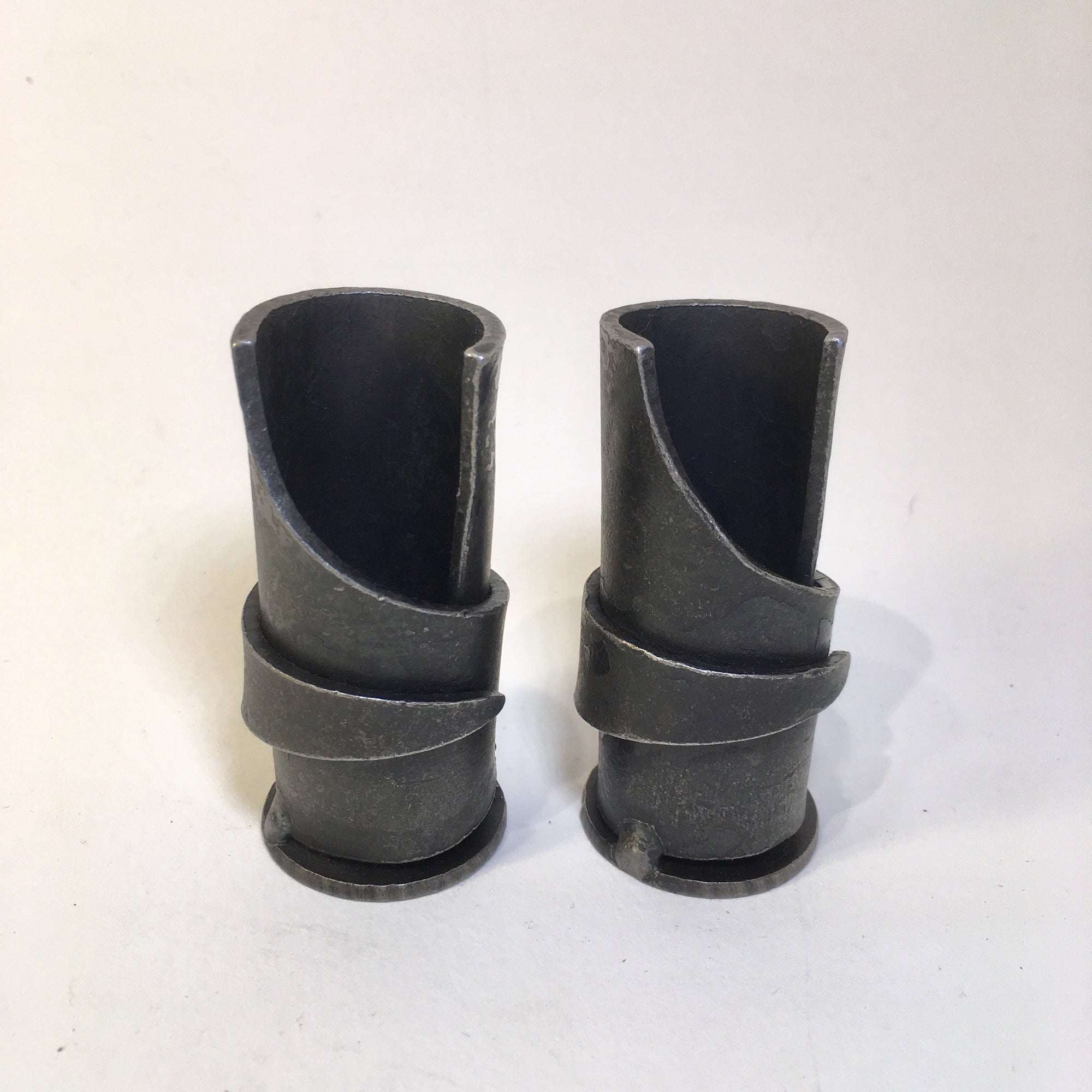 Two simple, sturdy slices of hand wrought iron are rolled to create these functional and elegant candle holders.