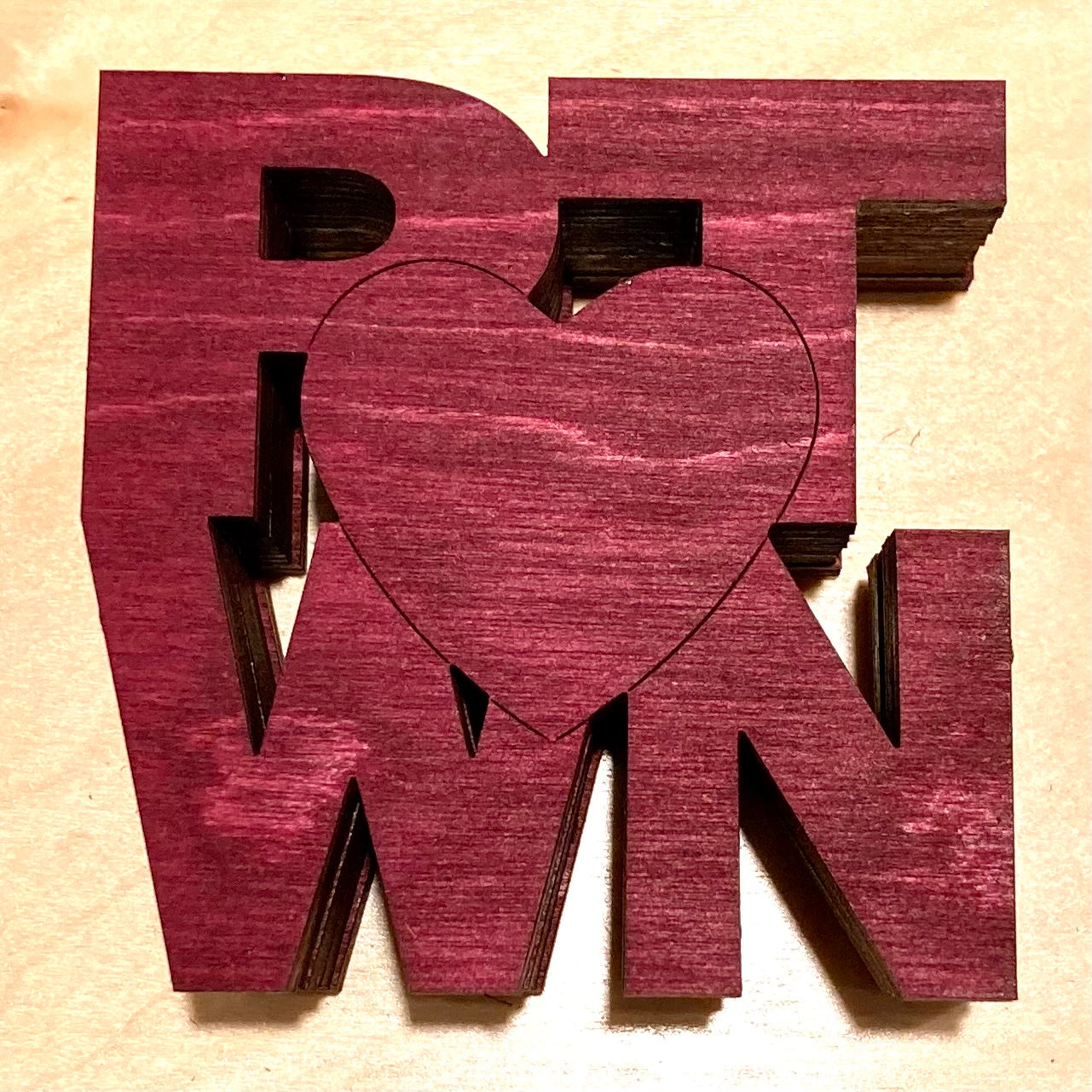 Laser cut, sustainably harvested oak is stained in the 6 classic rainbow colors, with each color raising $1 for different organizations doing important work in the world, Perfect as coasters but also great as Christmas ornaments - just put some string through the hole in the P. Buy them individually for $6.95 each, or any 6 for $39.95 (discount automatically applied at checkout).