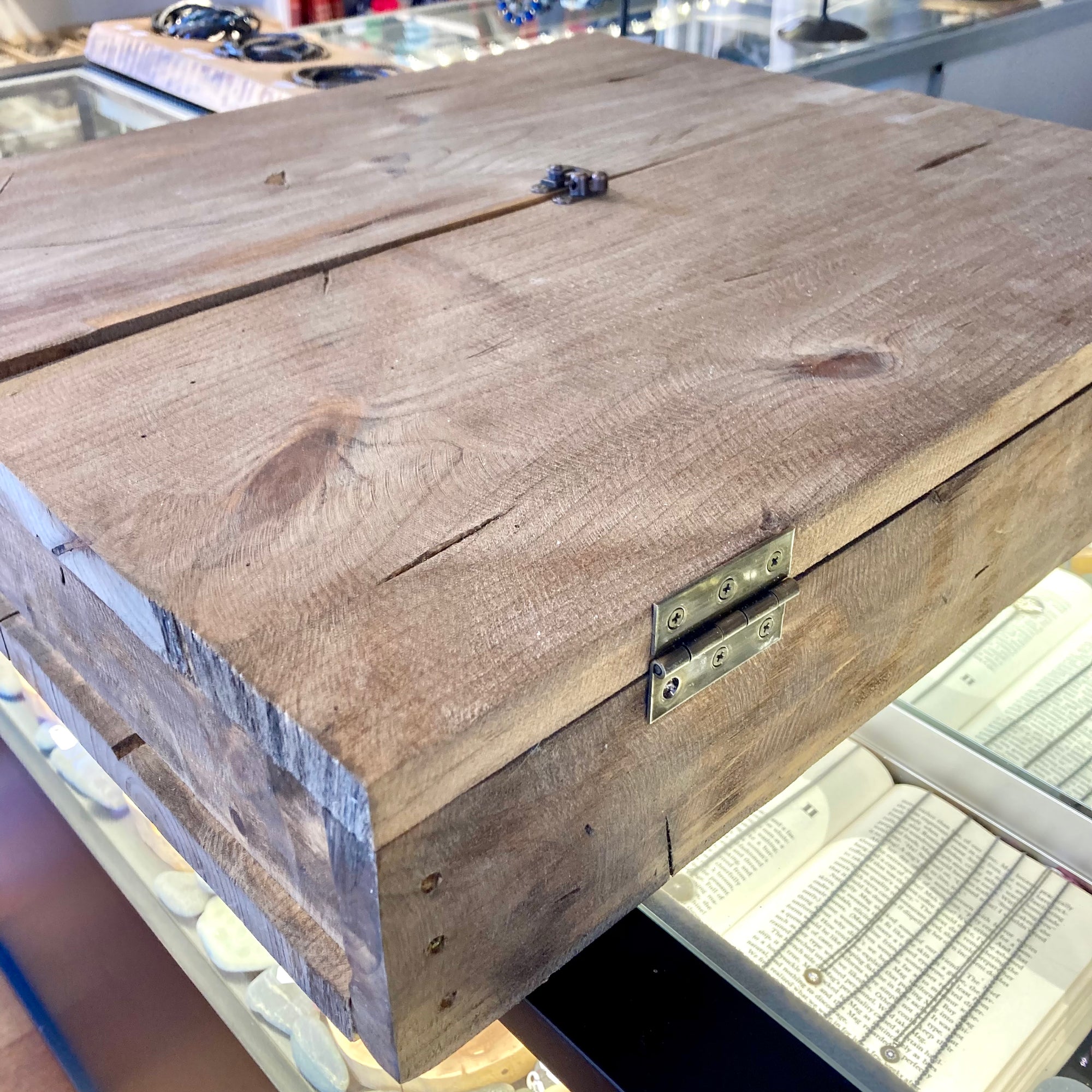 The gift box is handcrafted using reclaimed wood from an old fence here in Provincetown. Box secures with a center latch.