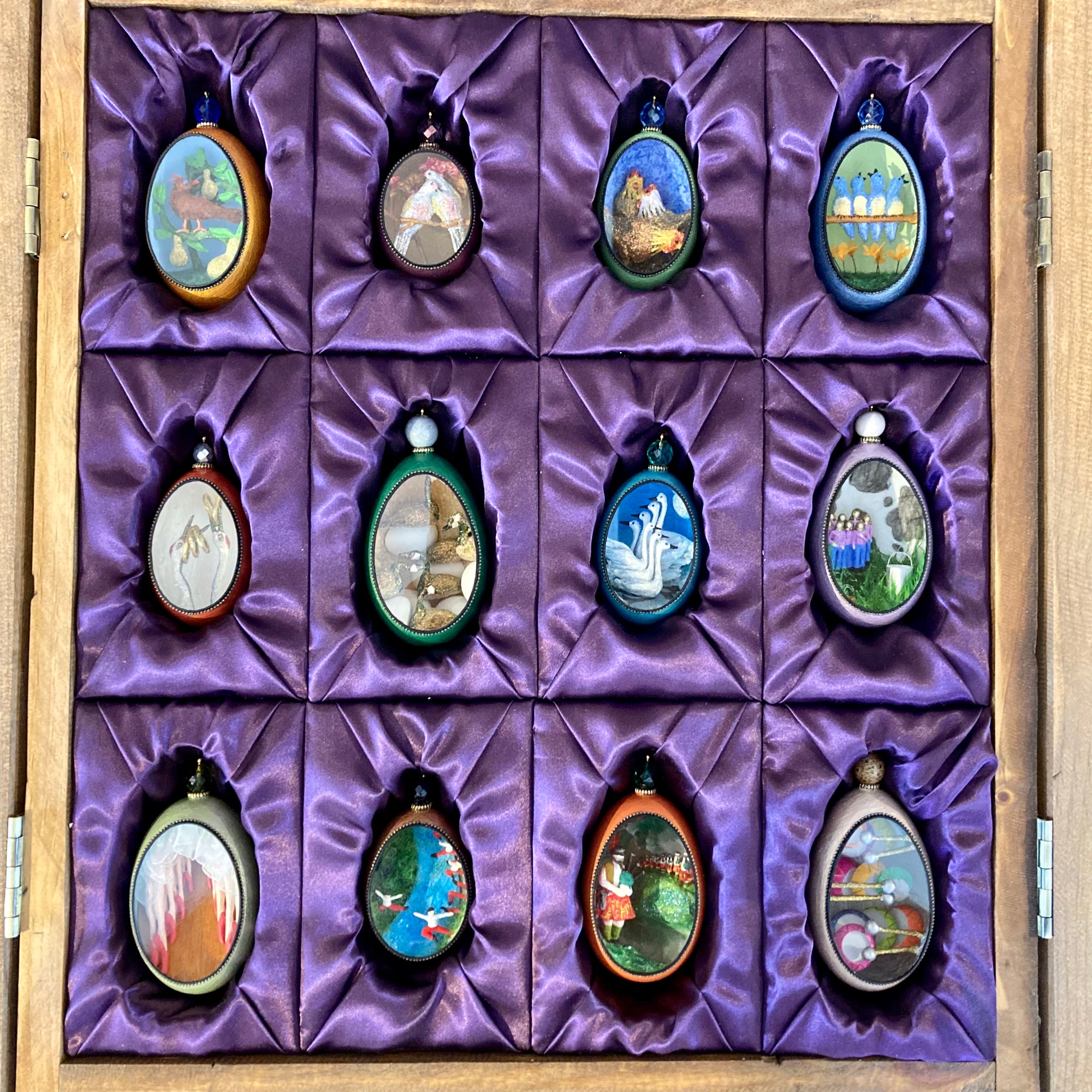 Exclusively at Arcadia, all twelve days of Christmas, recreated in extraordinary functional artistry within goose eggs and duck eggs, are available in a beautiful reclaimed wood keepsake box, which comes with its own Provincetown story.