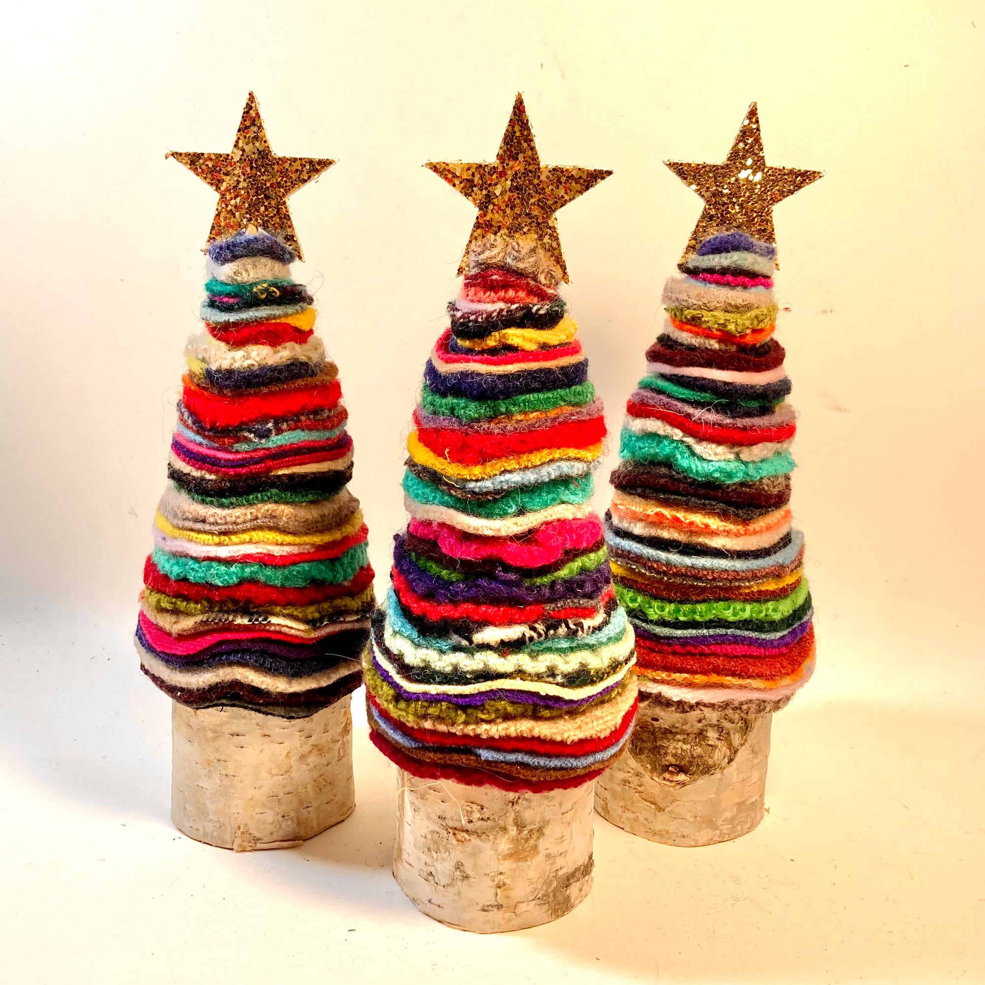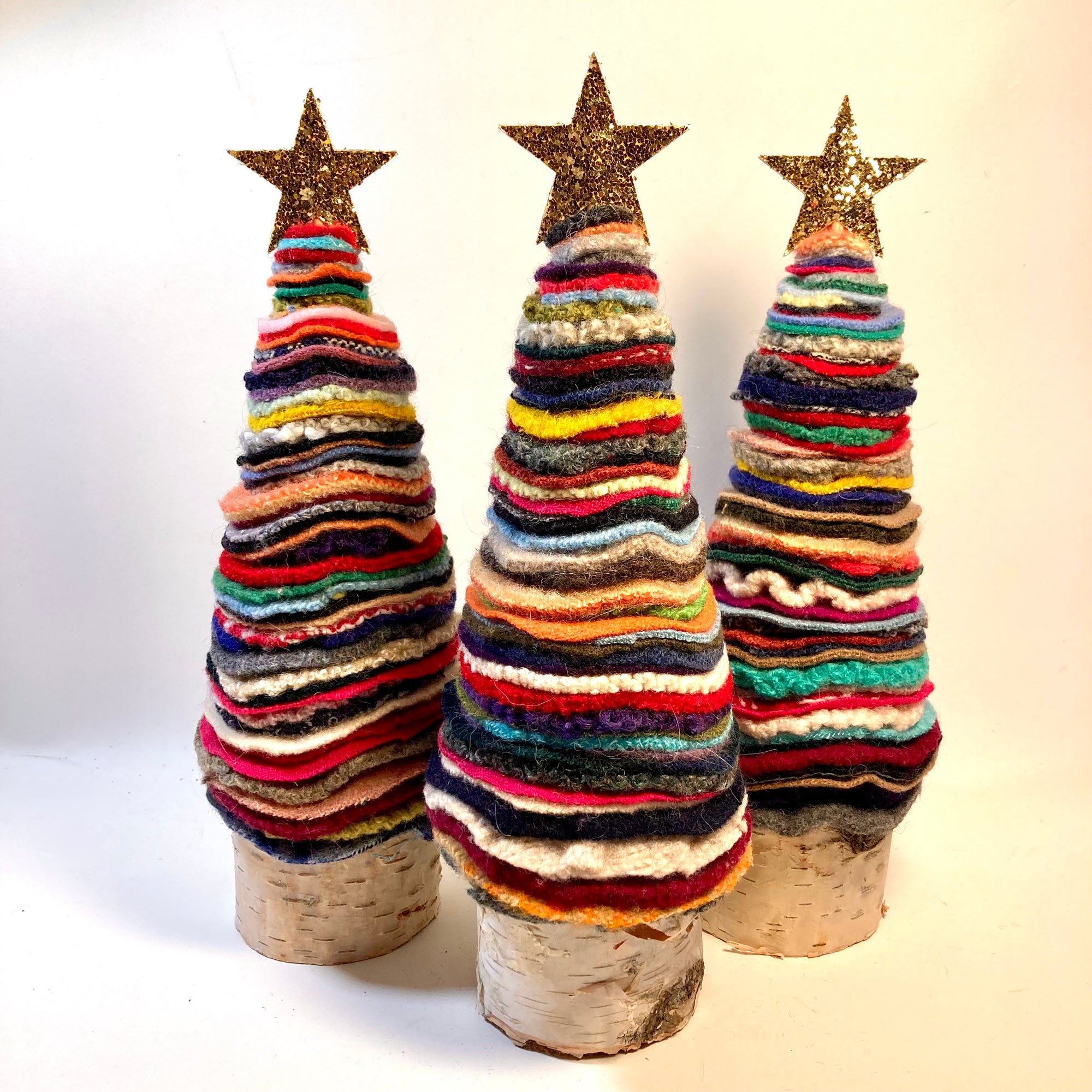 Upcycled Multicolor Wool Christmas Trees