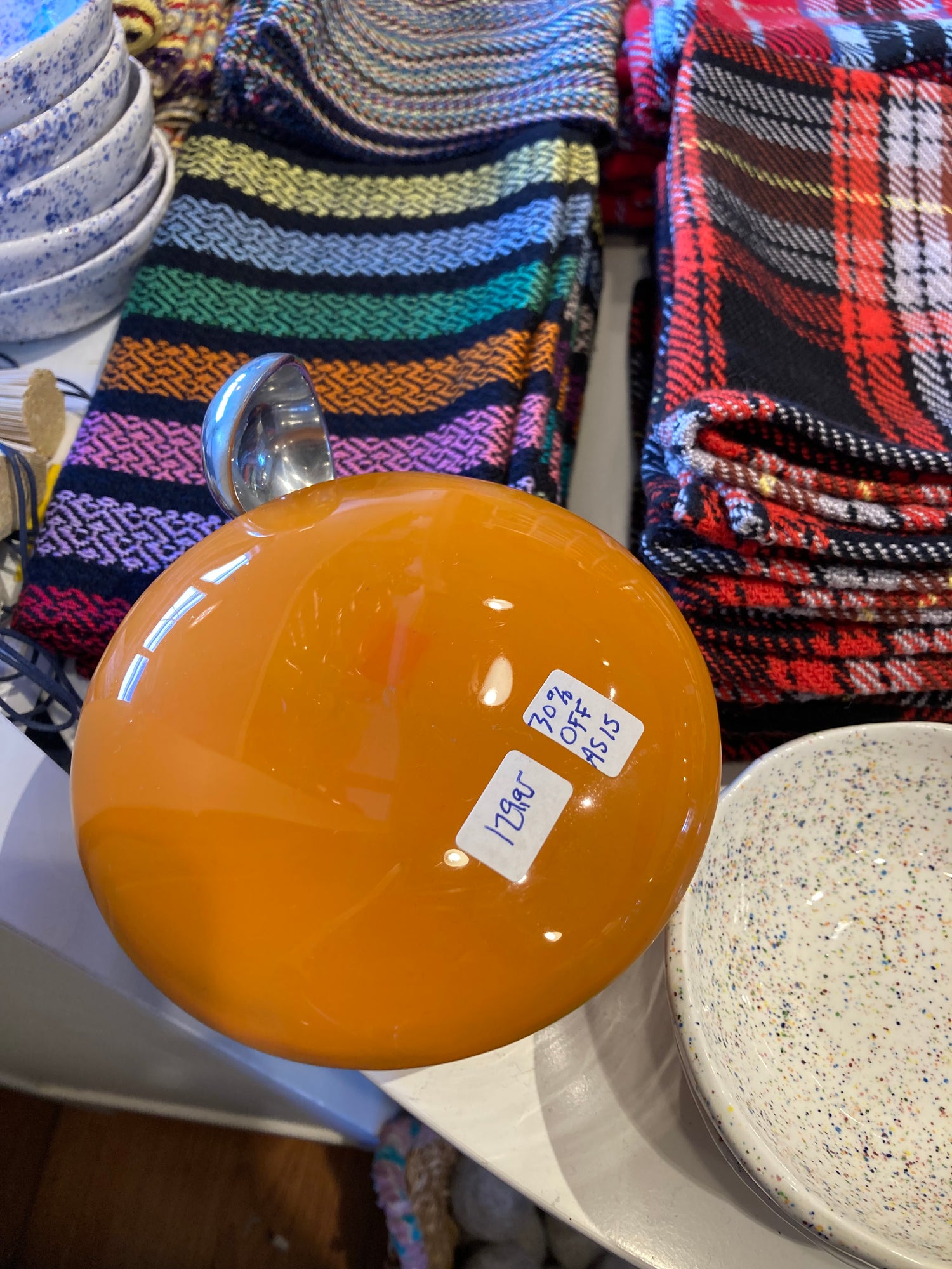 LAST CHANCE! Floor sample is 30% off due to imperfection on the finish at the center of the lid, see second photo, caused by a price sticker combined with direct sunlight. Otherwise in perfect condition. FINAL SALE, NO EXCHANGE OR RETURN.
