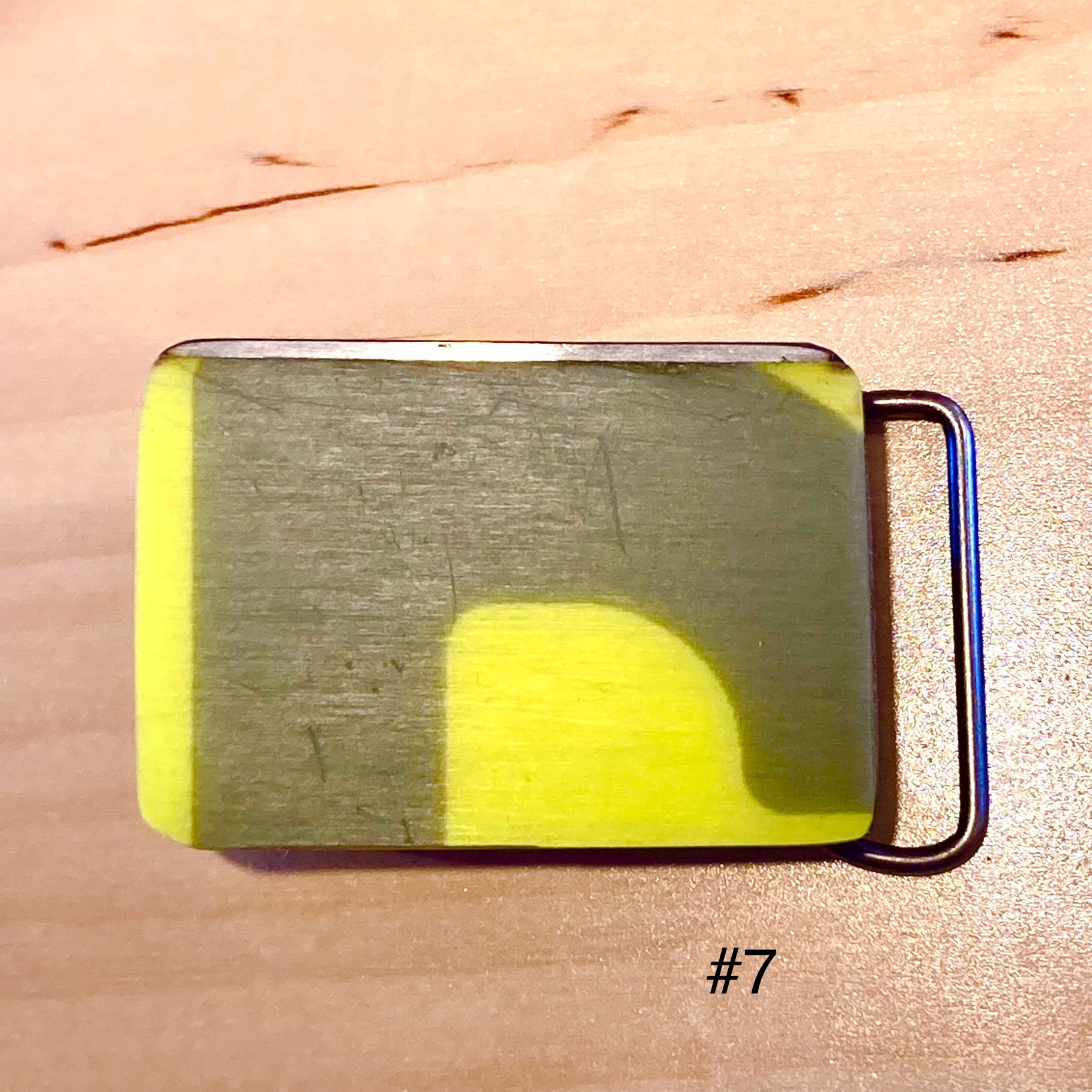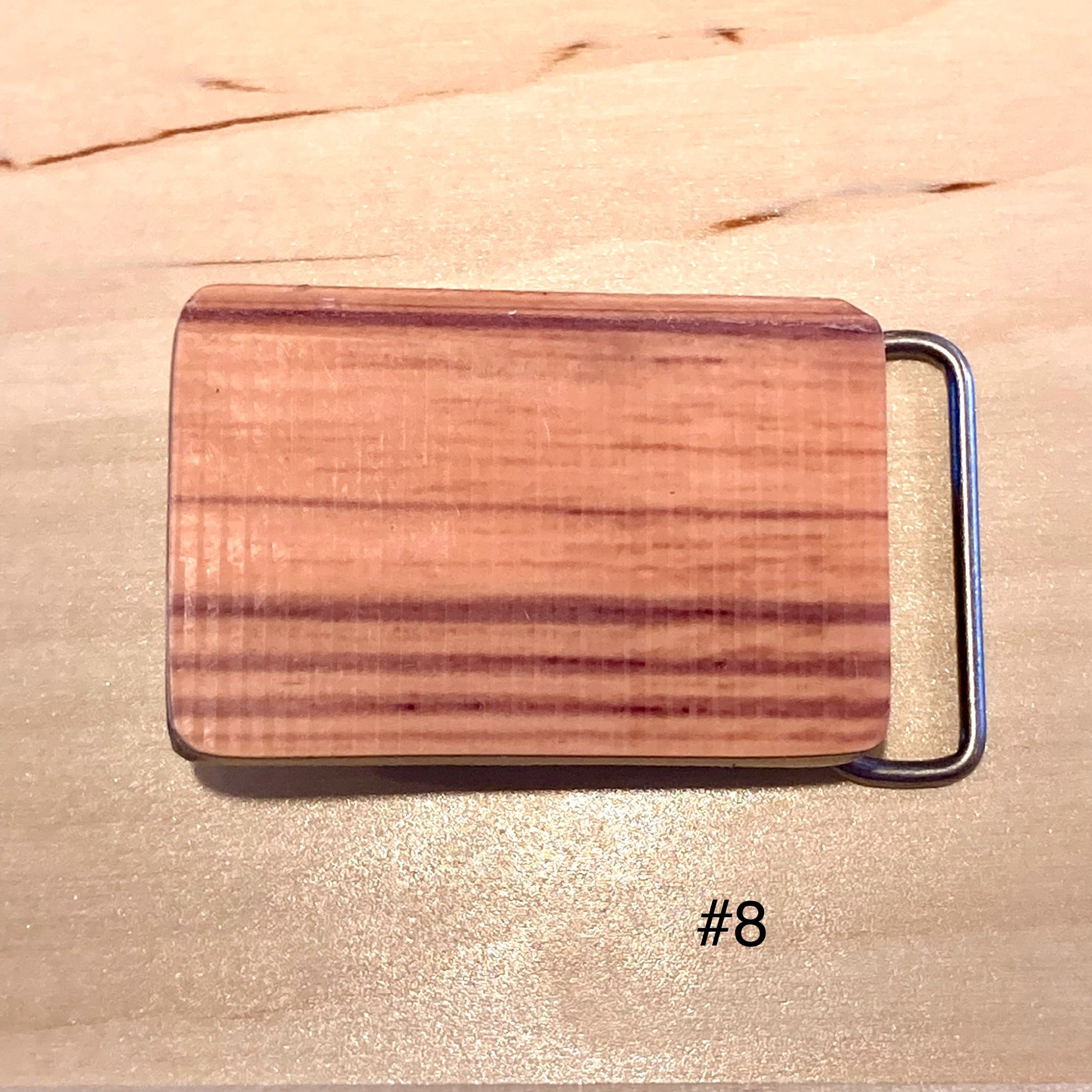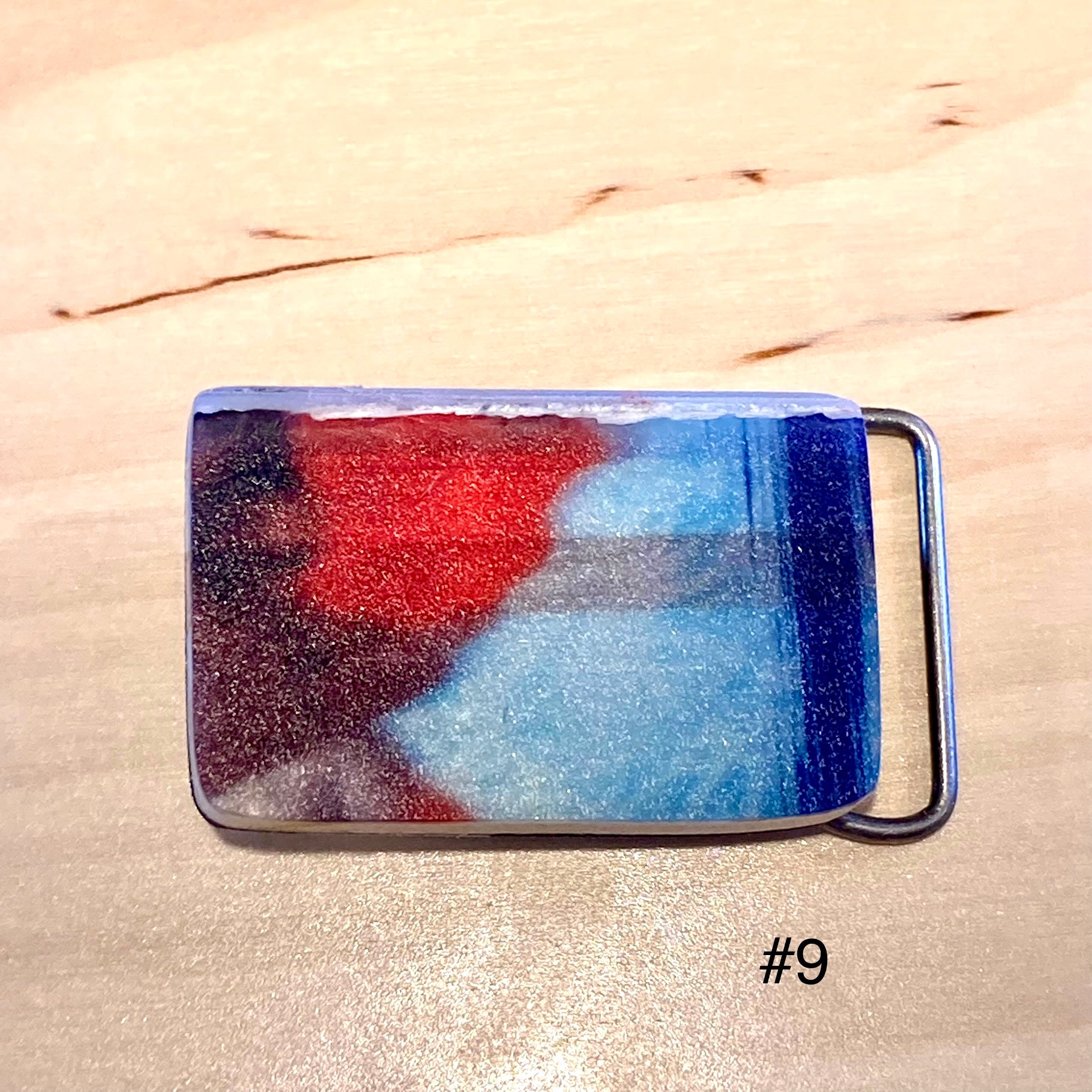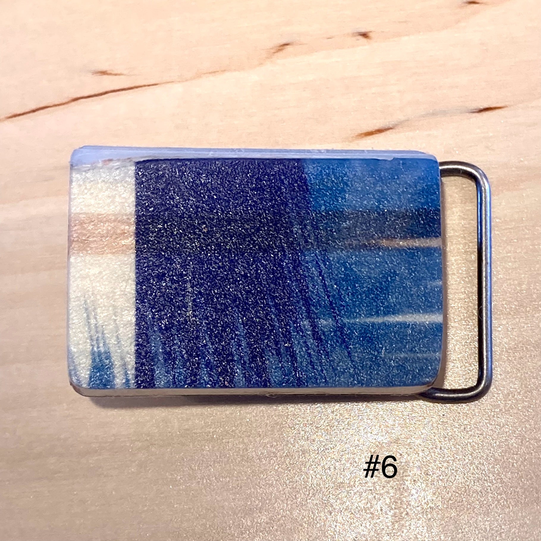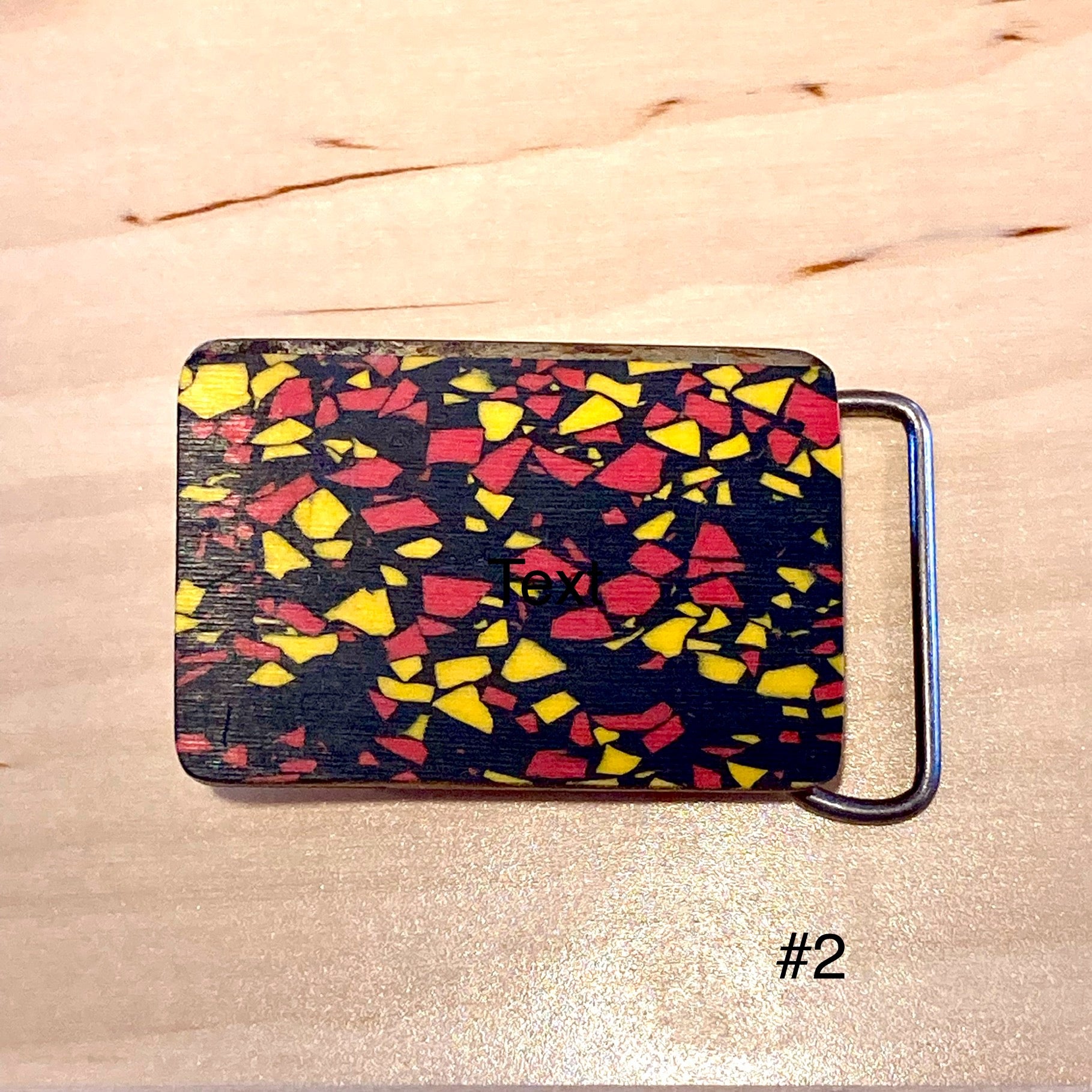 Old skis are carefully cut, sanded and sealed, then backed with antiqued stainless steel to fit any standard 1-1.5" belt with a snap closure for belt buckles. No two are ever alike, so if you see one you like, grab it. Materials are wood, fiberglass and carbon composites, often all three on one buckle.