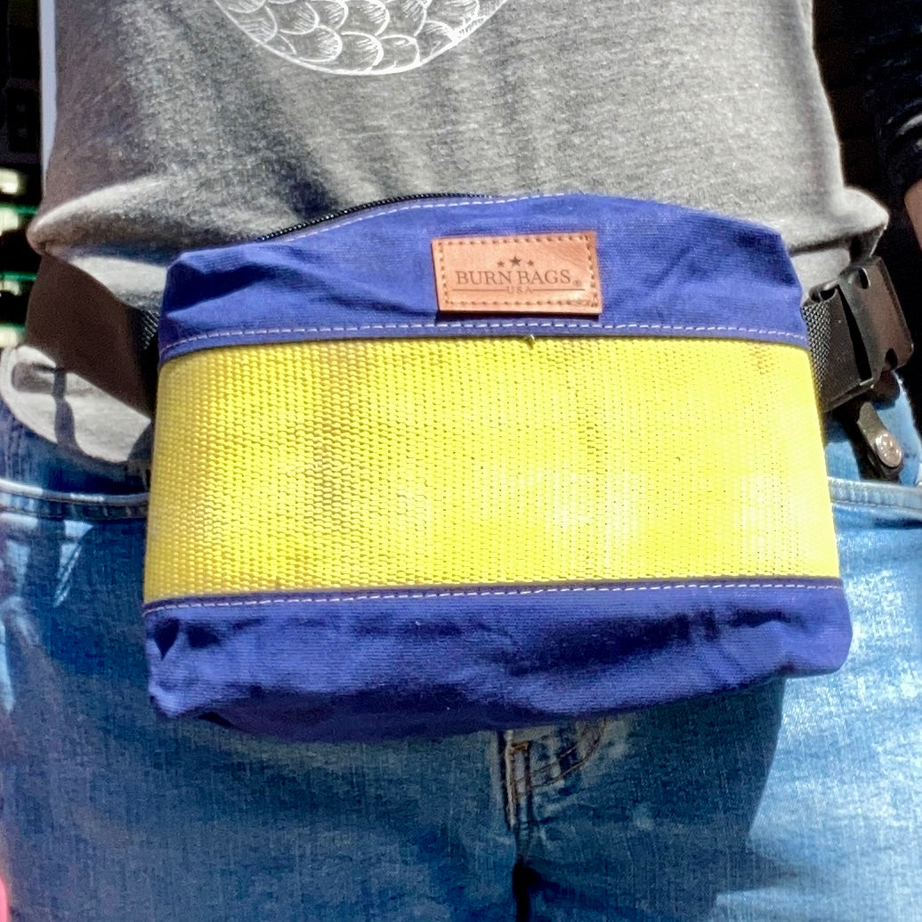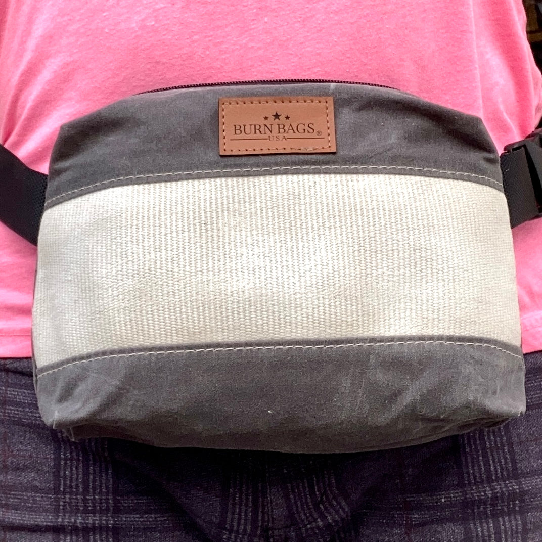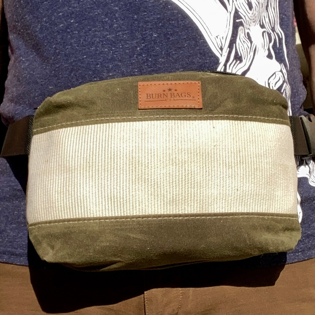 These extra large fanny packs are made for daily use wherever life takes you. Made with heavy duty, water resistant waxed canvas and fire hose across the front, zipper closure, with a wide, fully adjustable strap with a durable quick release clasp, and a cotton canvas lined interior, they are fun, functional, and truly unique.