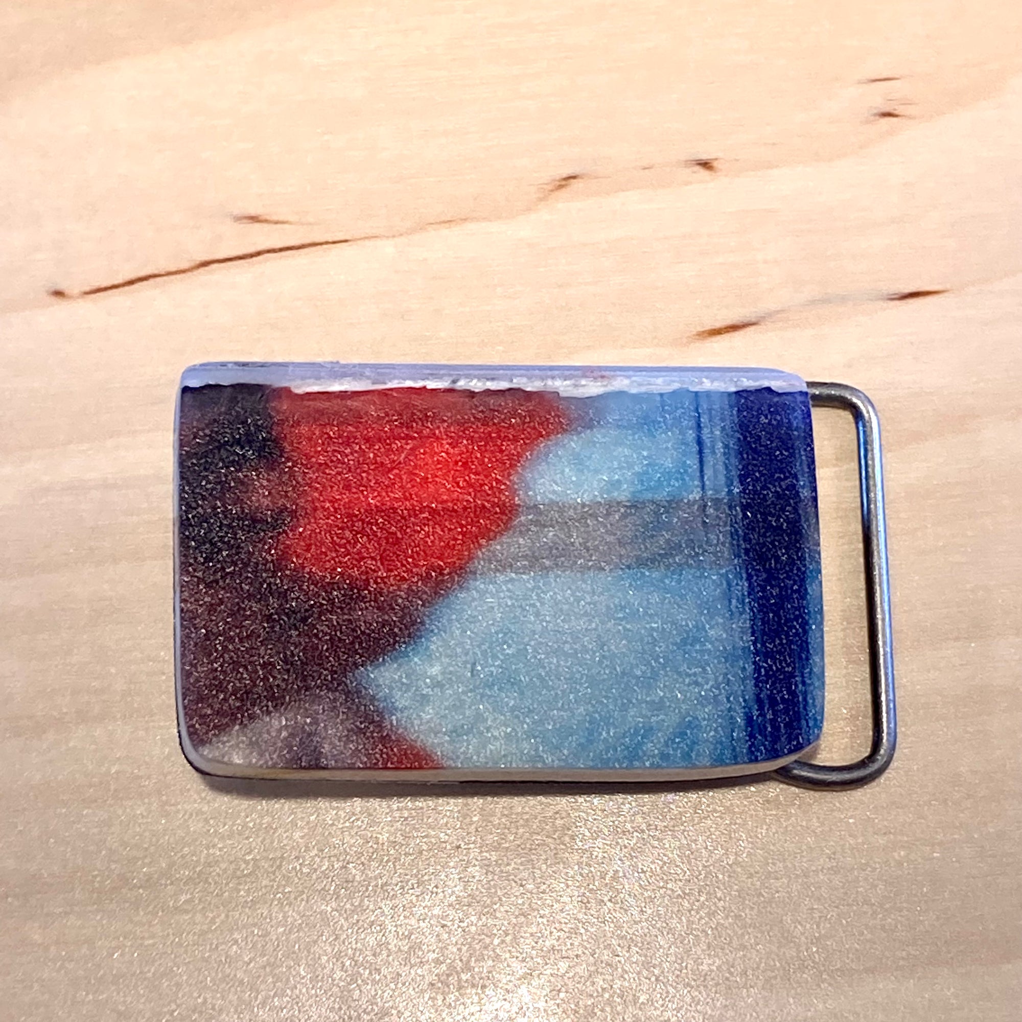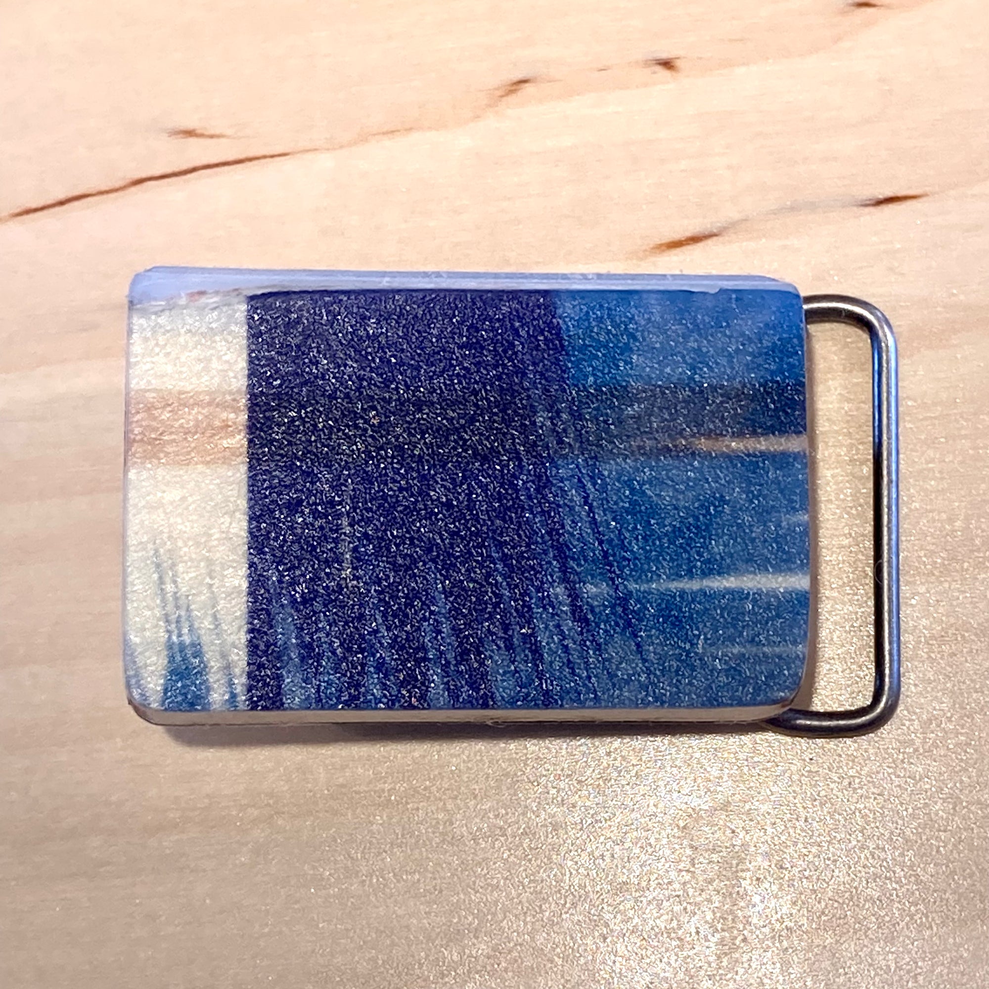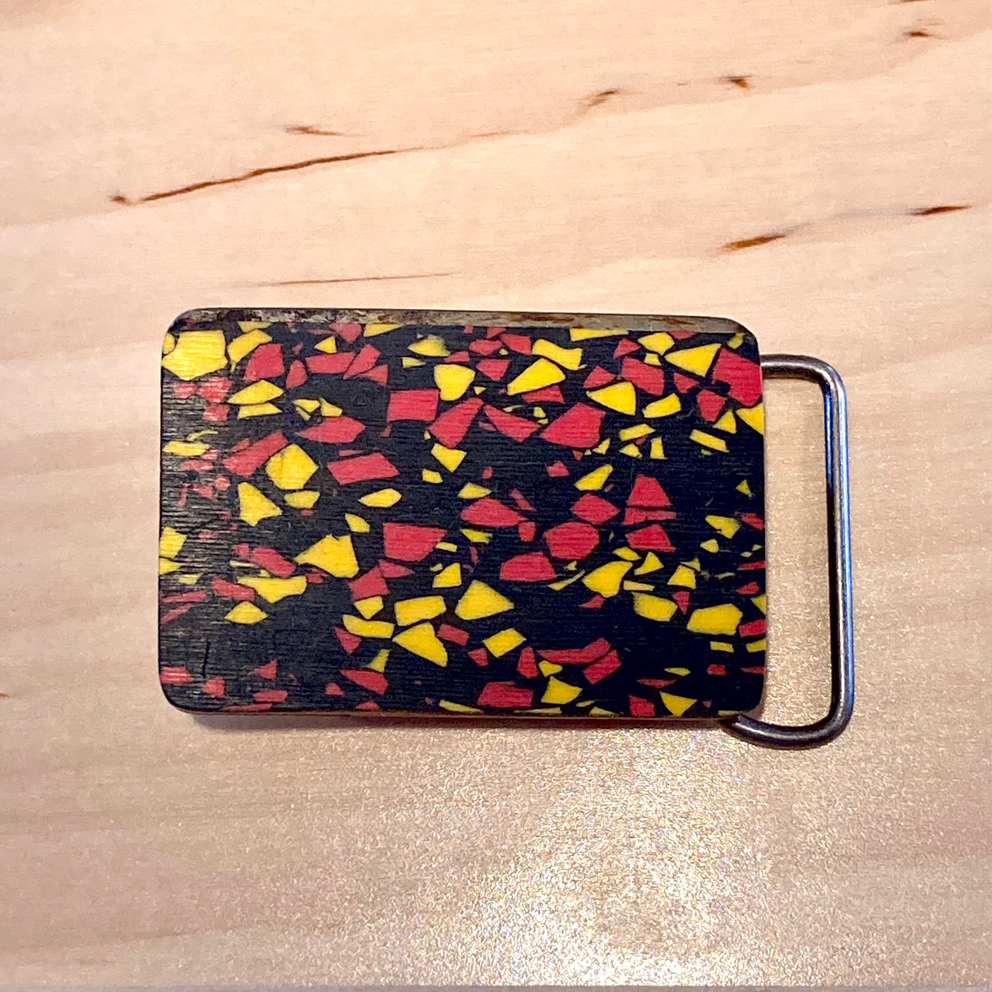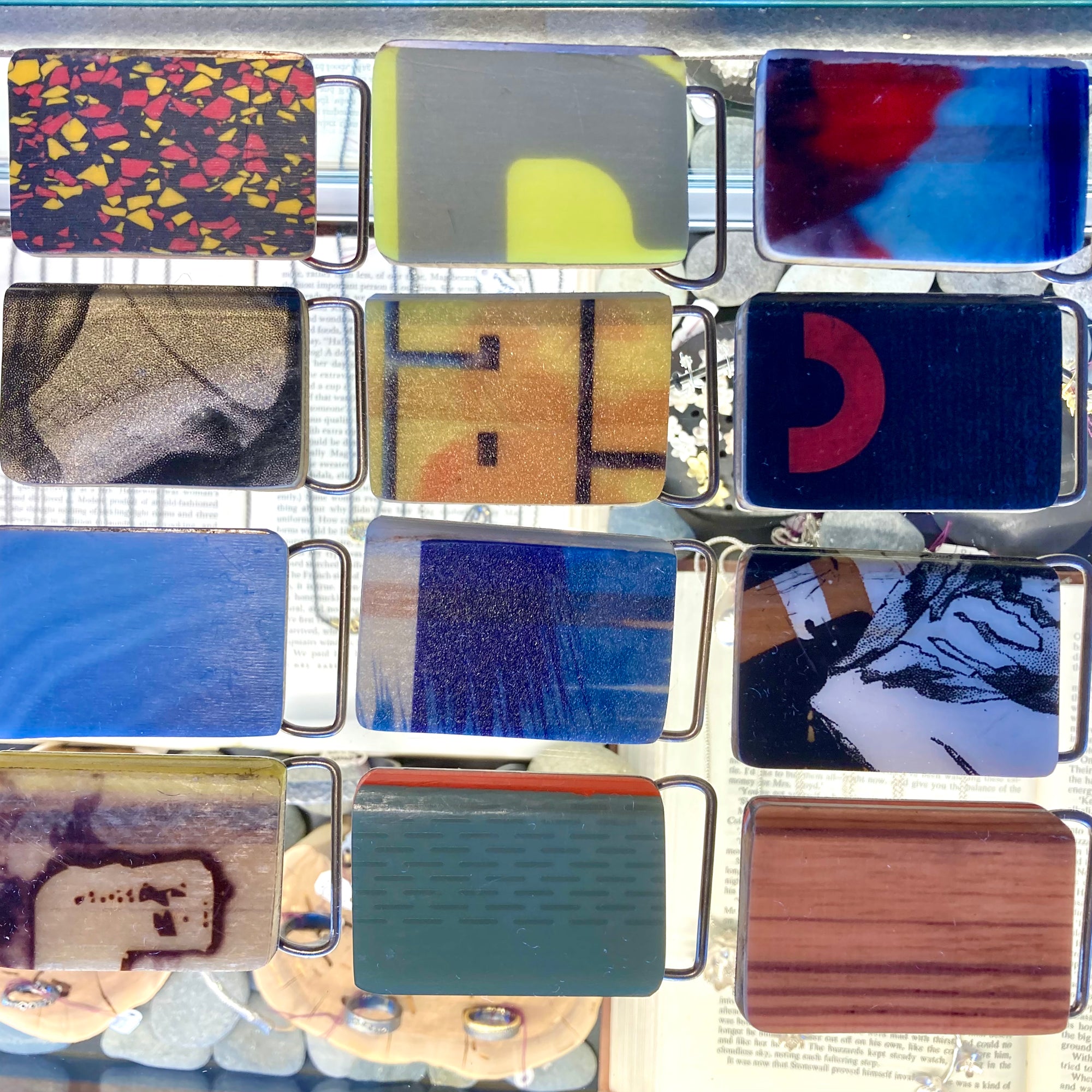 Old skis are carefully cut, sanded and sealed, then backed with antiqued stainless steel to fit any standard 1-1.5" belt with a snap closure for belt buckles. No two are ever alike, so if you see one you like, grab it. Materials are wood, fiberglass and carbon composites, often all three on one buckle.