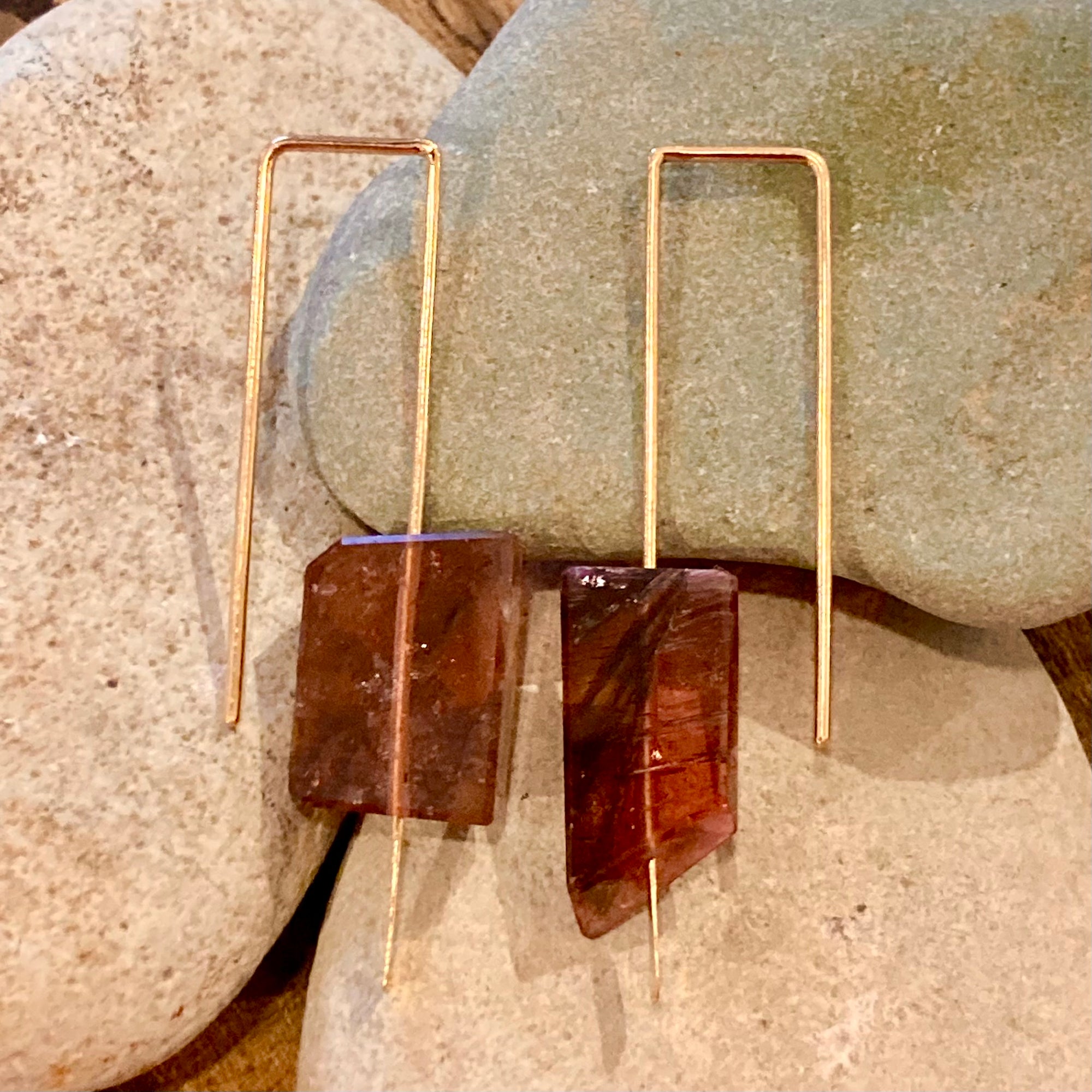 This designer collects uniquely beautiful, faceted watermelon tourmalines stones and allows the natural beauty of this colorful stone ranging from bright pink to forest green, often with golden occlusions that scatter light beautifully to take center stage. She simply pierces them with a simple 14K gold wire, allowing the stones to swivel freely as you go about life. A slight hammering of the wire at the end secures the stone safely on the wire.