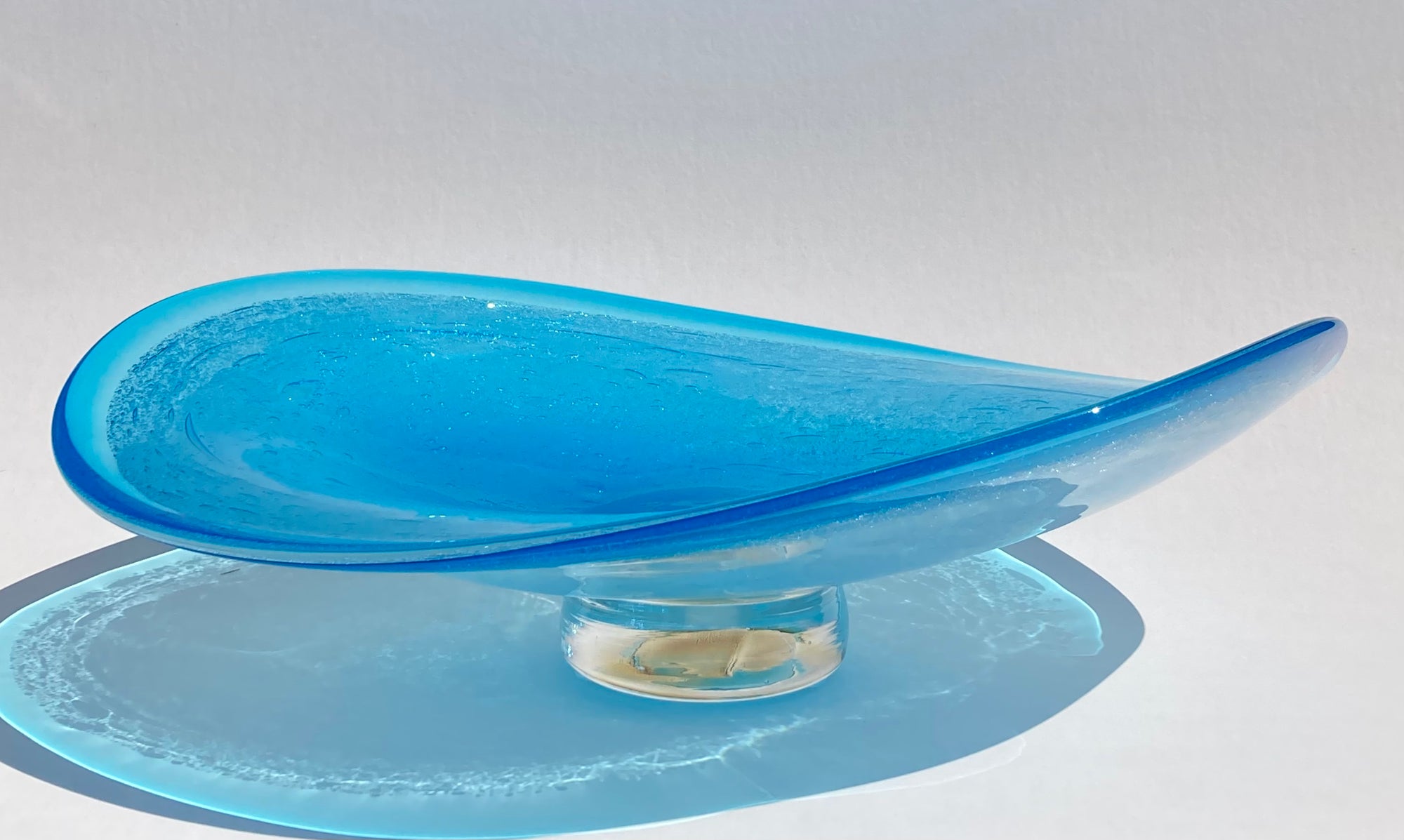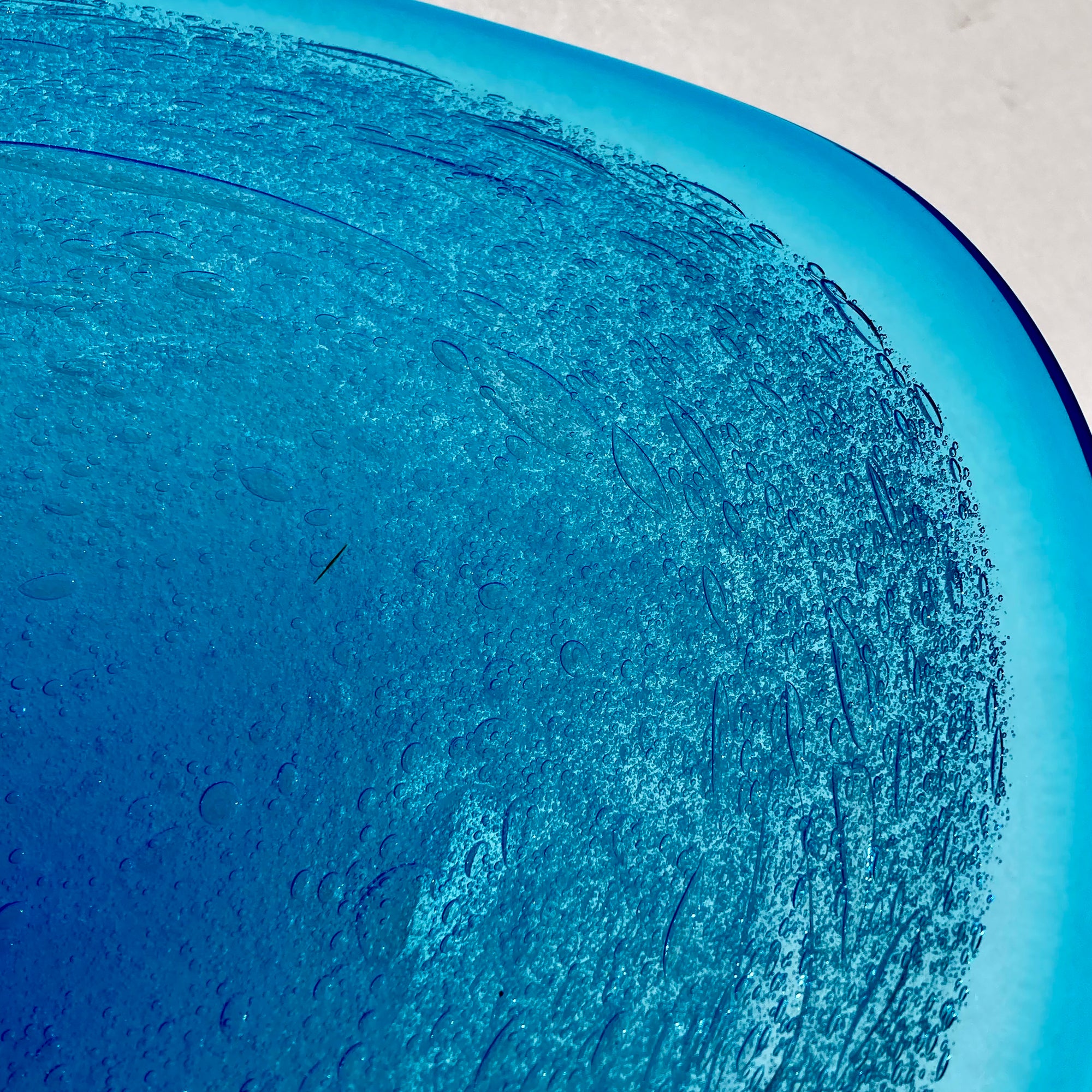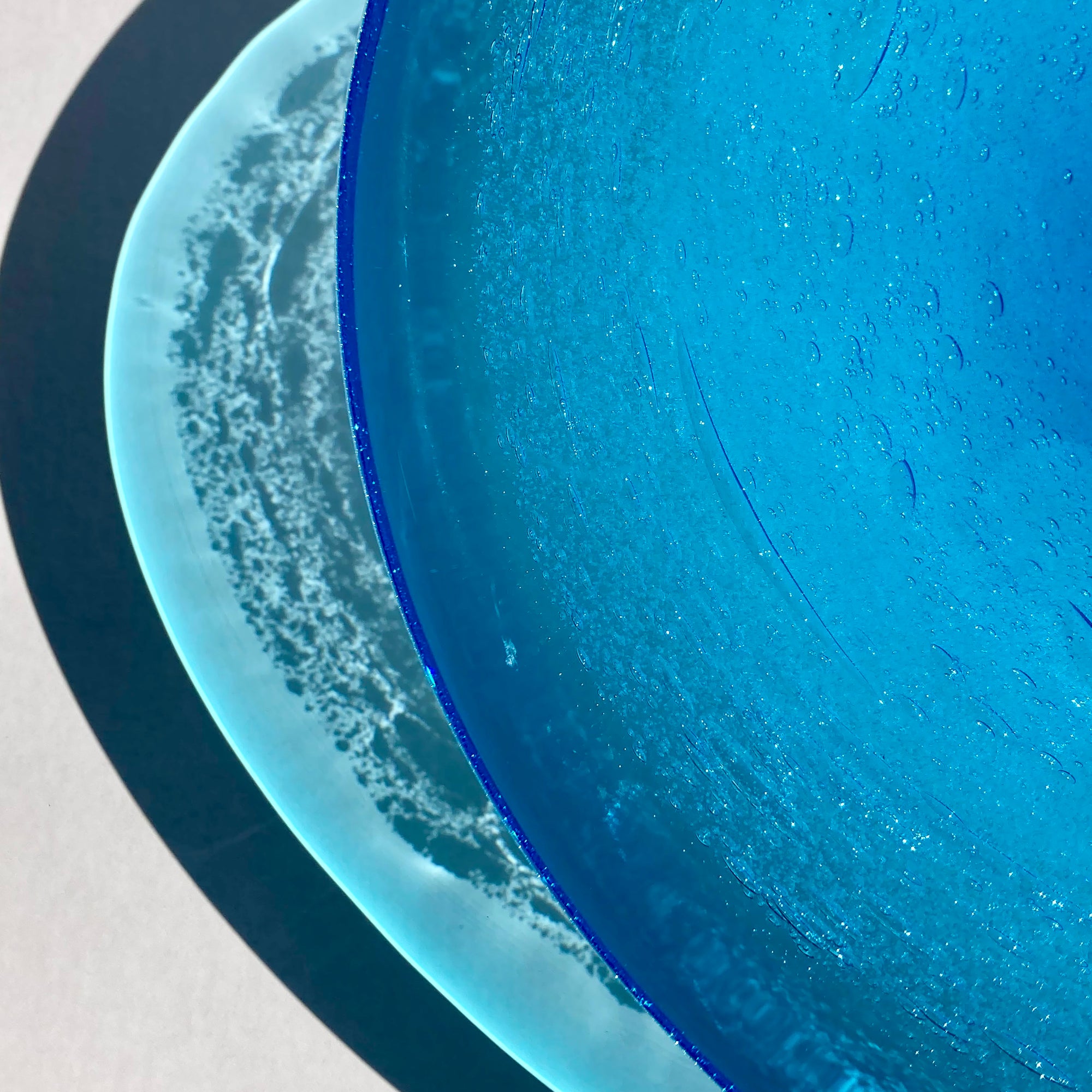 Inspired by the turbulent waters of the rivers of Alabama where the maker lives, these bowls evoke the frozen energy of glacial waters. Captured air in frothy bubbles fills the glass along with blazing color and a perfectly balanced, graceful shape, creating a centerpiece that begs to be touched, not just admired.