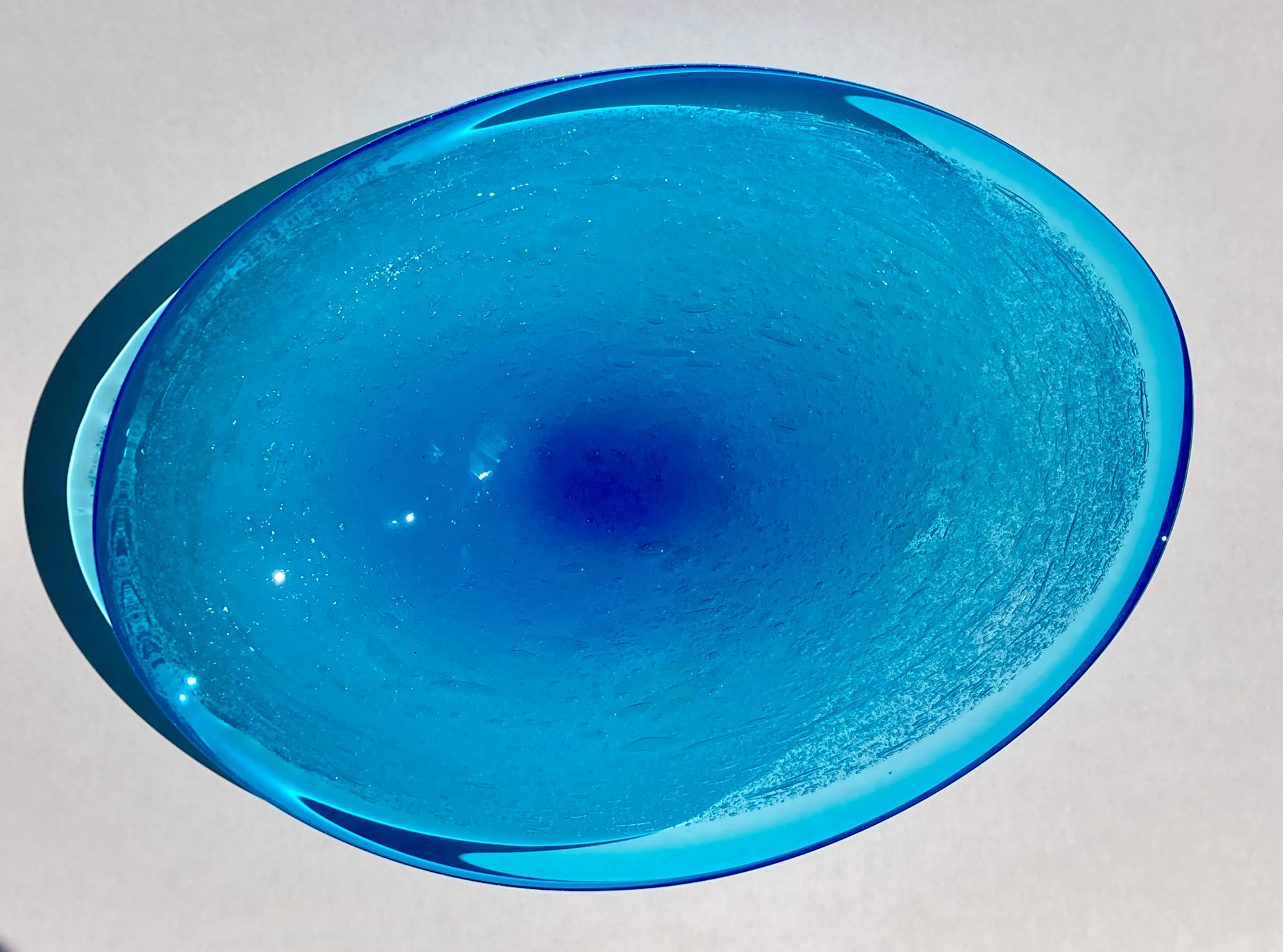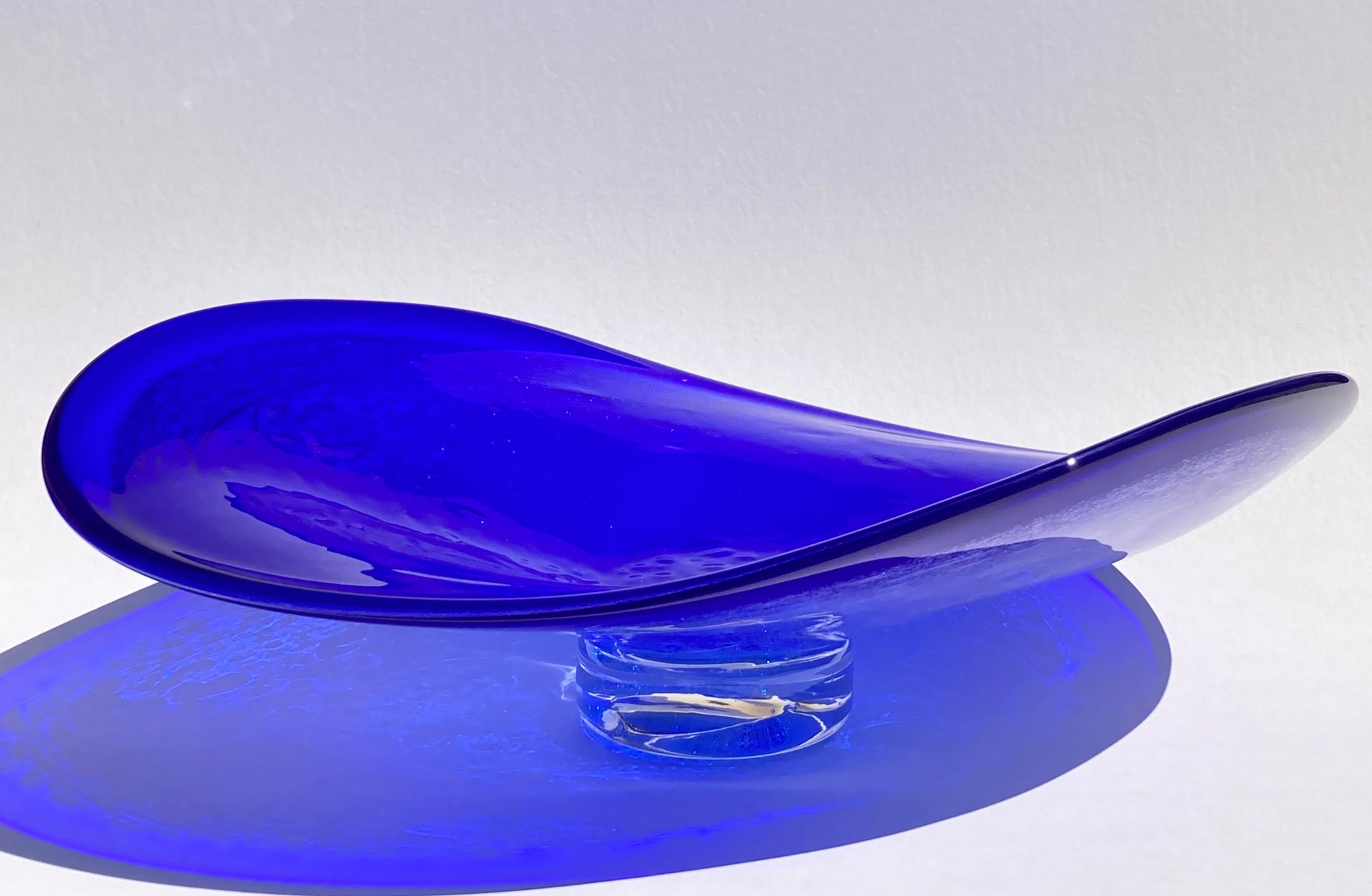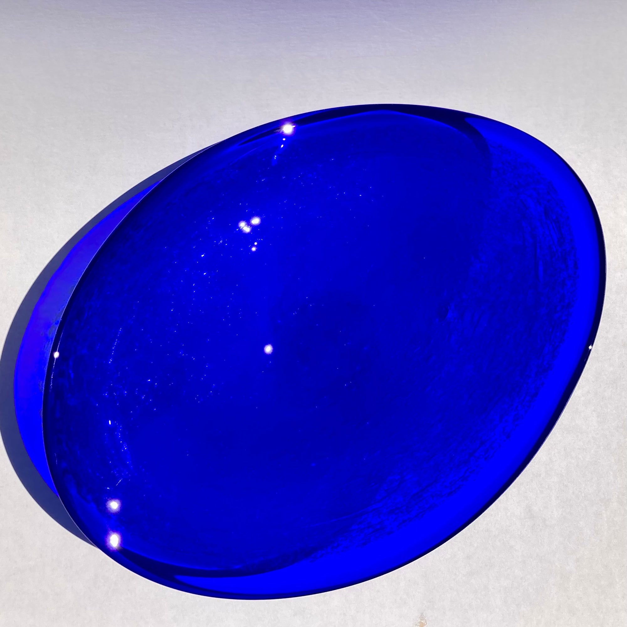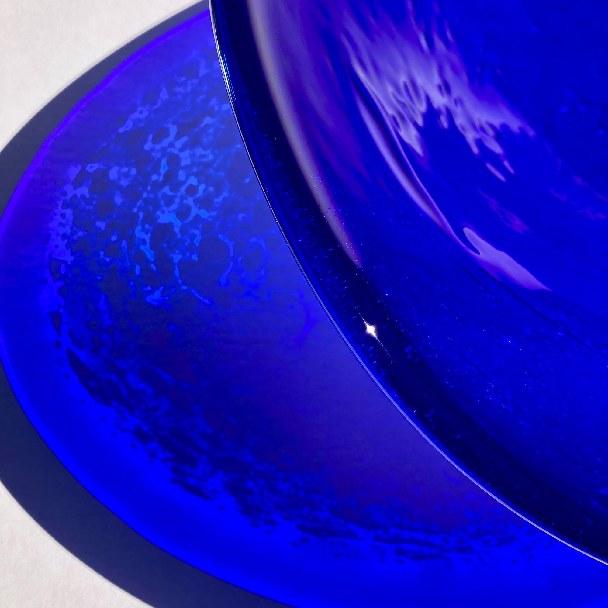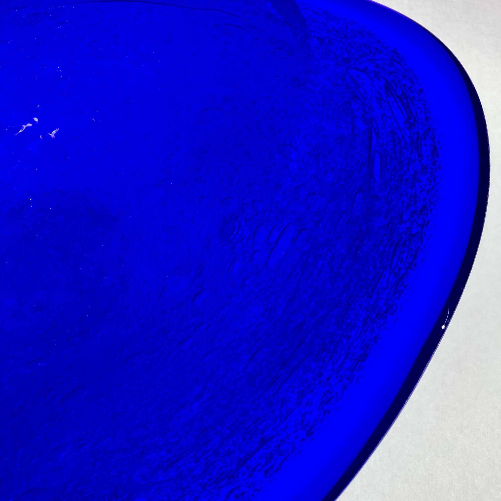 Cobalt bowl measures 21.5" by 16.5" by 6.5" at the highest point and weighs 21lbs.