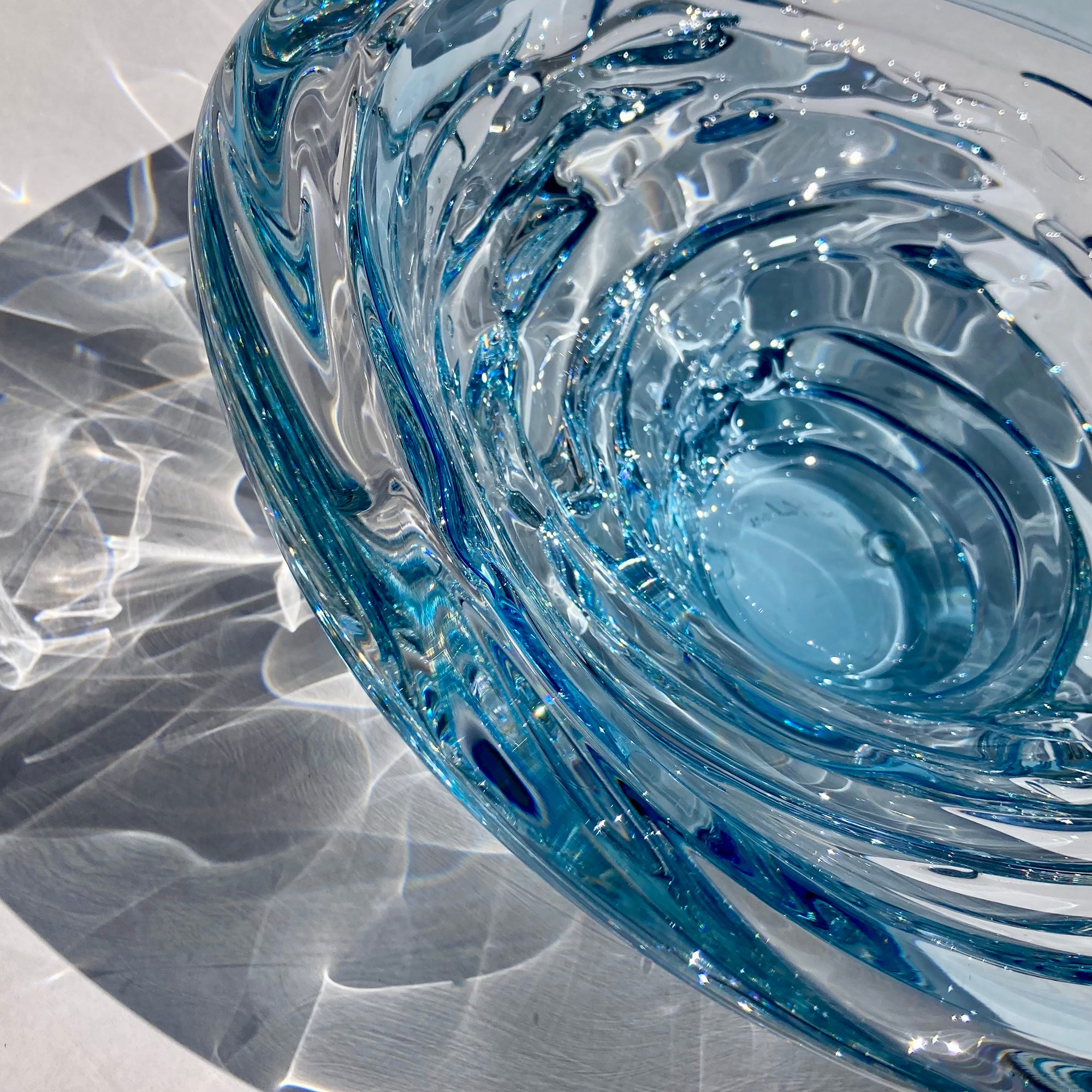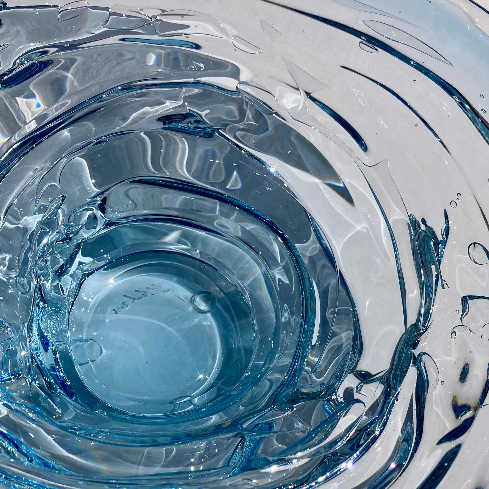 Flowing water, forever captured in glass.