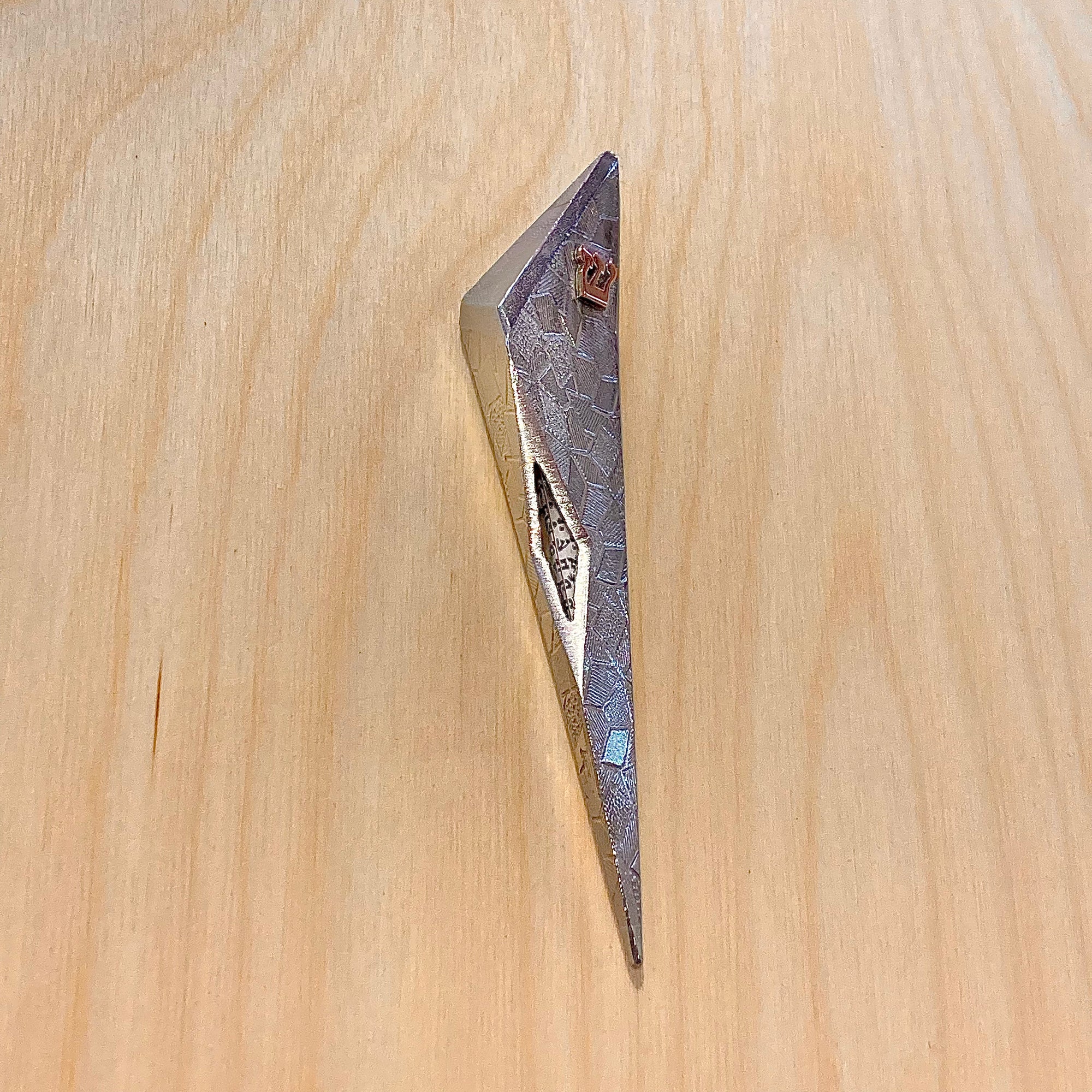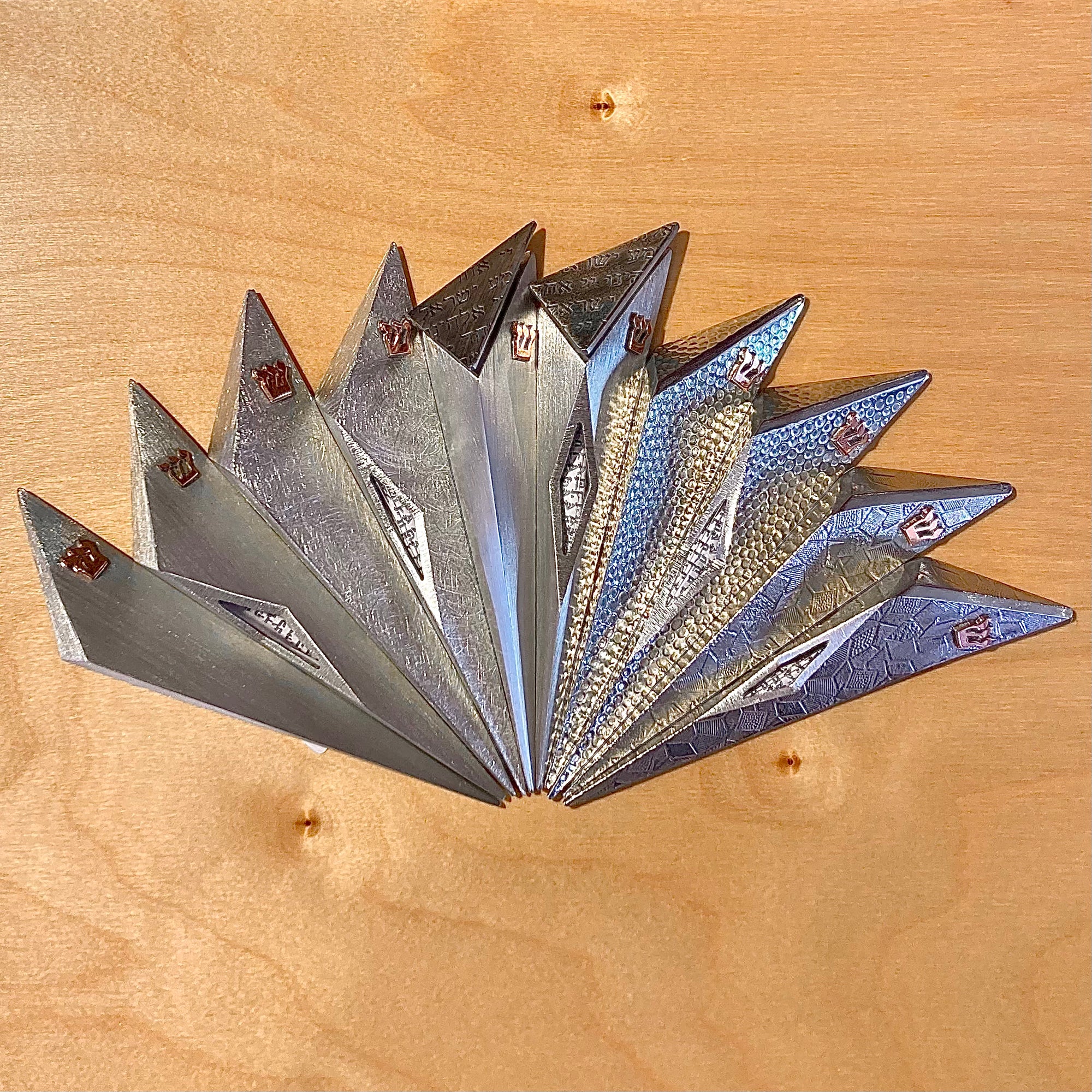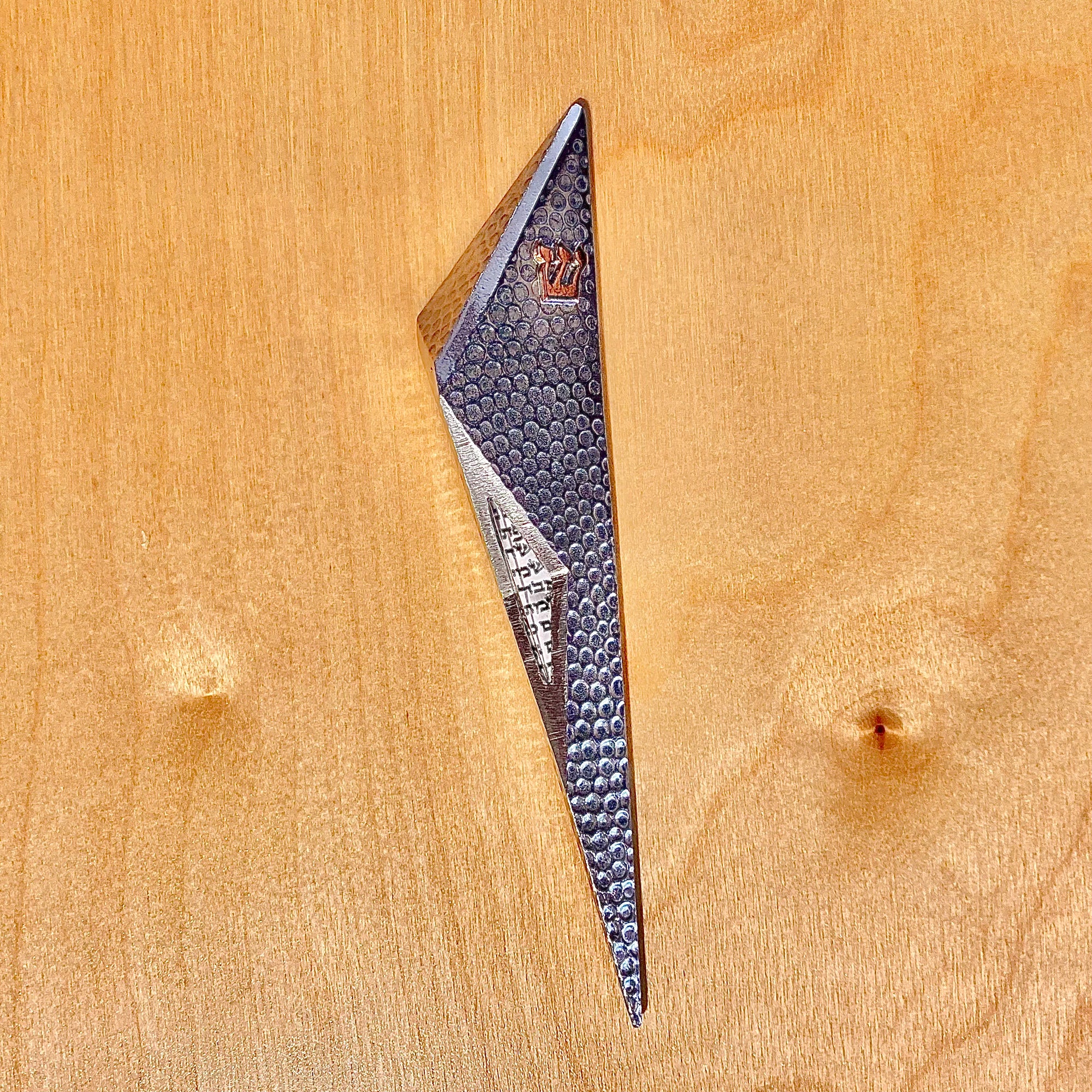 Brushed pewter is highly polished and sealed, so it is suitable for indoor or outdoor use, and accented with a brass "shin", the letter of the Hebrew alphabet that denotes the name of God. Available with simple brushing or swirl pattern, with a window or without, with engraved phrasing from "Shma" on top or without. "Shma" is the classic prayer of "Hear o Israel, the Lord is God the Lord is one" which is the prayer written on the parchment traditionally placed in a mezuzah.
