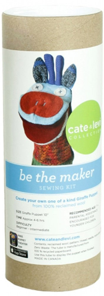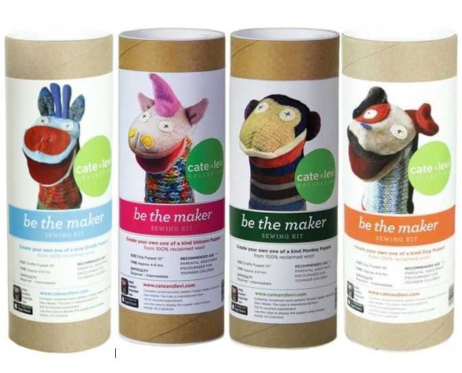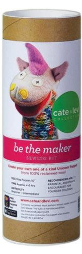 The perfect rainy day activity, this kit includes everything (except scissors) you need to make your own puppet. A stack of wool pieces from pre-washed, upcycled sweaters in a variety of colors, a notions kit with a needle, thread, pre-made eyes and nose, easy to follow instructions and straightforward forms for cutting out all the pieces from the included wool.