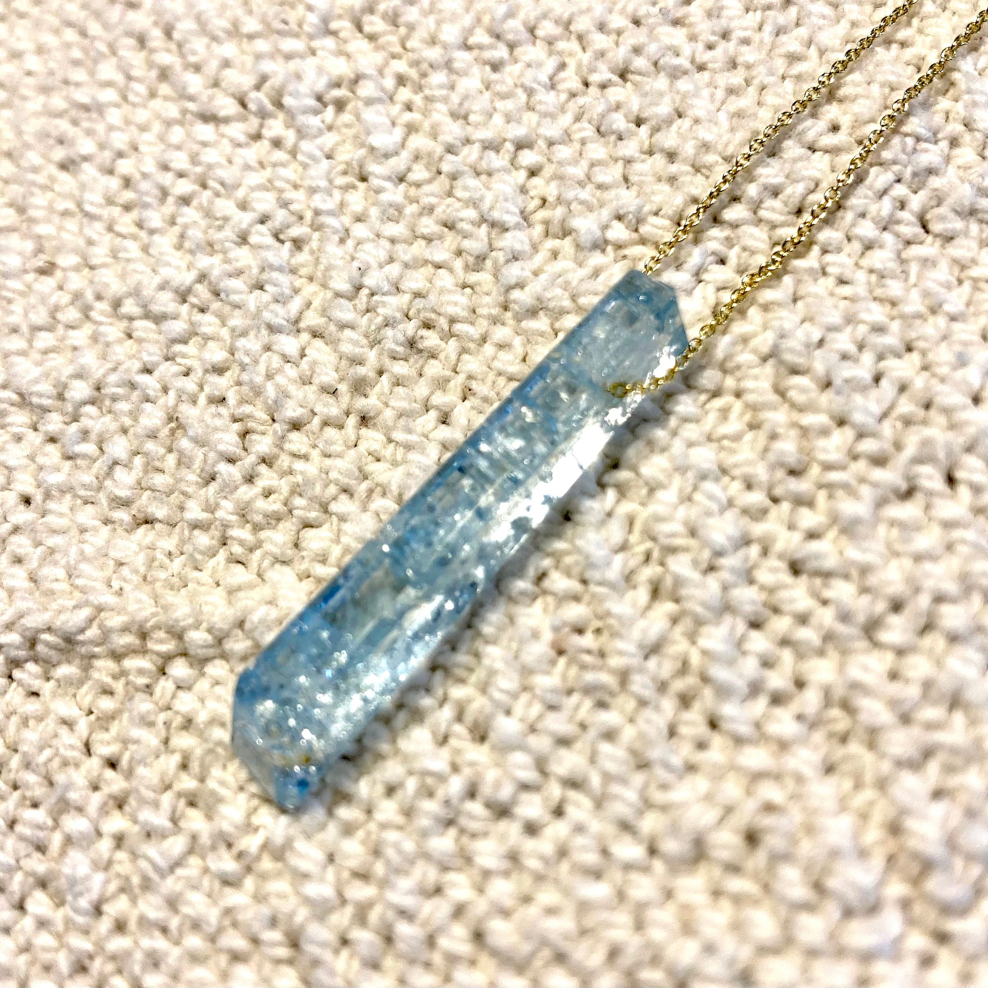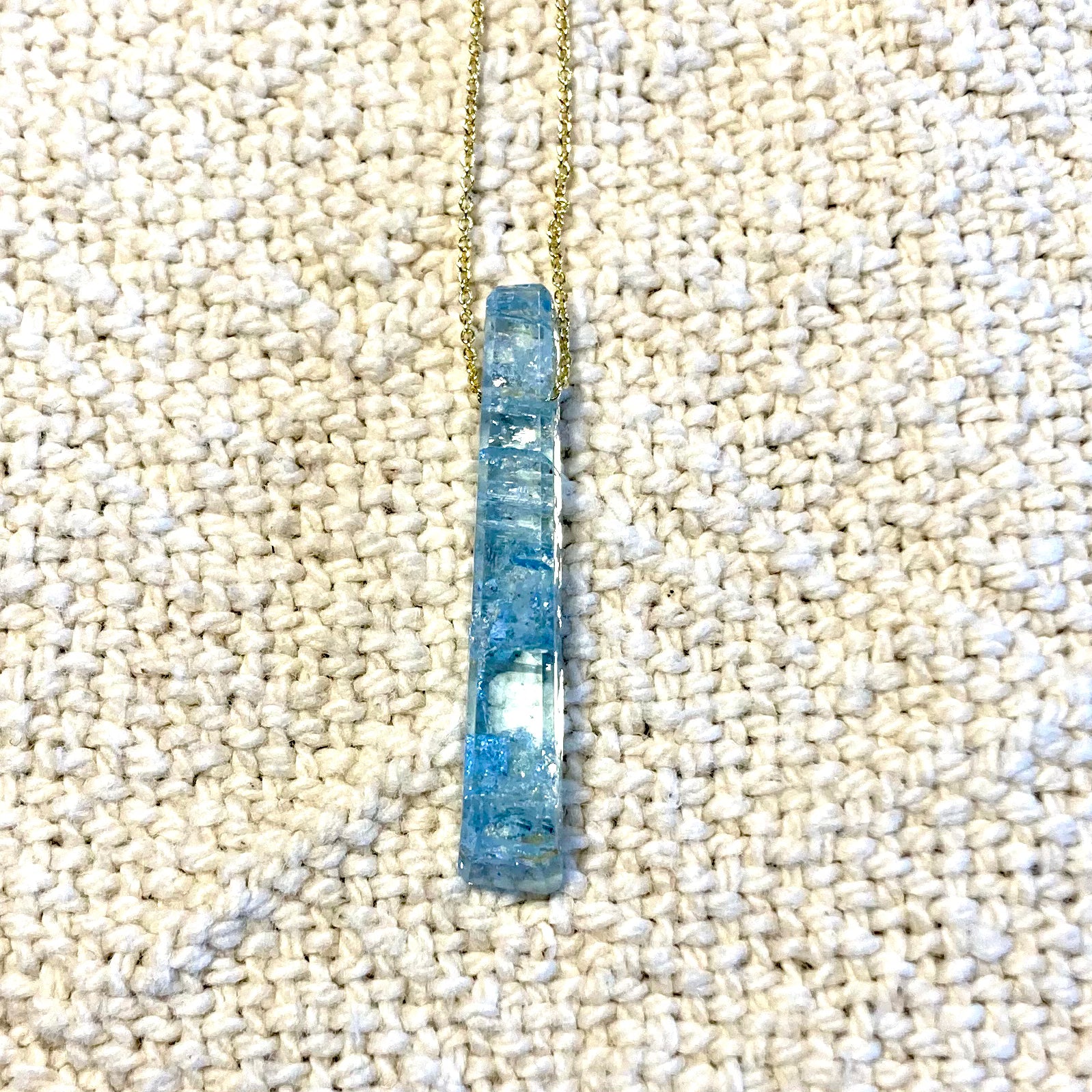 One of a Kind Aquamarine Sliver on 14K Gold Necklace