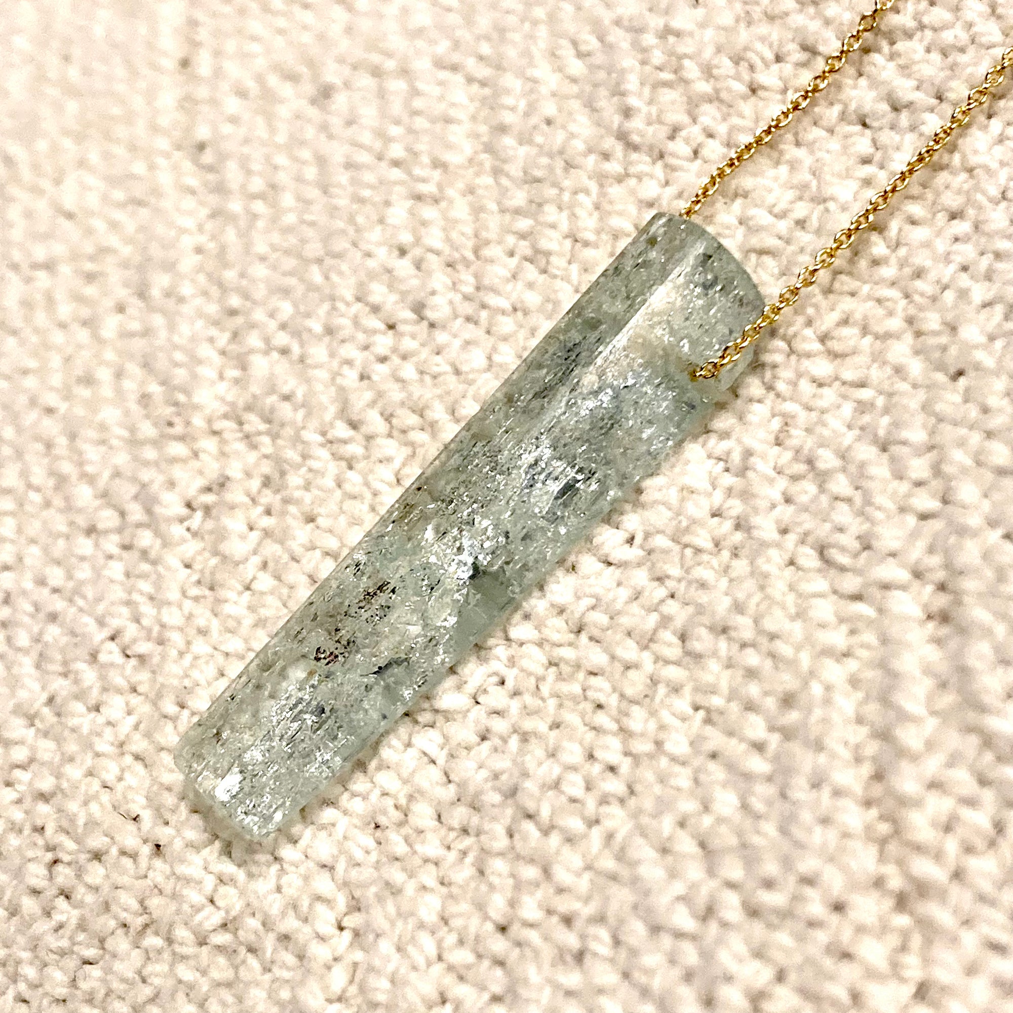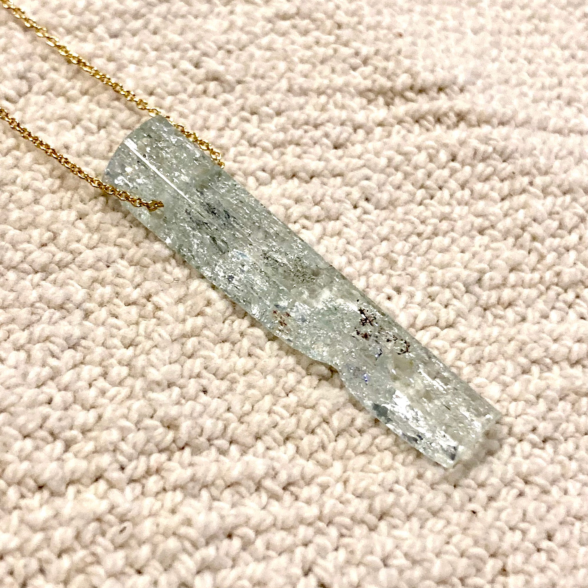 One of a Kind Geometric Aquamarine on 14K Gold Necklace
