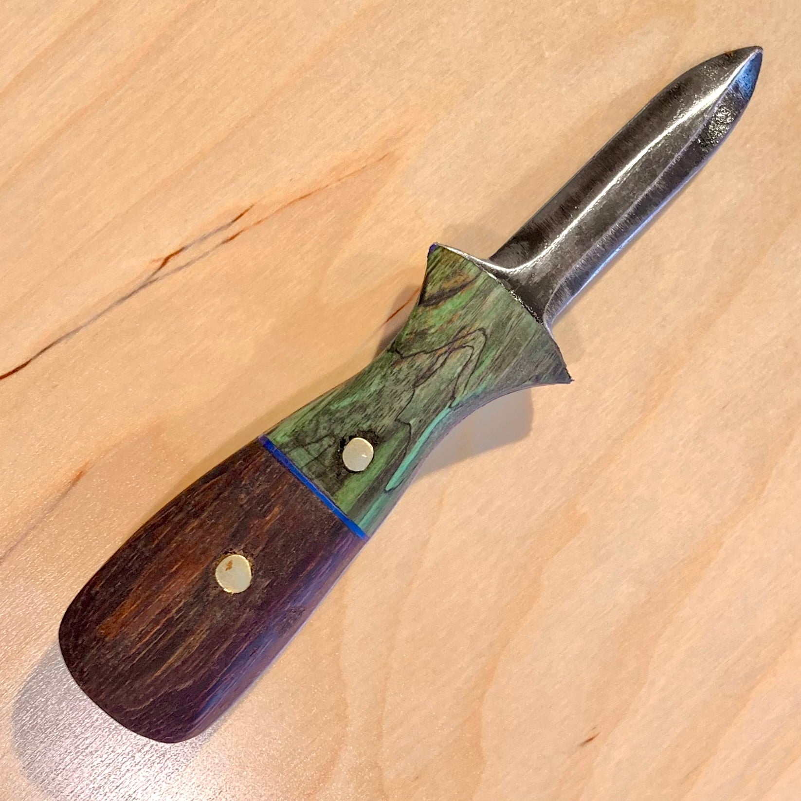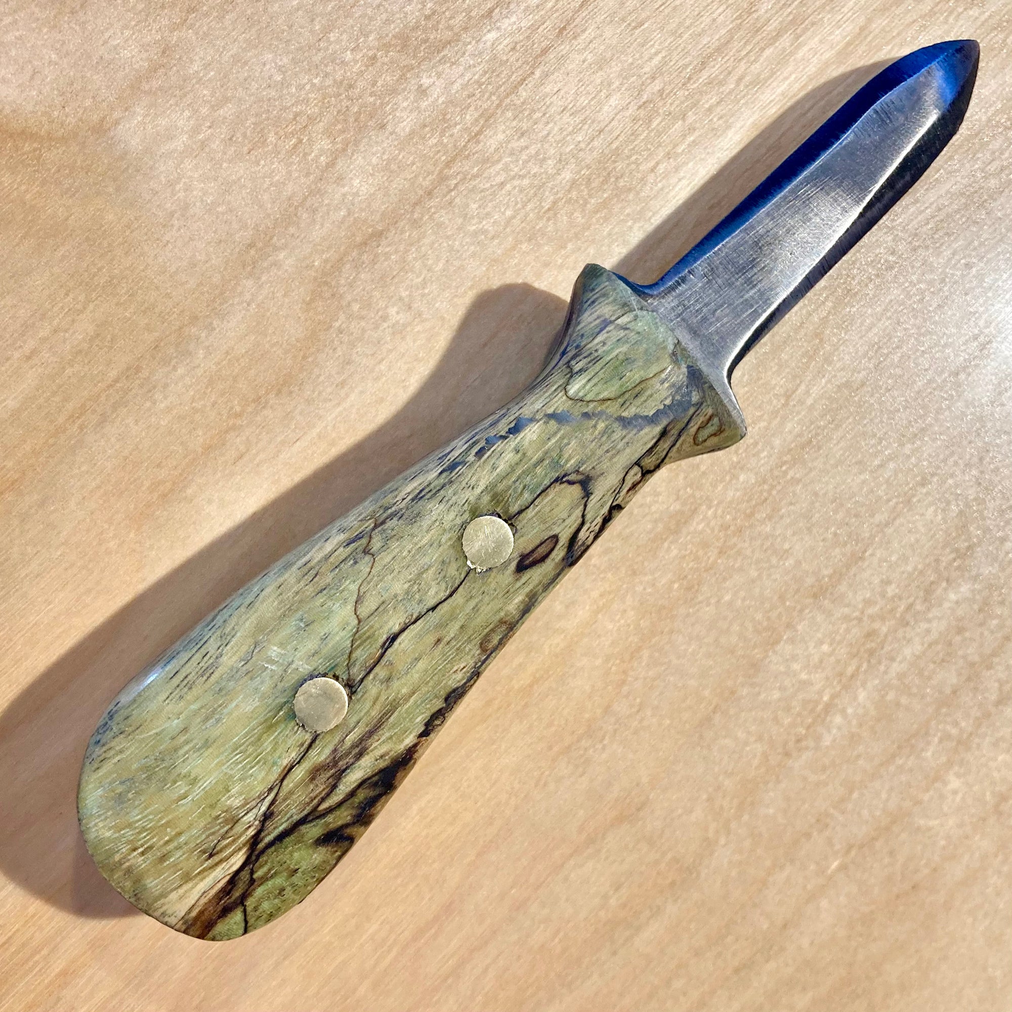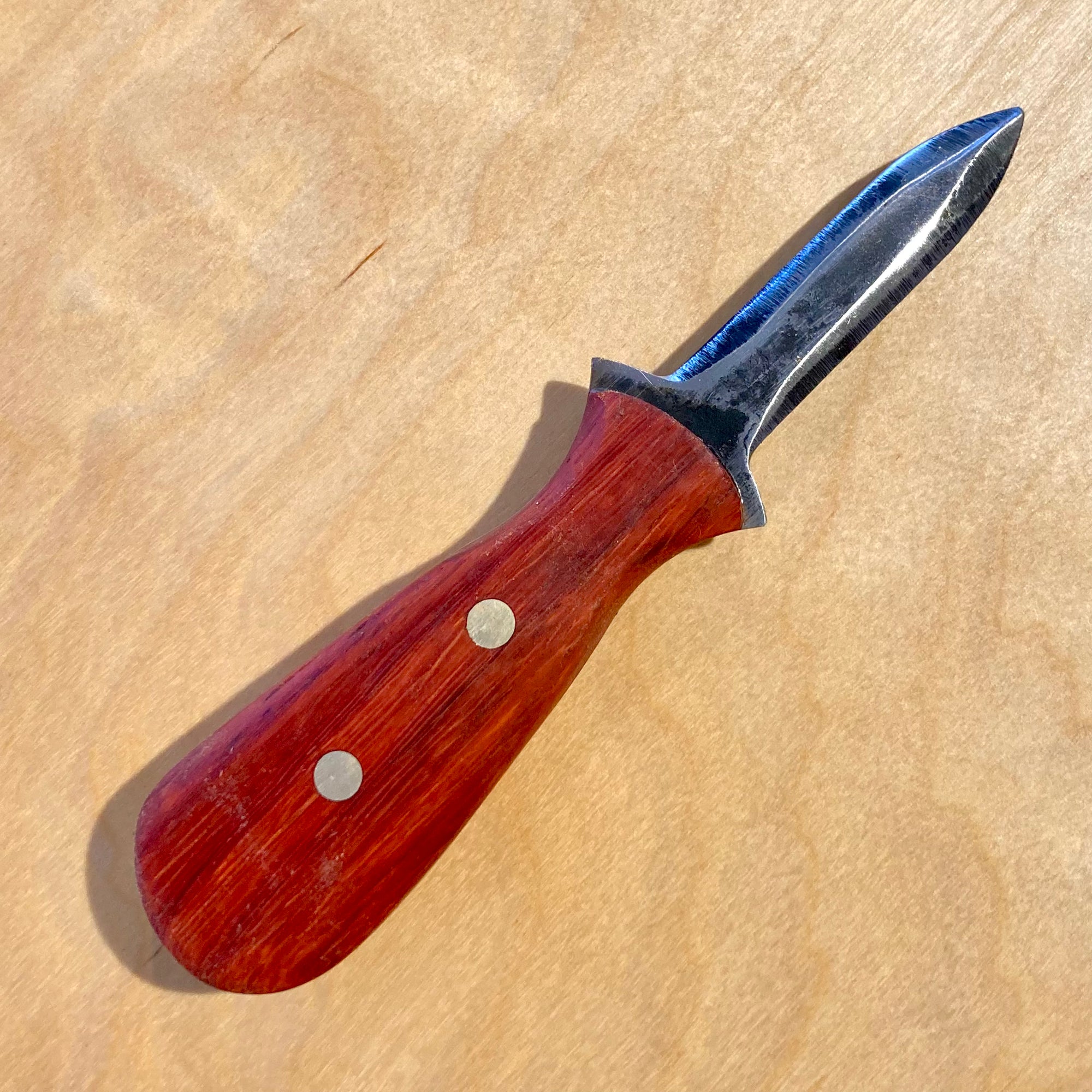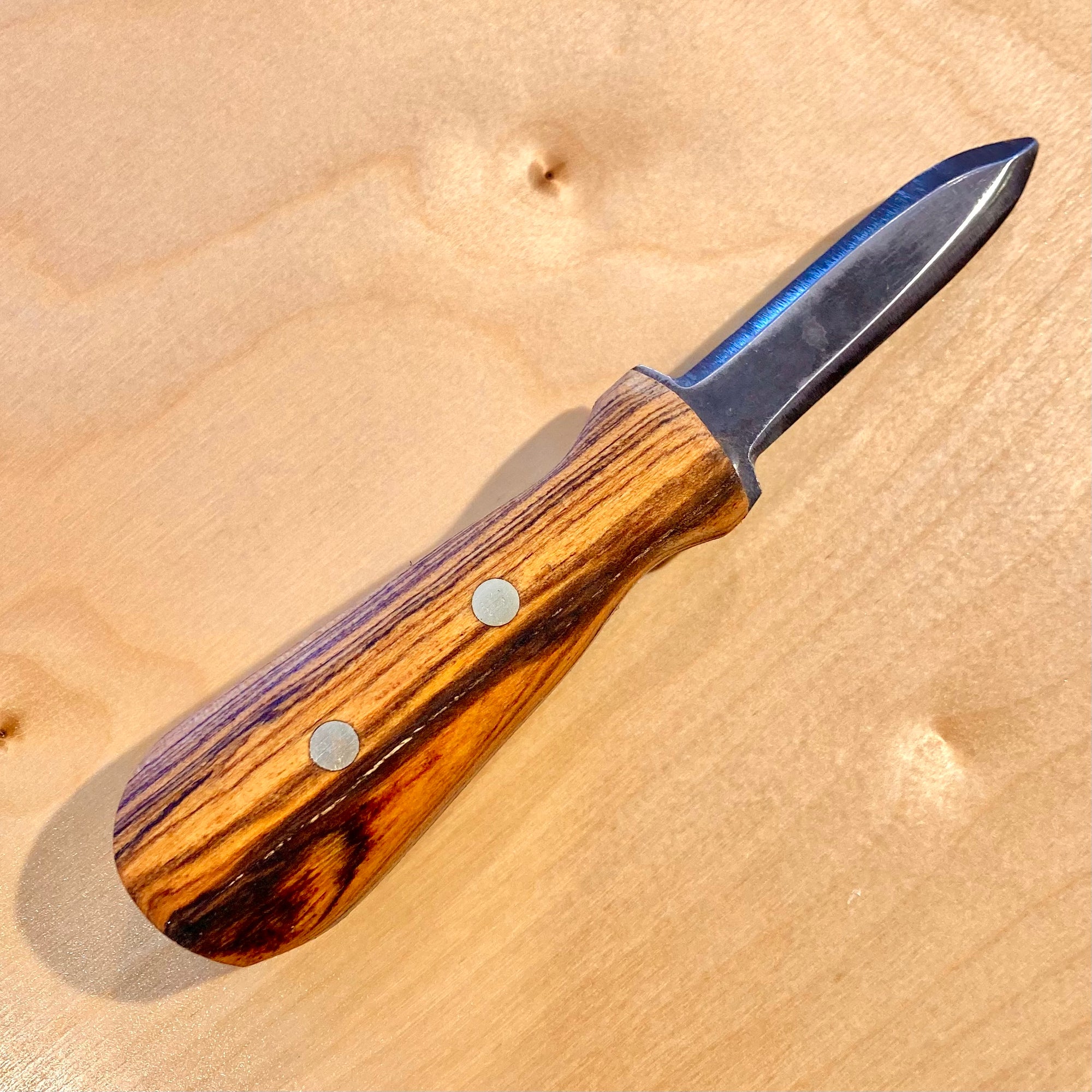 The Oyster knife is a double bevel edge knife with a curved tip (known as the New Haven style) ideal for opening oysters.