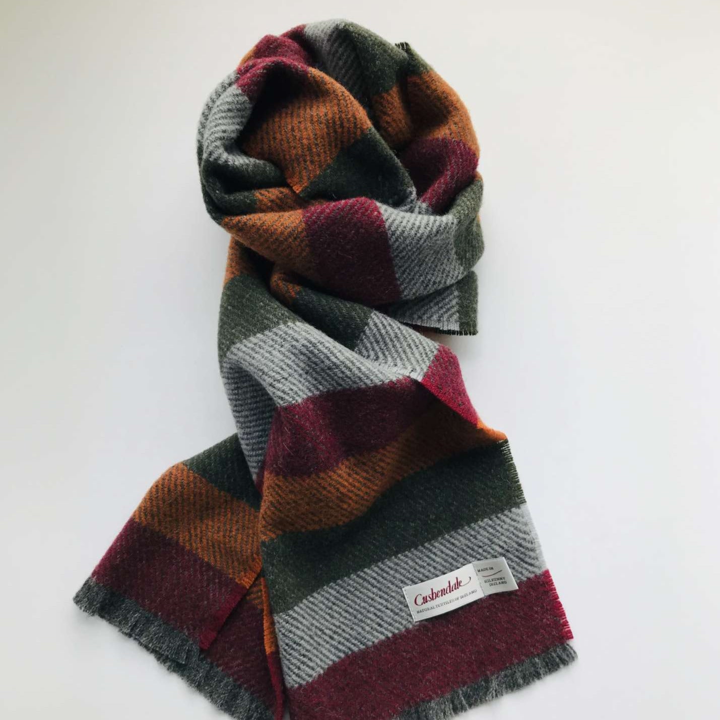Classic modern college stripe patterns are created using ultrasoft English merino lambswool that is specially dyed in a special process to preserve the natural softness of lambswool using their own in house dyes, then woven and hand finished for that classic, tailored finish.