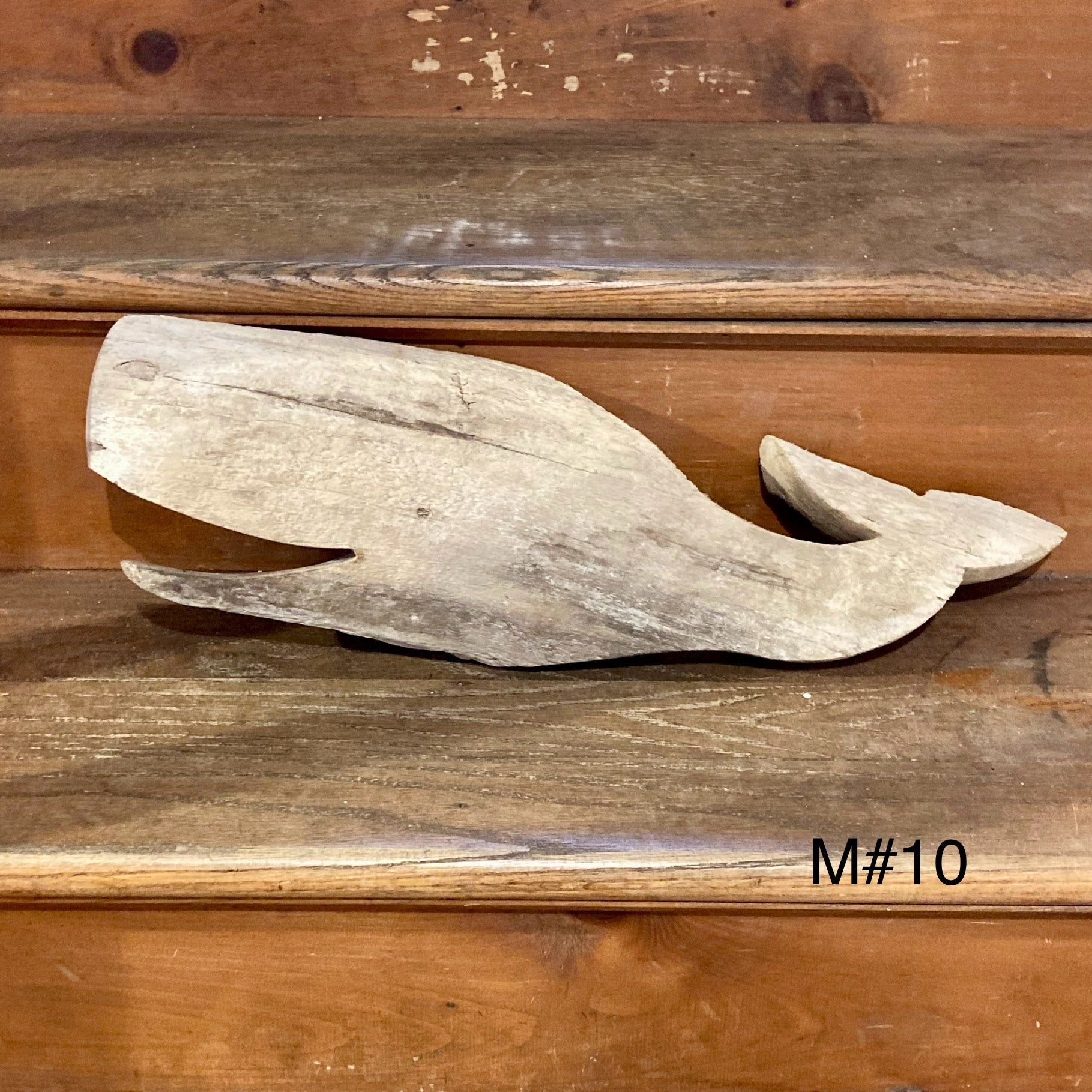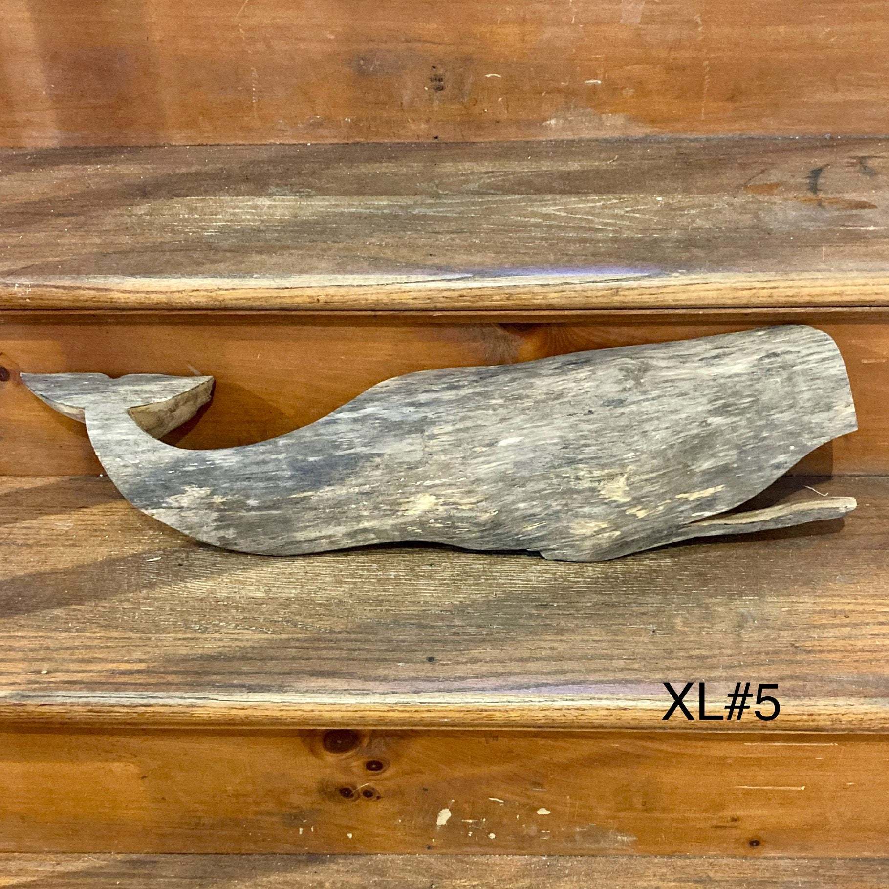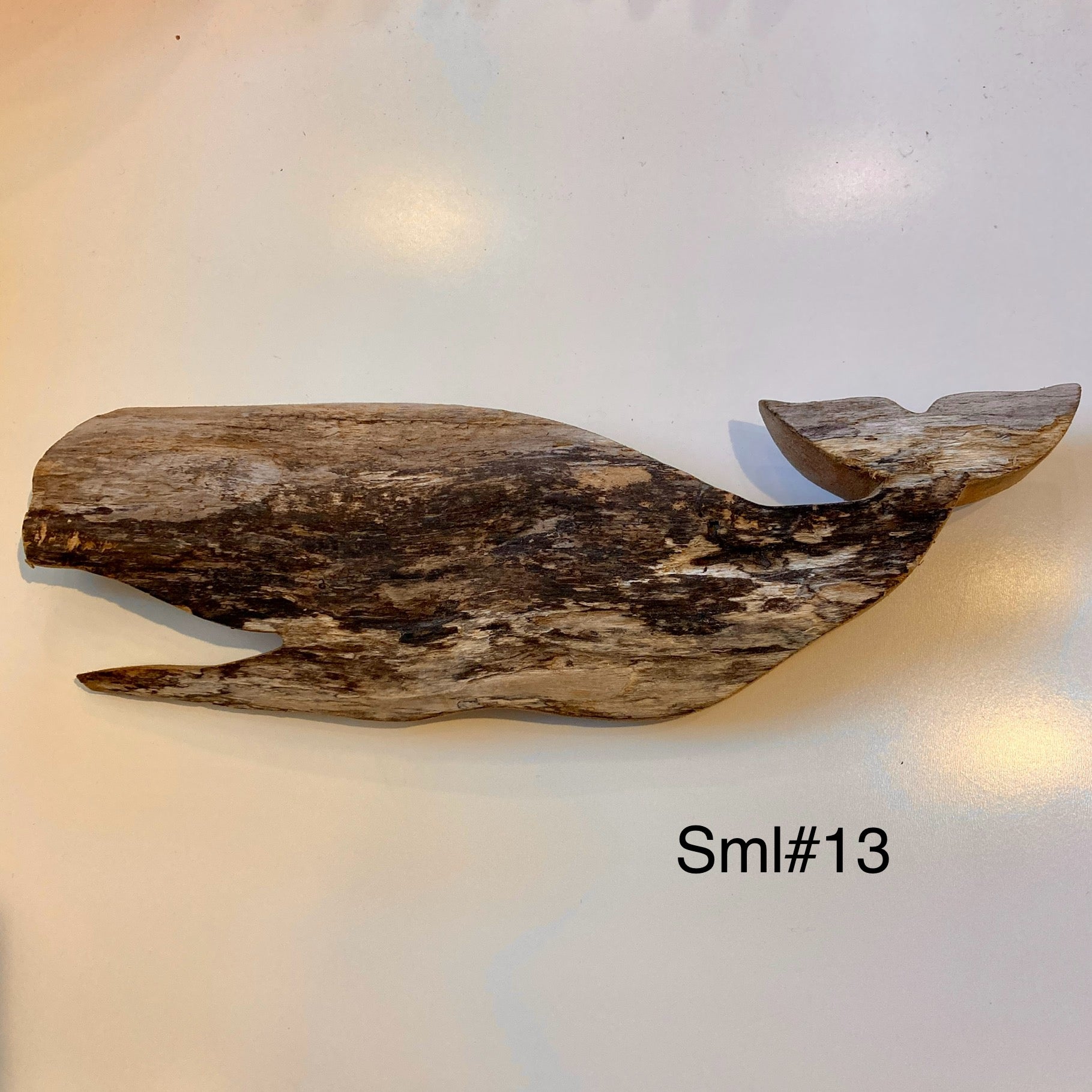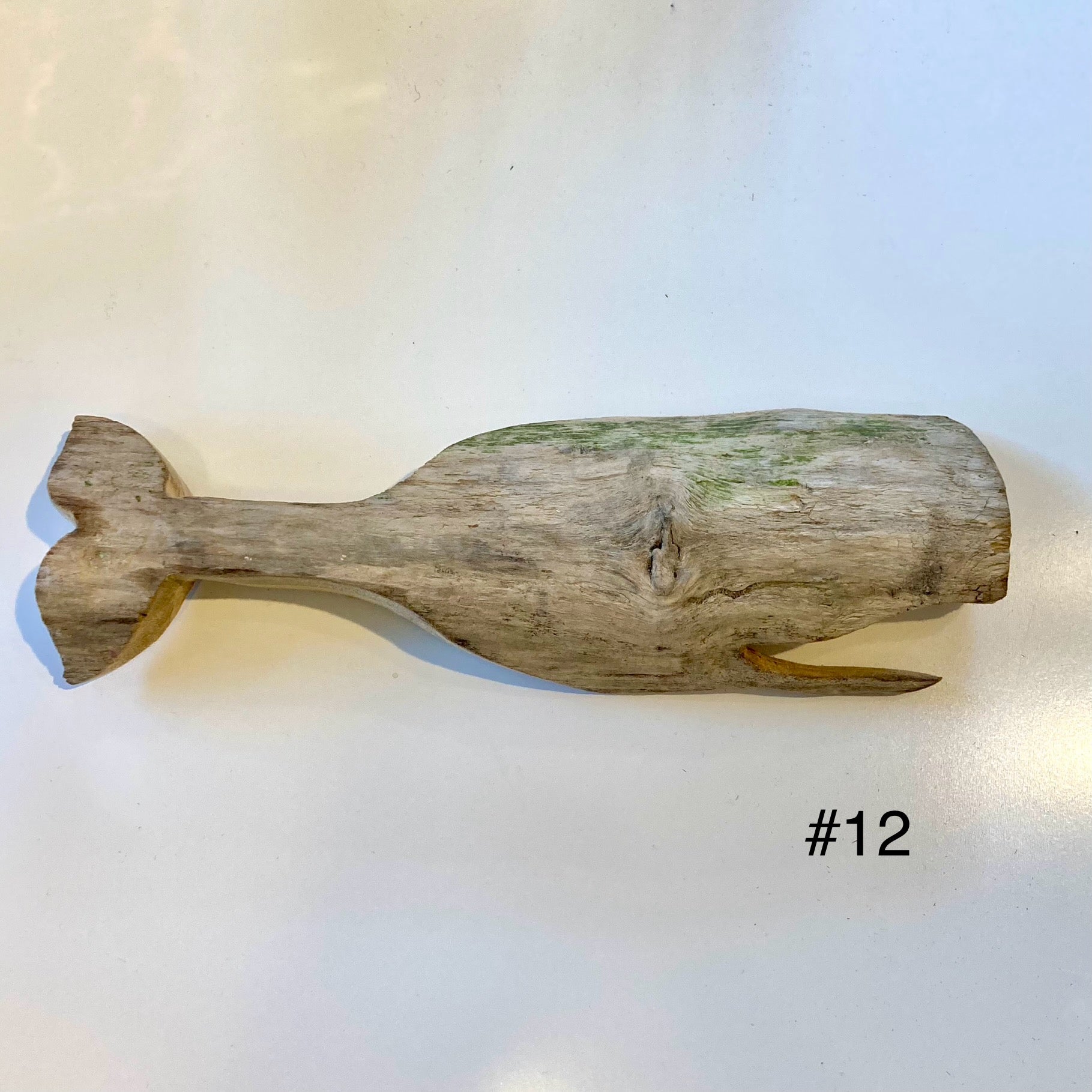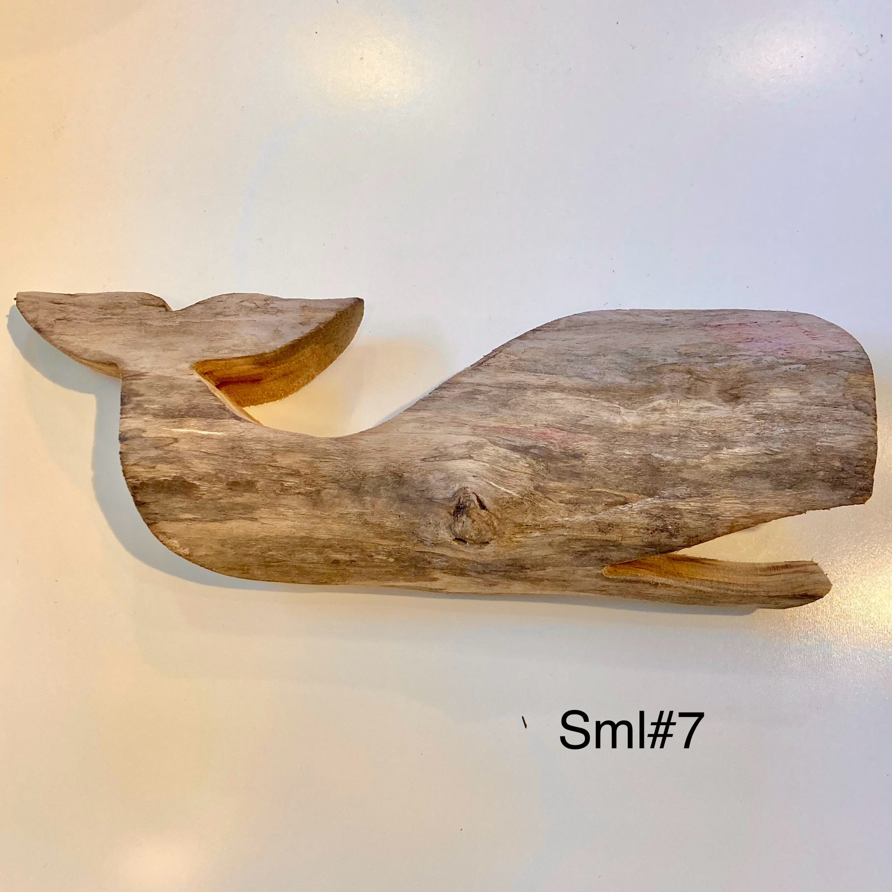 Handmade by a New England native woodworker and his Afghani refugee helper from driftwood he collects from across New England beaches, each whale is completely unique with the natural patterns of the wood dictating the shape of each piece.