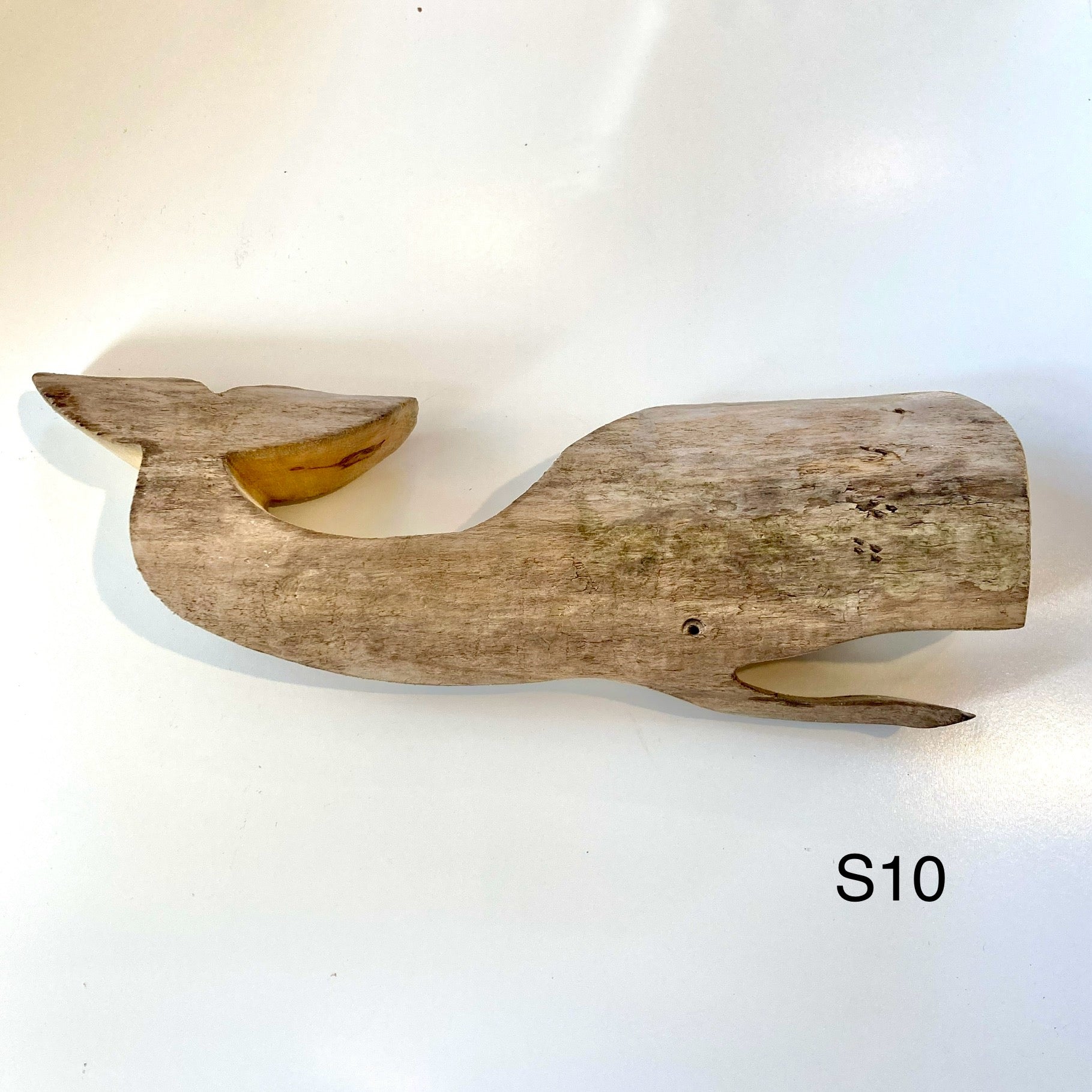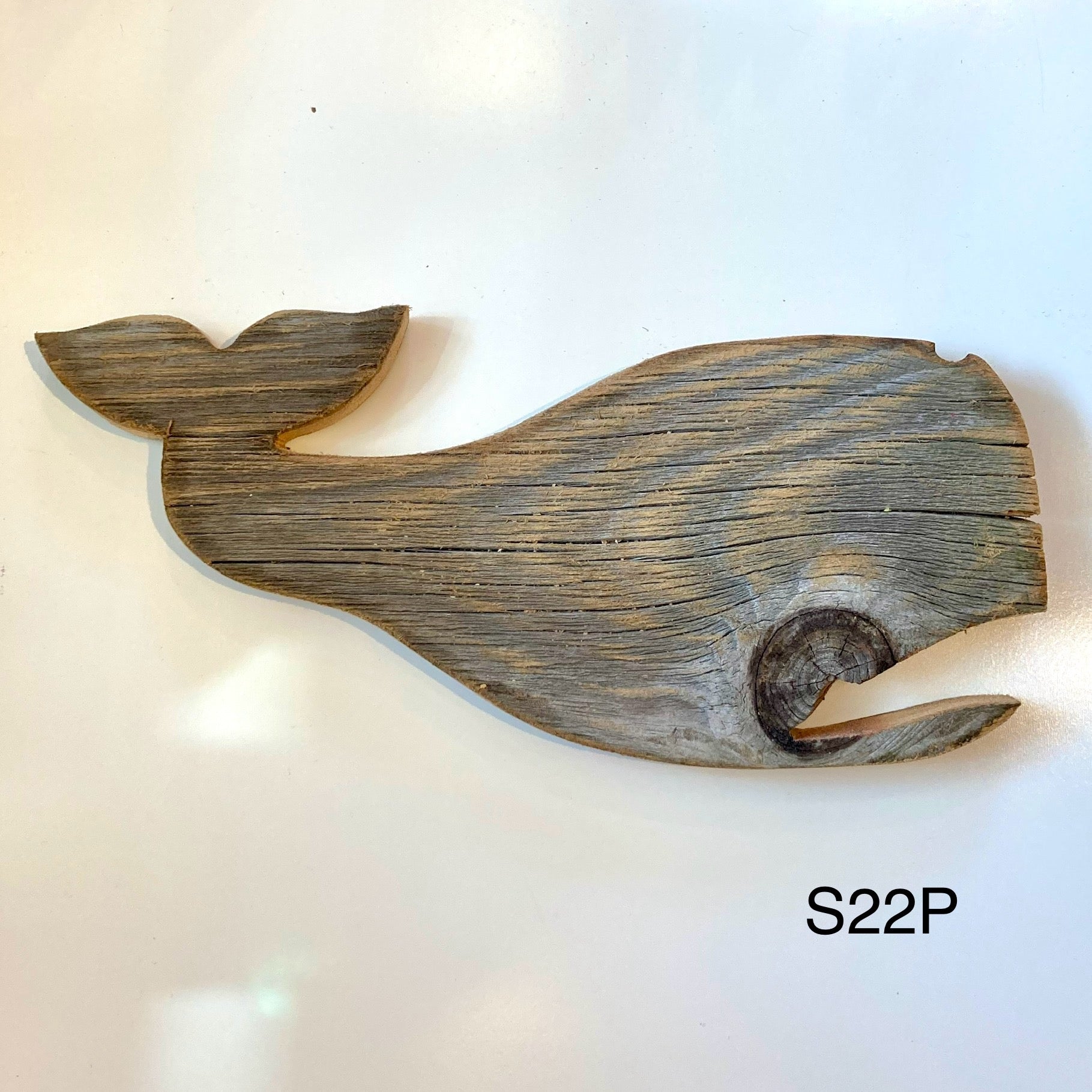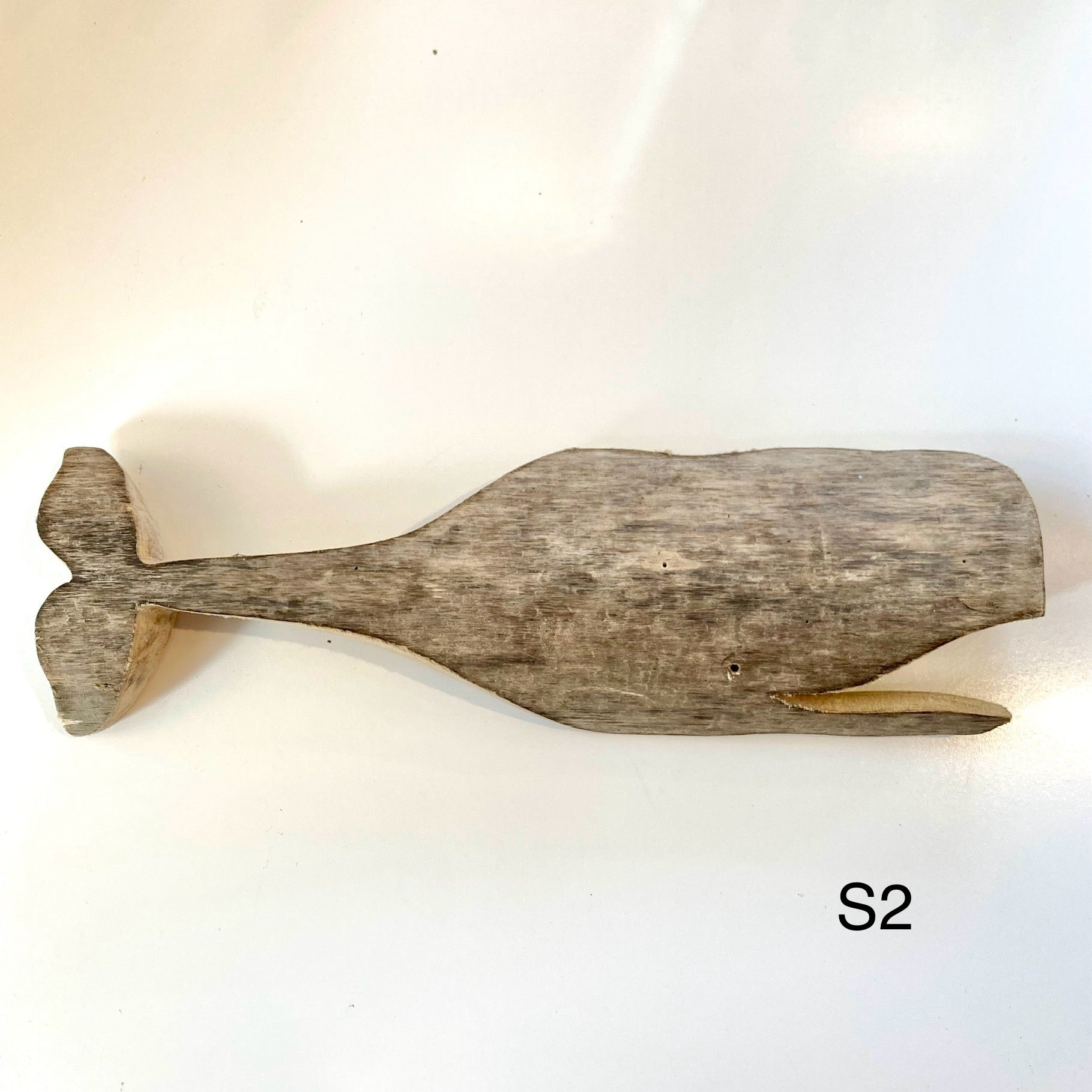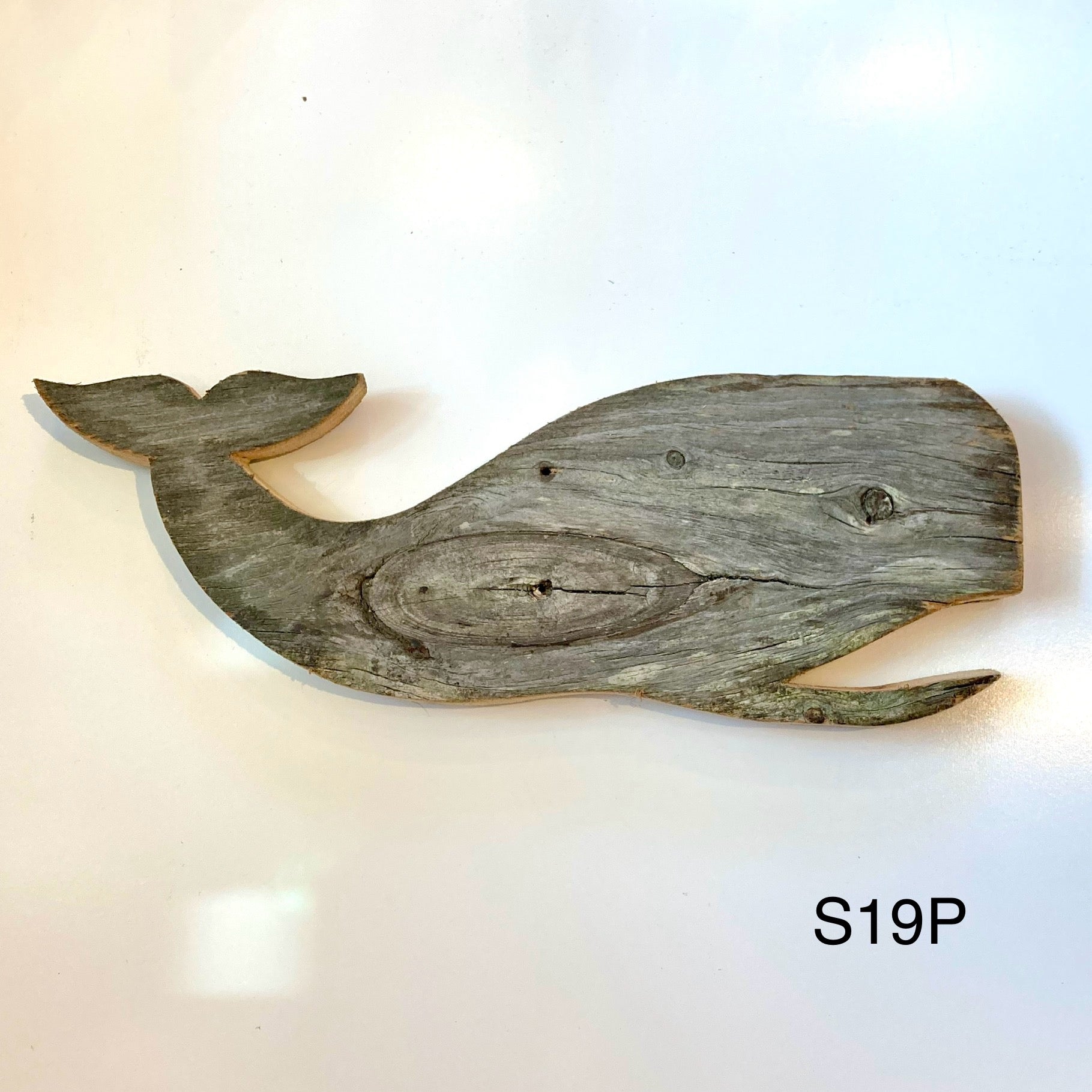 Handmade by a New England native woodworker and his Afghani refugee helper from driftwood he collects from across New England beaches, each whale is completely unique with the natural patterns of the wood dictating the shape of each piece.