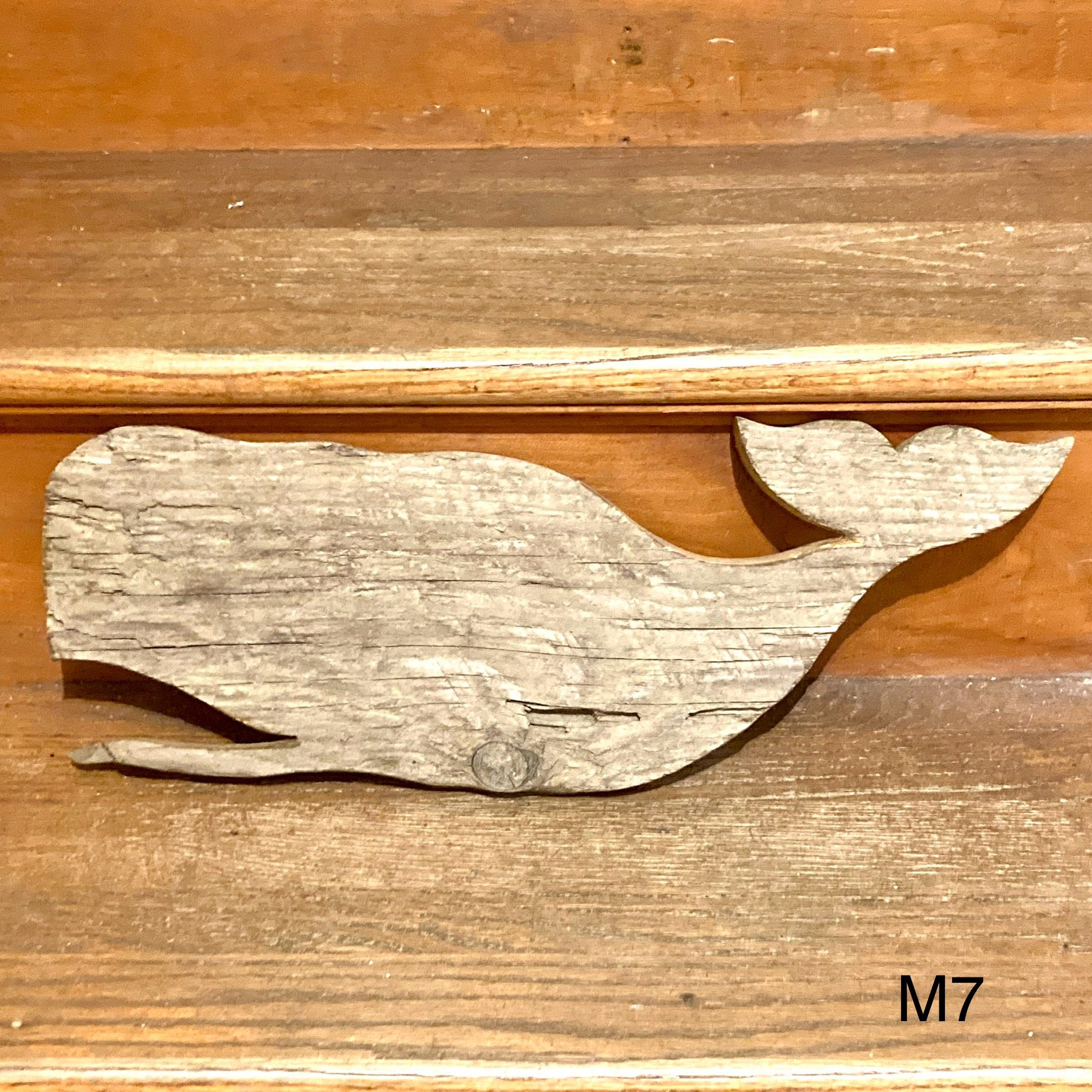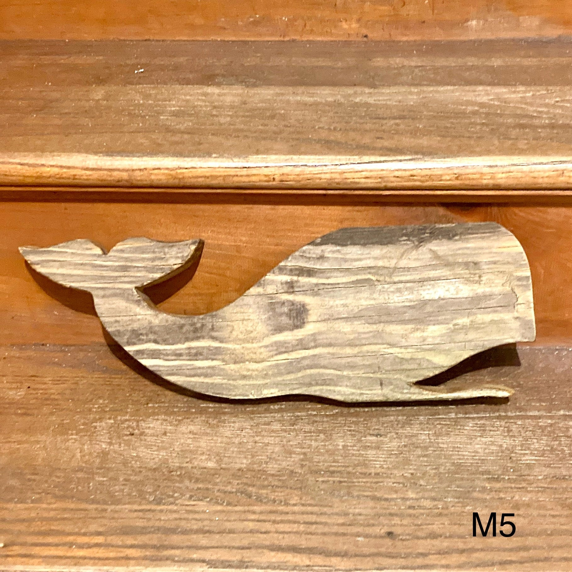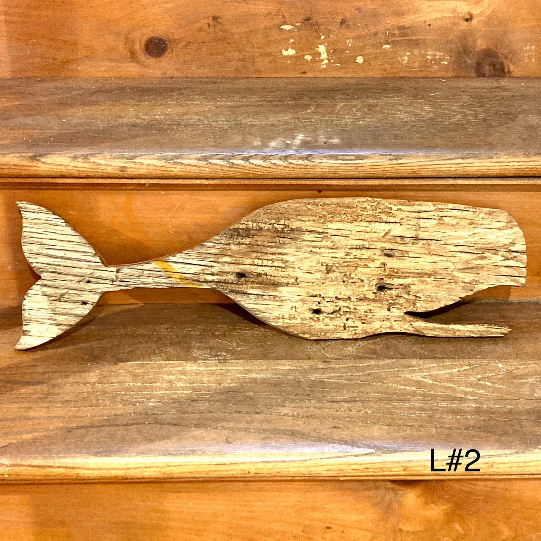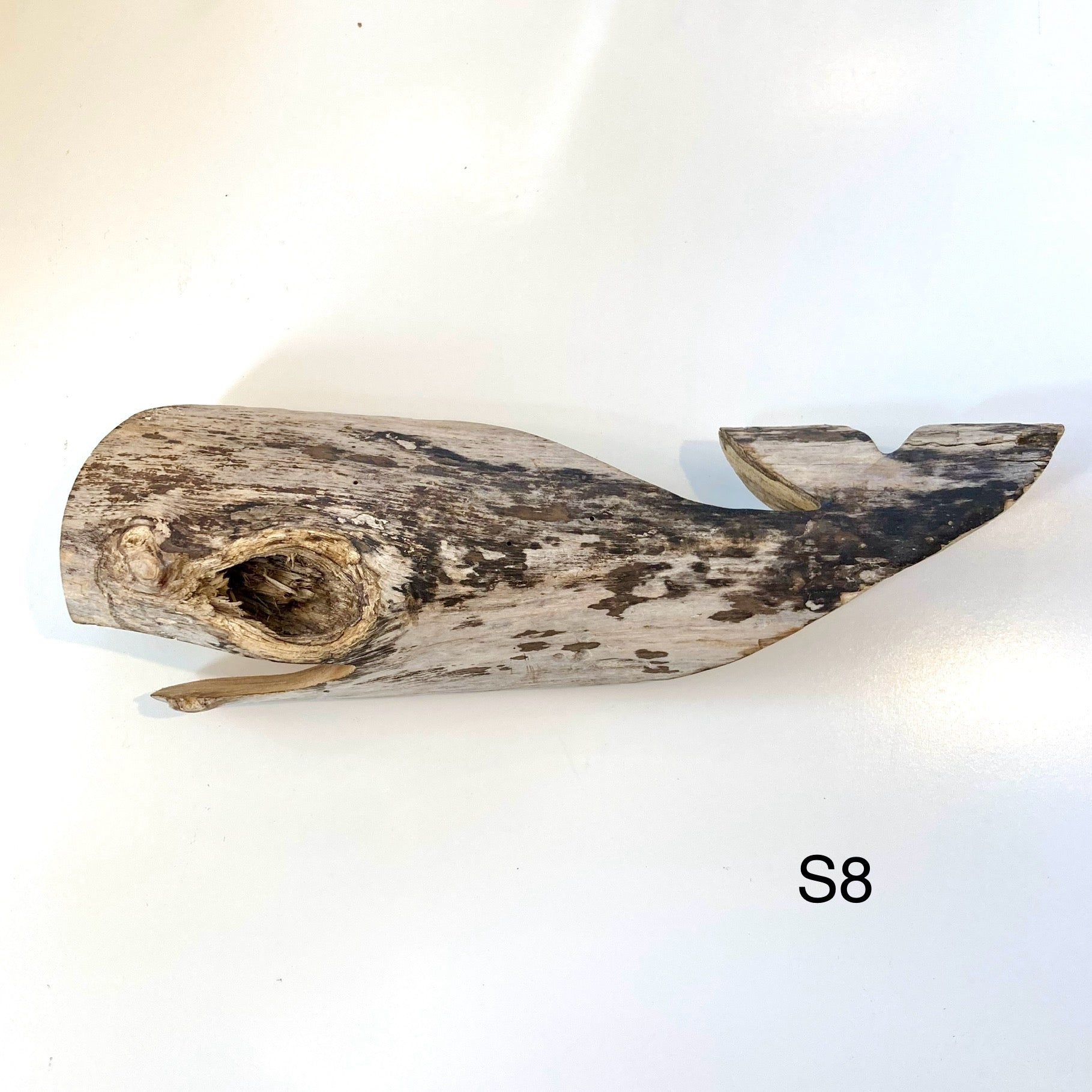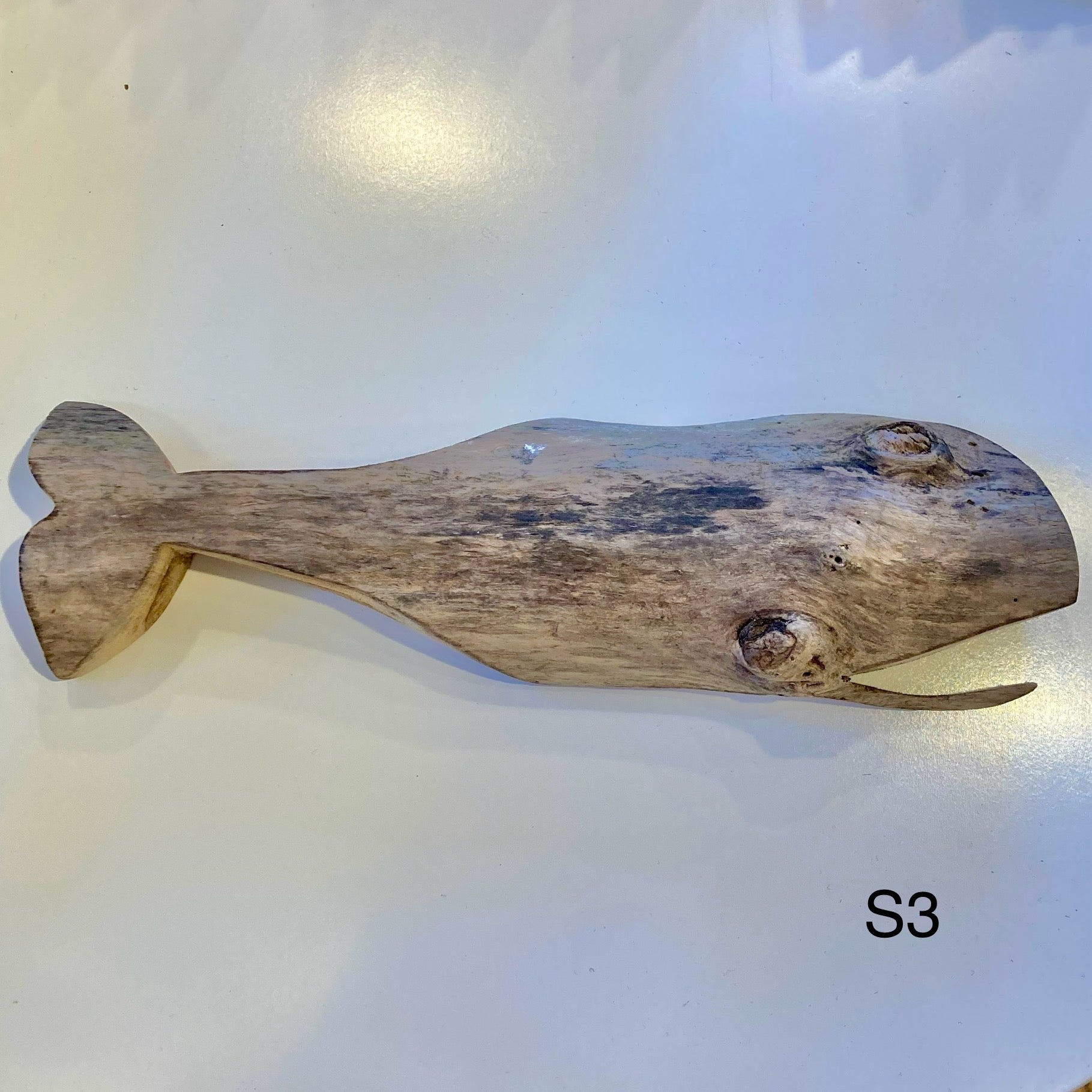 Handmade by a New England native woodworker and his Afghani refugee helper from driftwood he collects from across New England beaches, each whale is completely unique with the natural patterns of the wood dictating the shape of each piece.