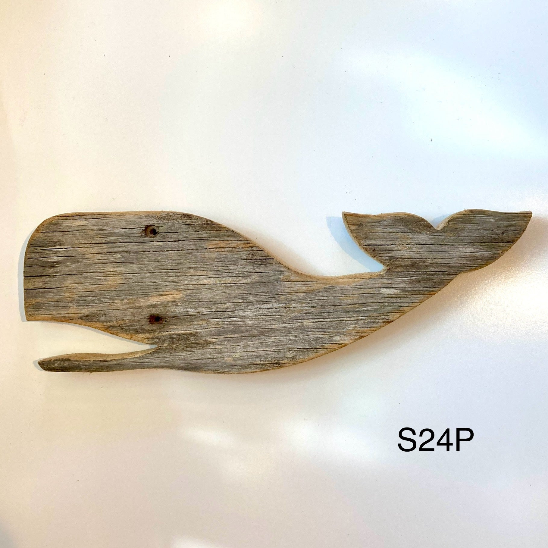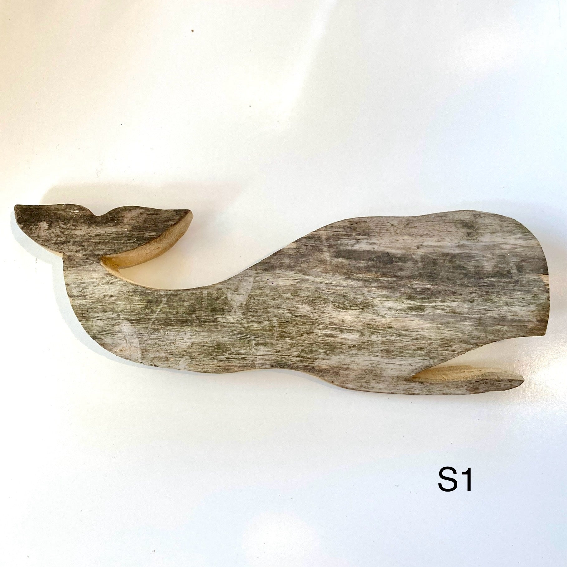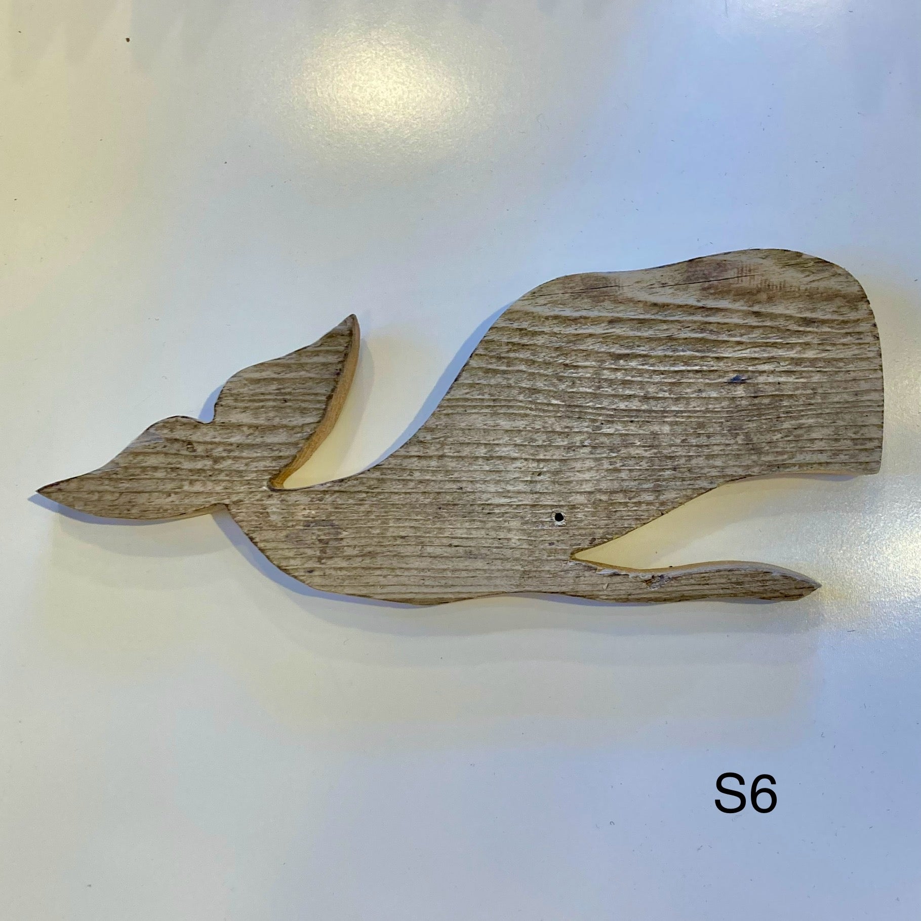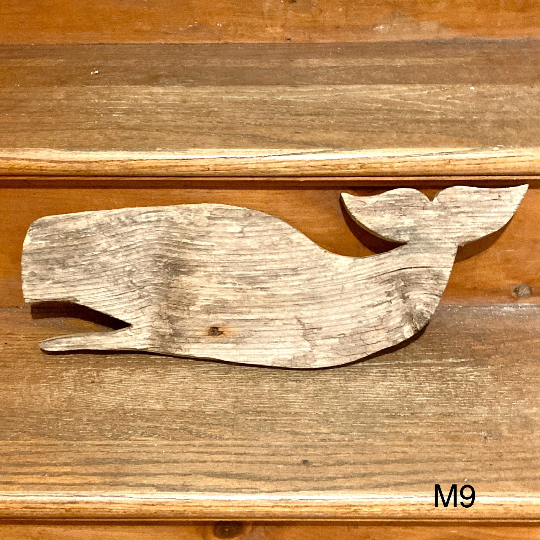 Handmade by a New England native woodworker and his Afghani refugee helper from driftwood he collects from across New England beaches, each whale is completely unique with the natural patterns of the wood dictating the shape of each piece.