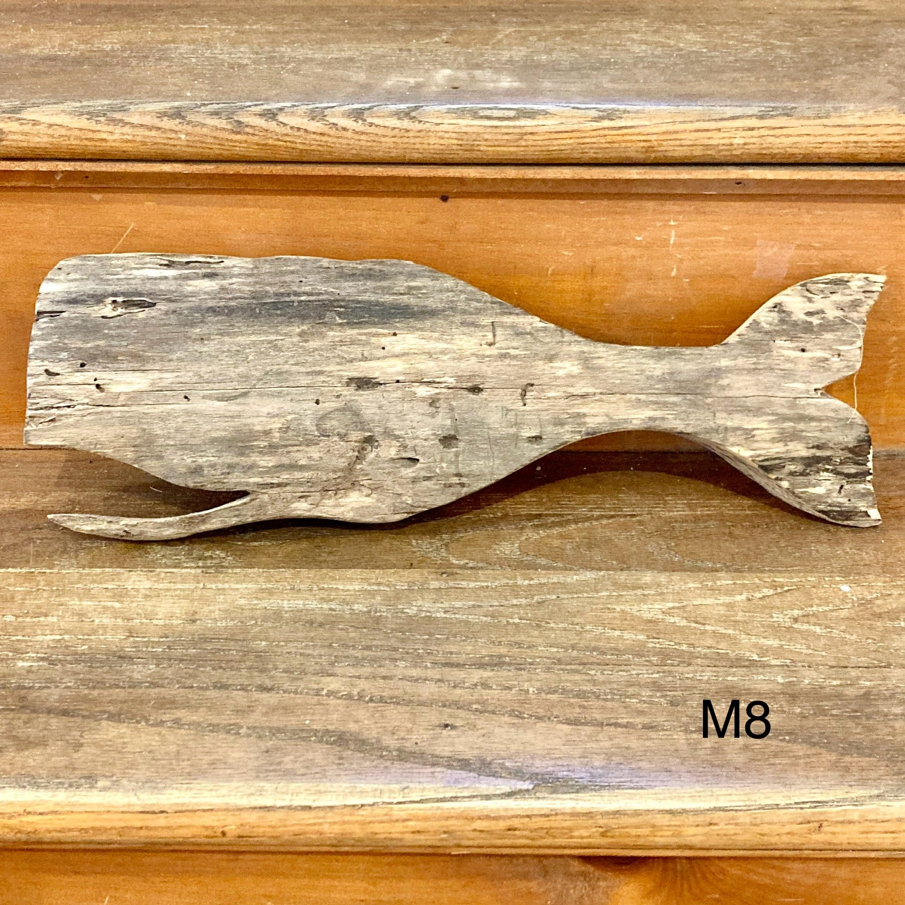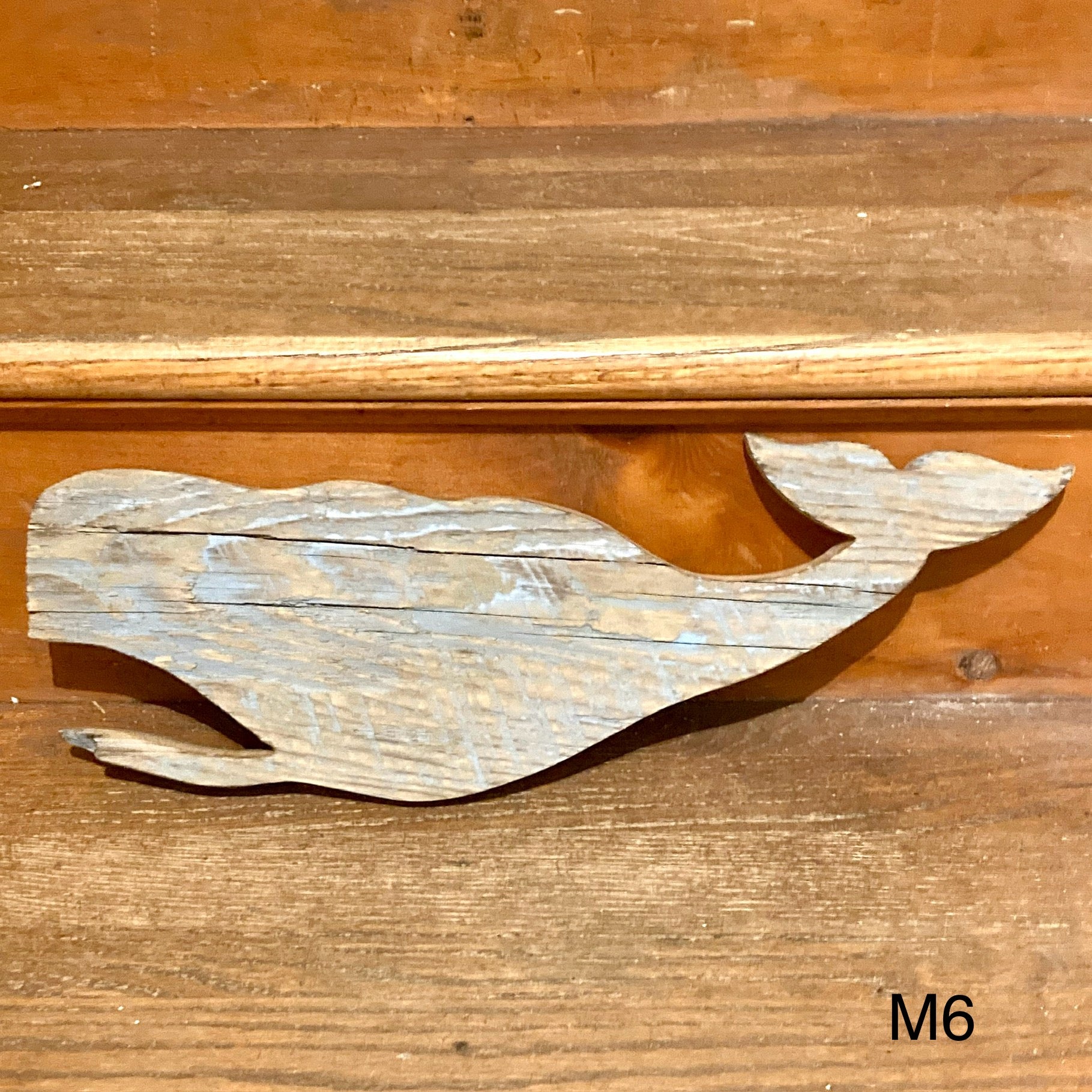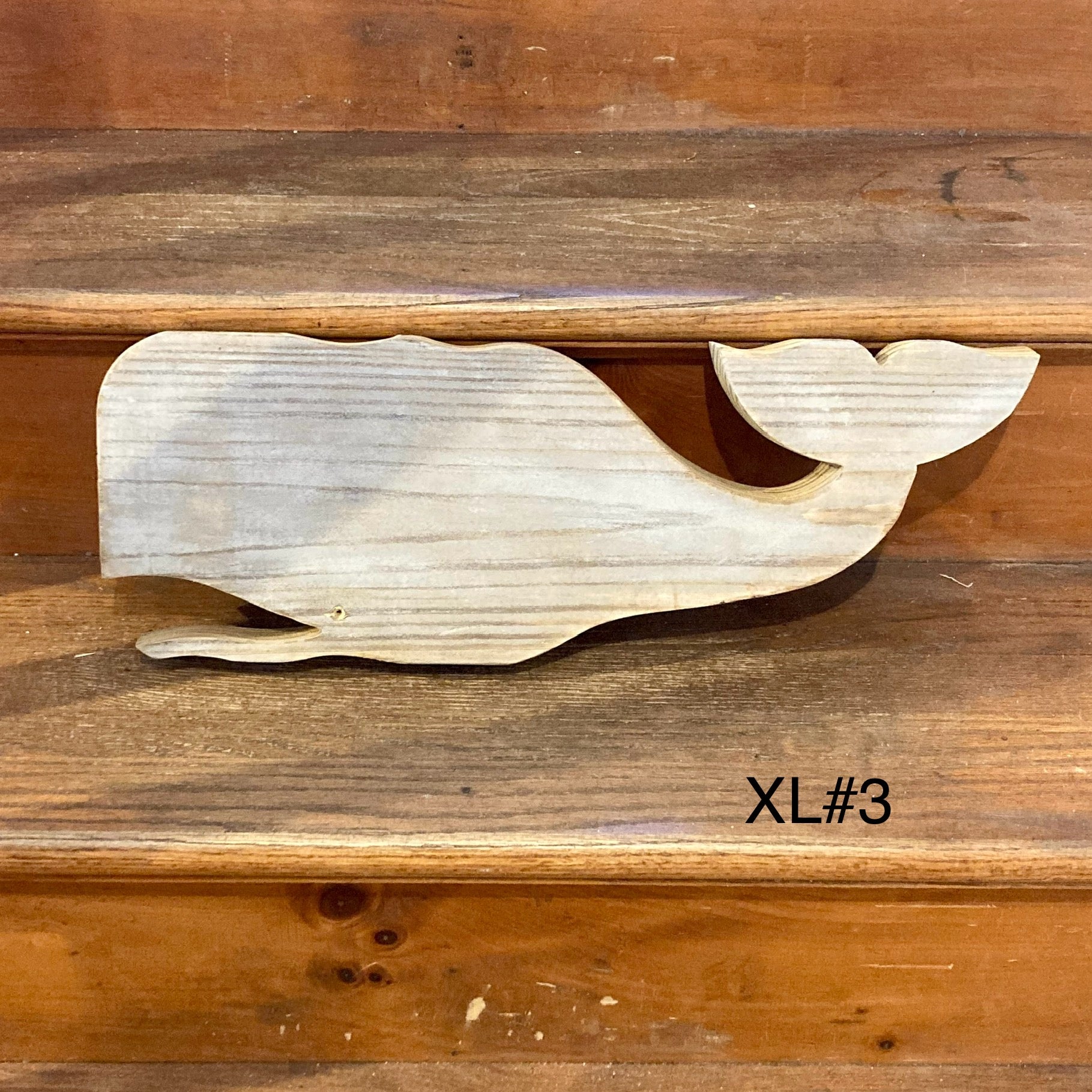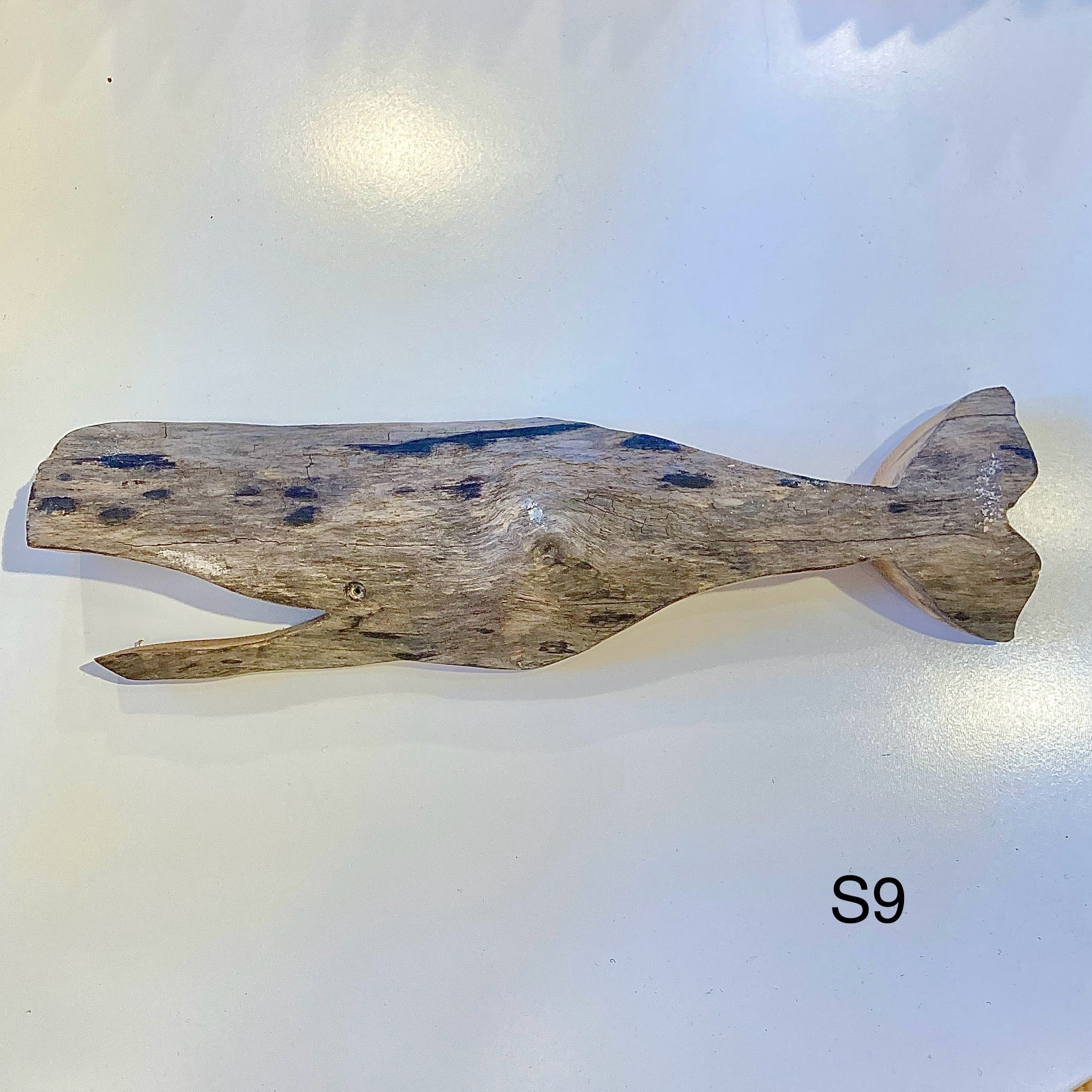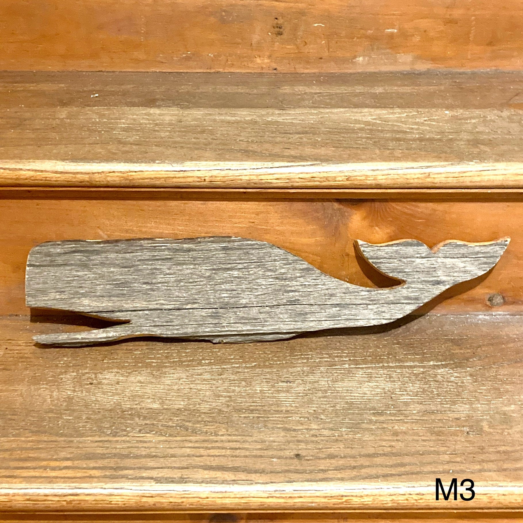Handmade by a New England native woodworker and his Afghani refugee helper from driftwood he collects from across New England beaches, each whale is completely unique with the natural patterns of the wood dictating the shape of each piece.