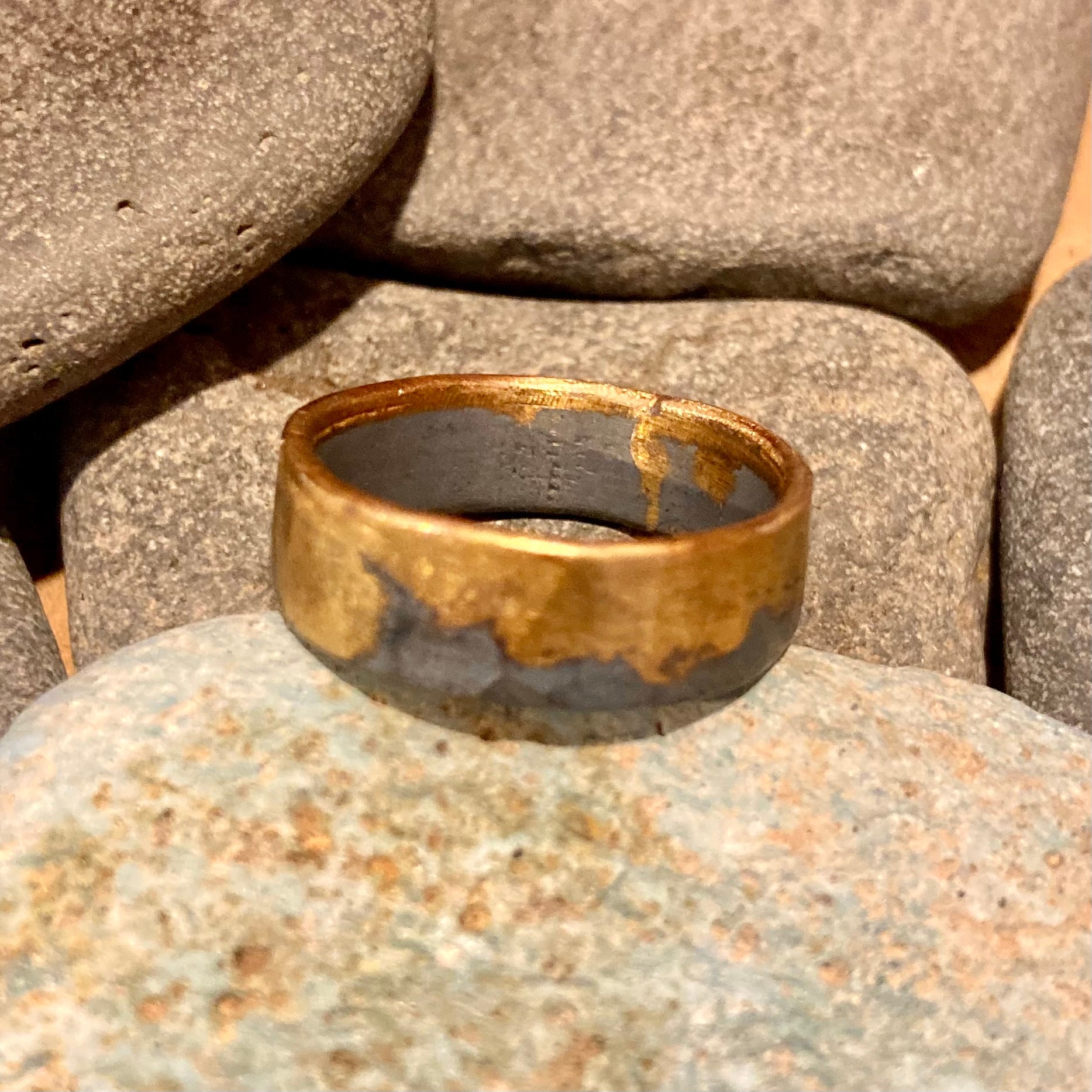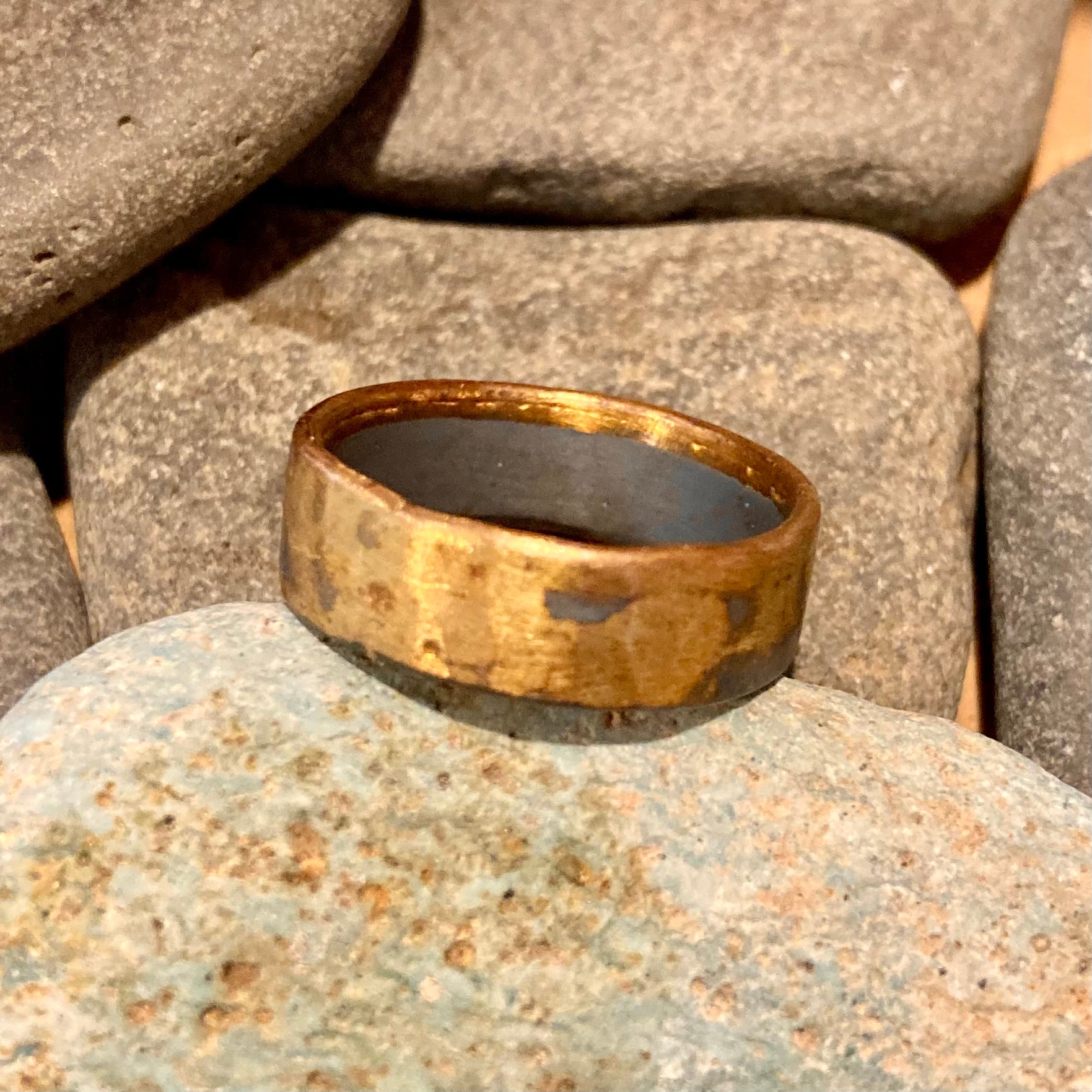 • Amalgam Gold and Oxidized Sterling Silver Hammered Band Ring