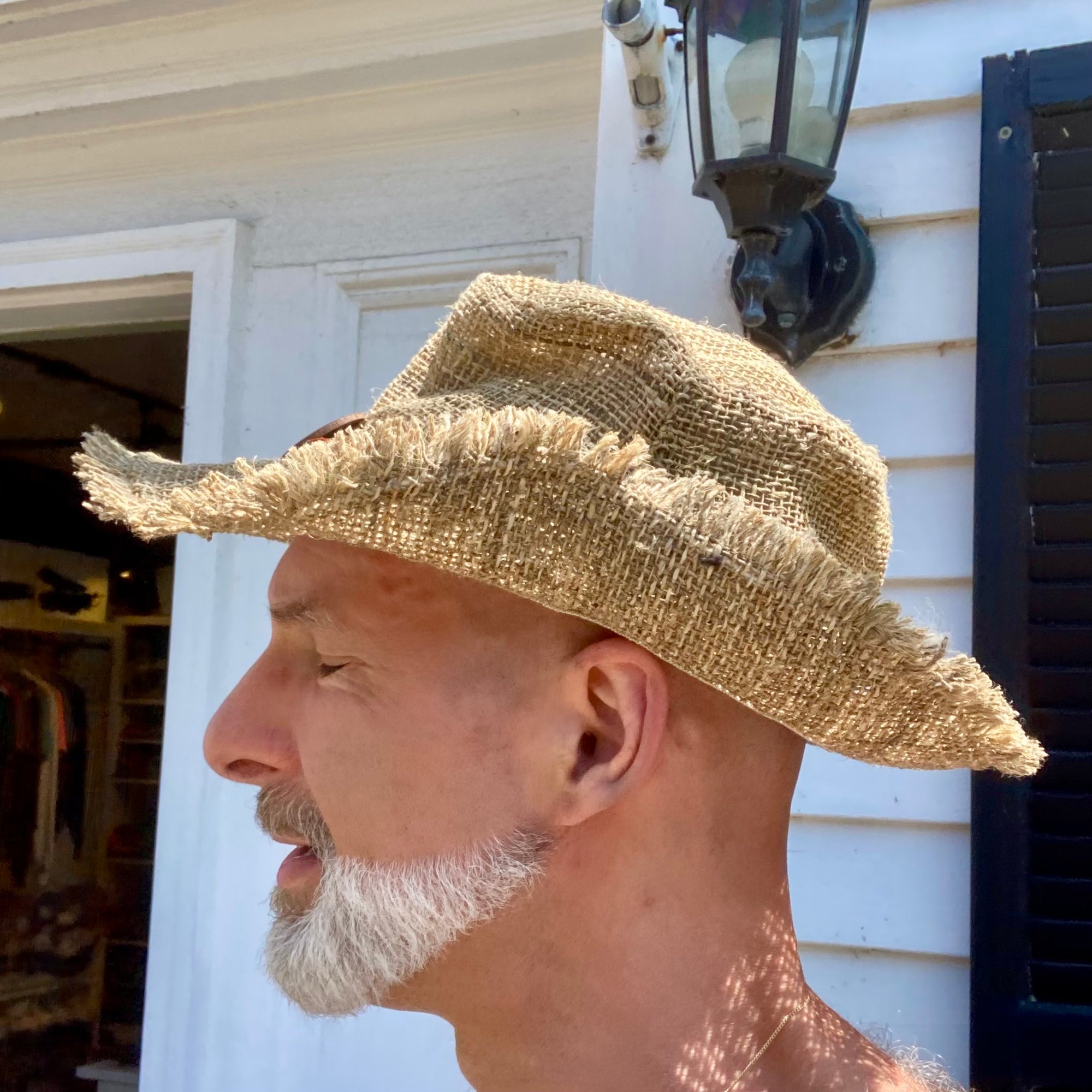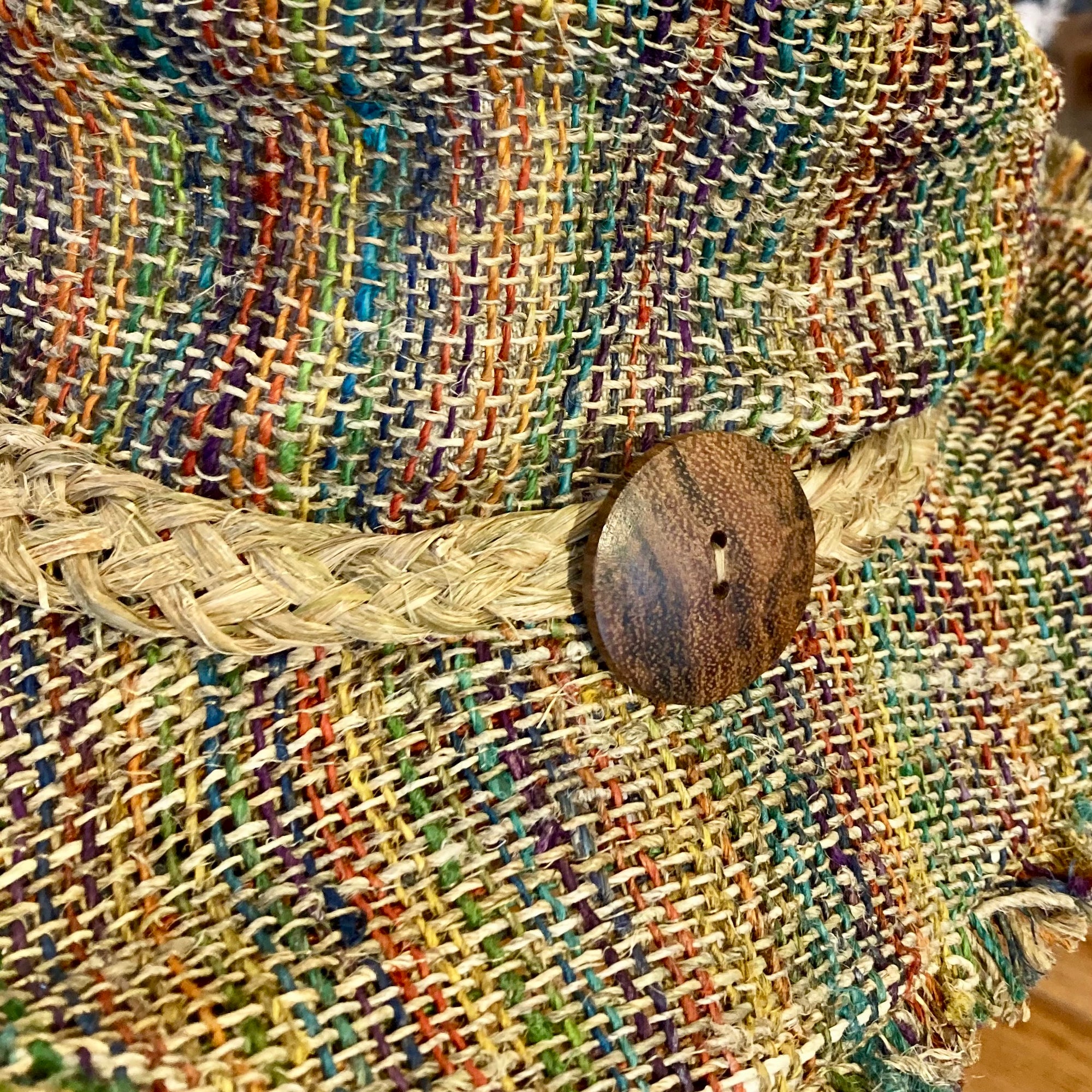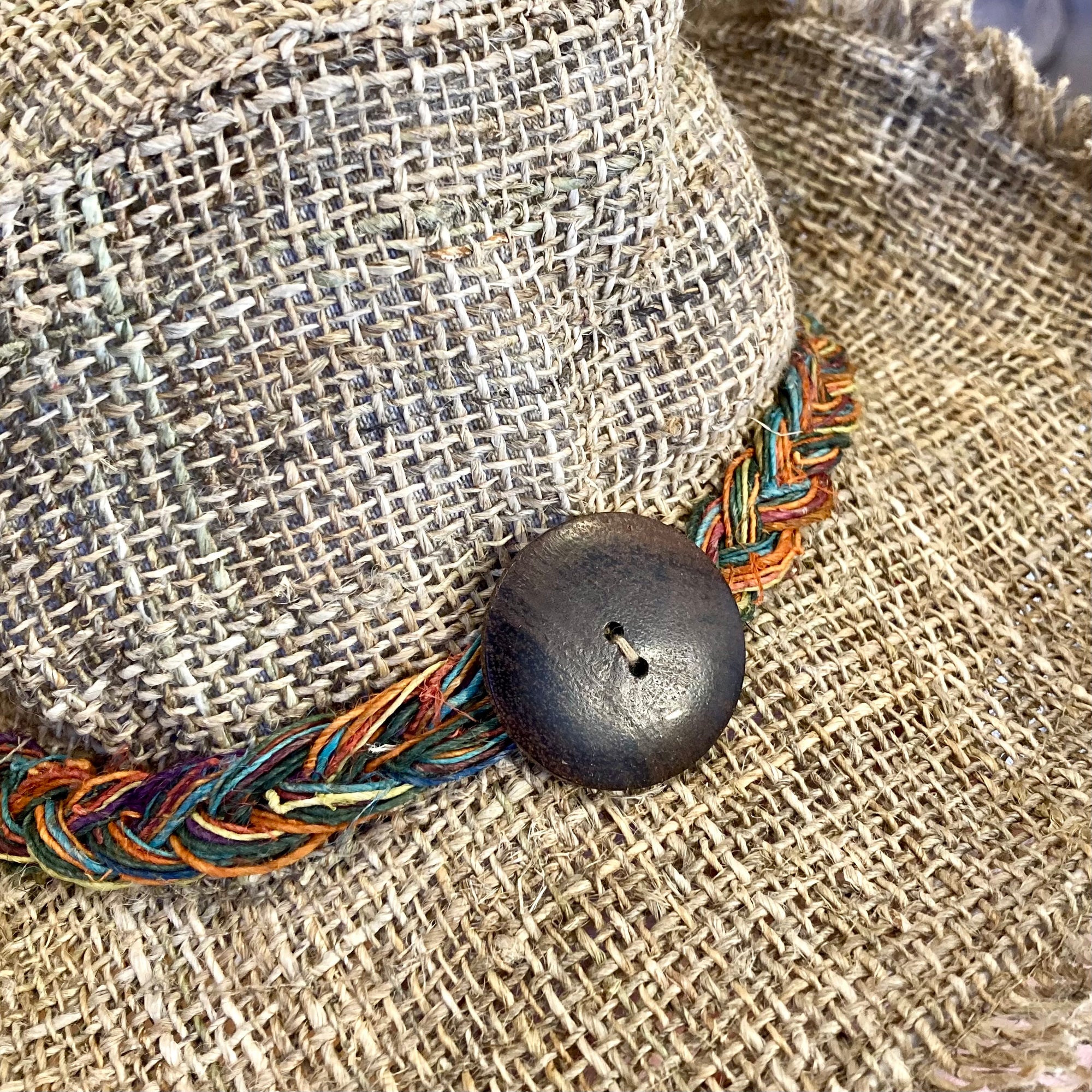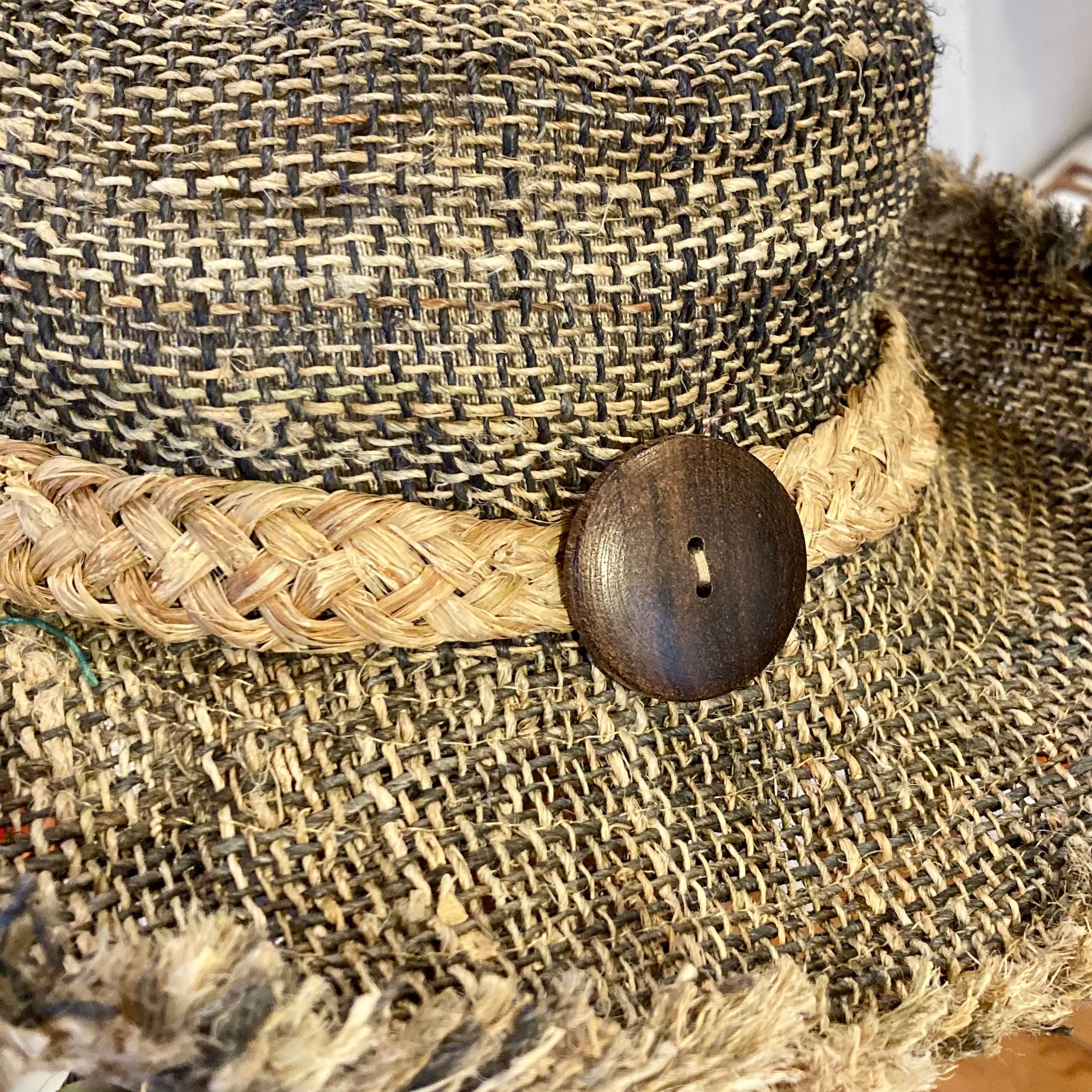 Hats measure approximately 14" in diameter, with a 3.5" brim (including fringe) and 4" height. Fits most average to larger heads. Hats with hat band have a 1.5" wood button accent sown onto the band.