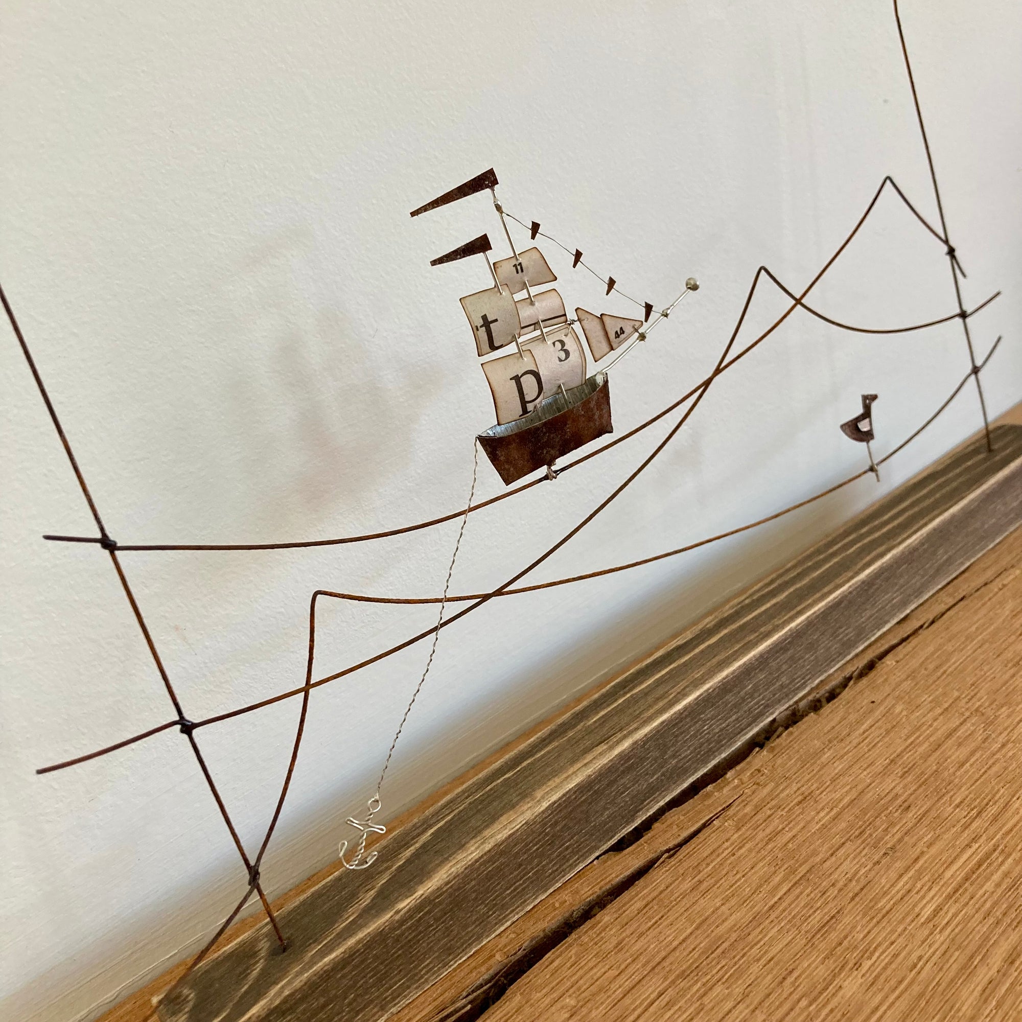 "Tea Clipper" Reclaimed Materials Mantel Art
