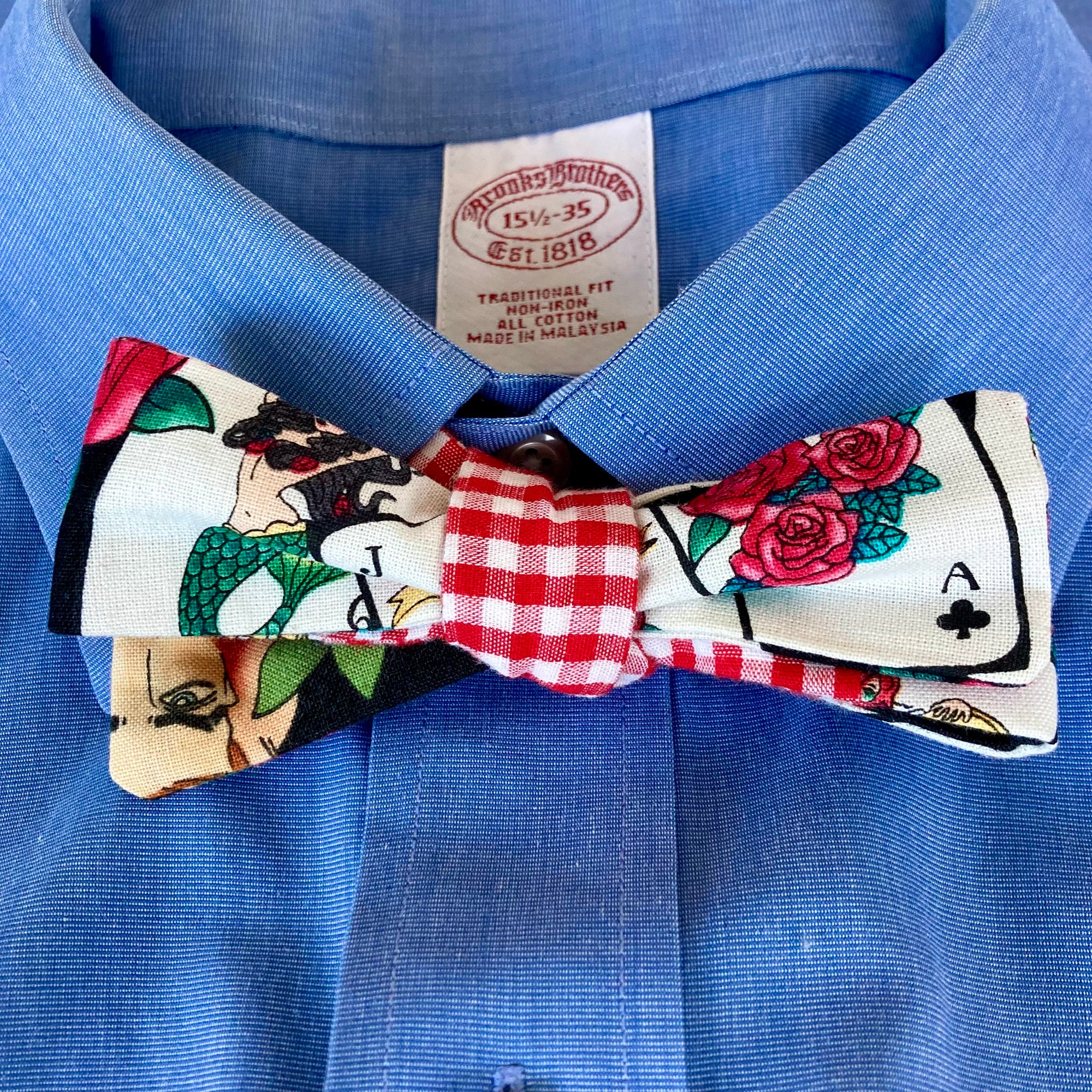 Handmade from carefully cleaned old clothing, no two bow ties will ever be alike but all are super fun and functional, a guaranteed conversation starter and photo op.